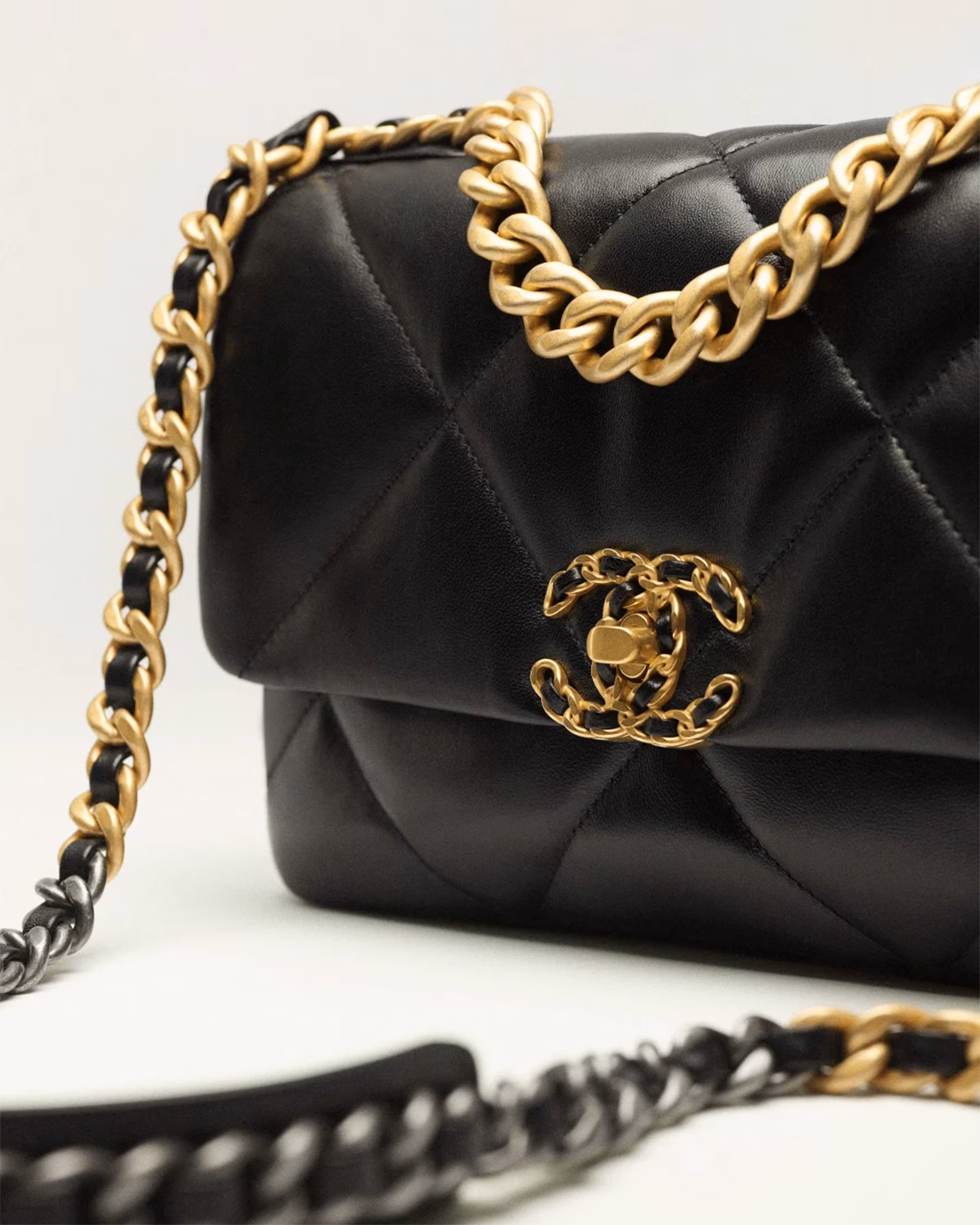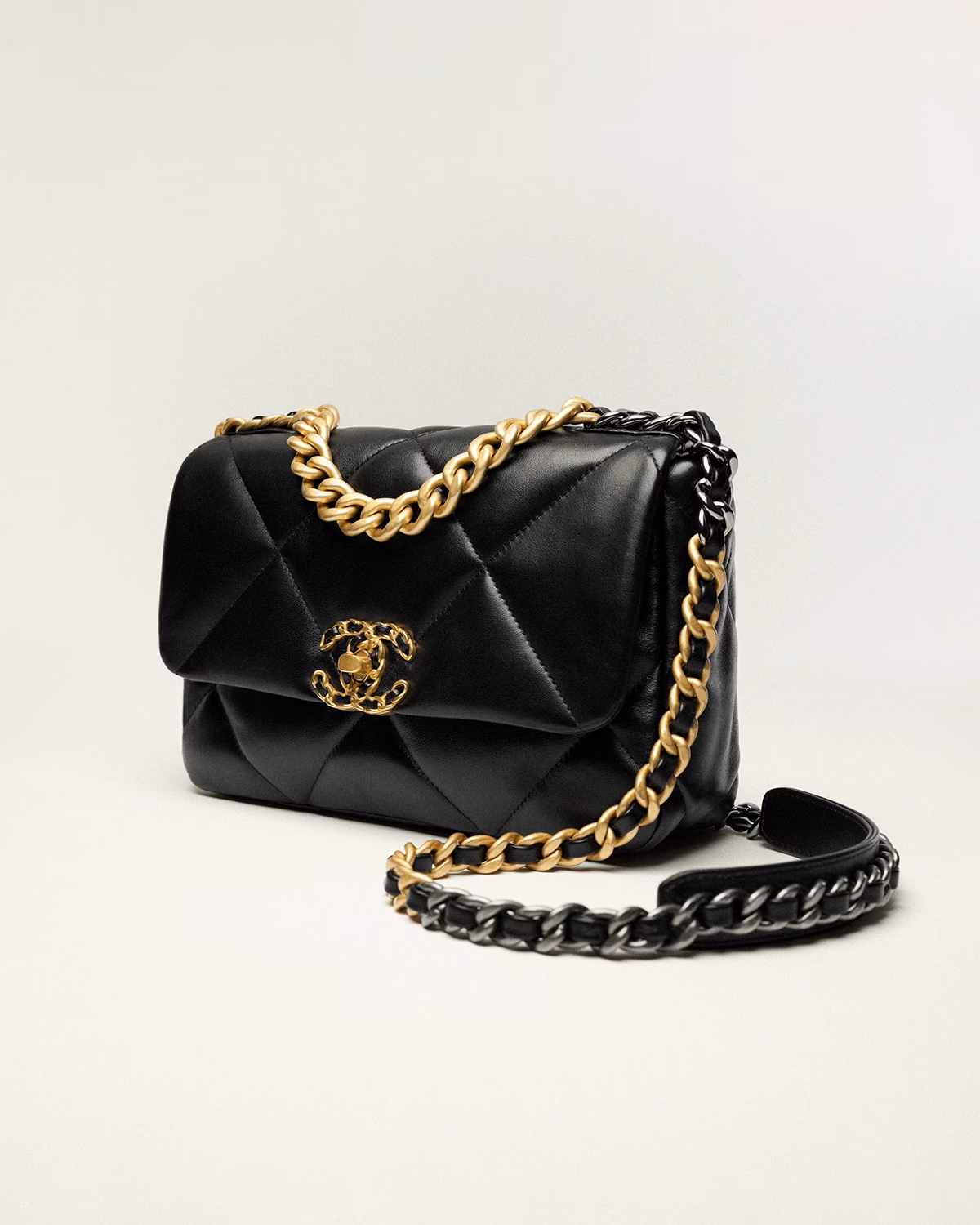 CHANEL 19 Handbag Shiny Lambskin, Gold-Tone, Silver-Tone