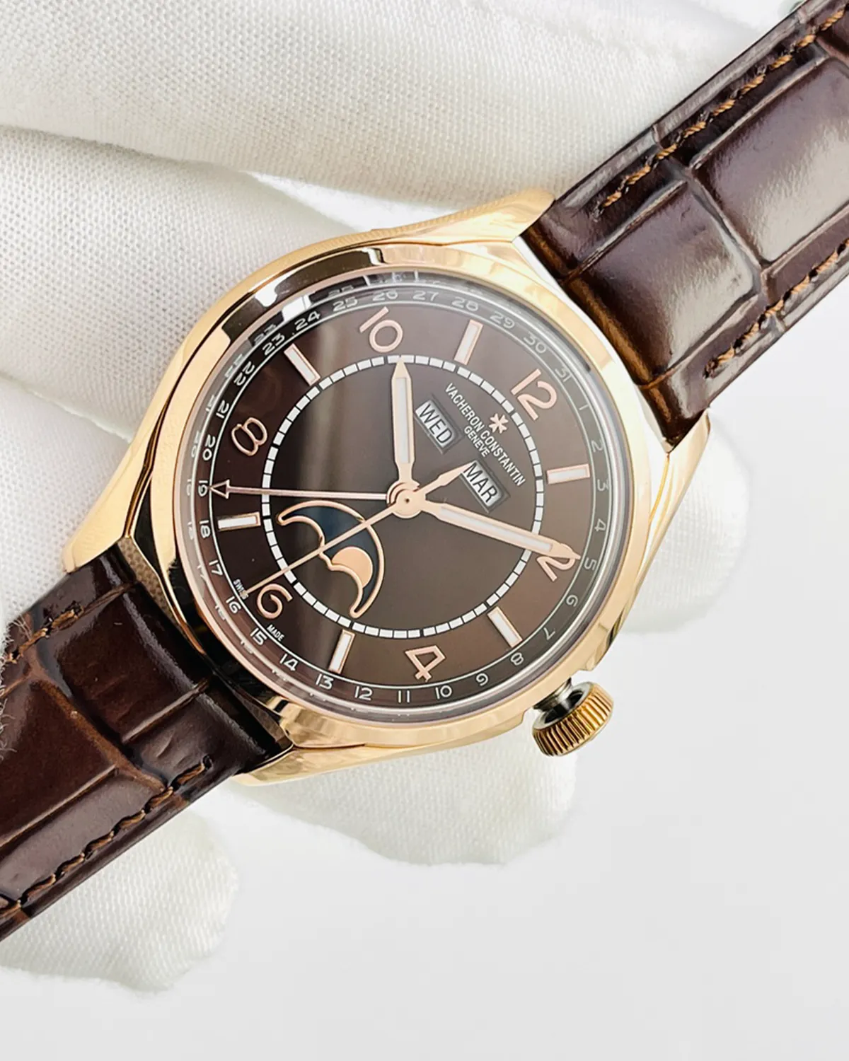 The FiftySix Complete Calendar bridges the gap between the golden age of watchmaking and contemporary style. The sepia brown dial combined with the warmth of pink gold creates a vintage aesthetic that feels incredibly sophisticated. It is a dress watch with character, designed for the modern gentleman who appreciates history.