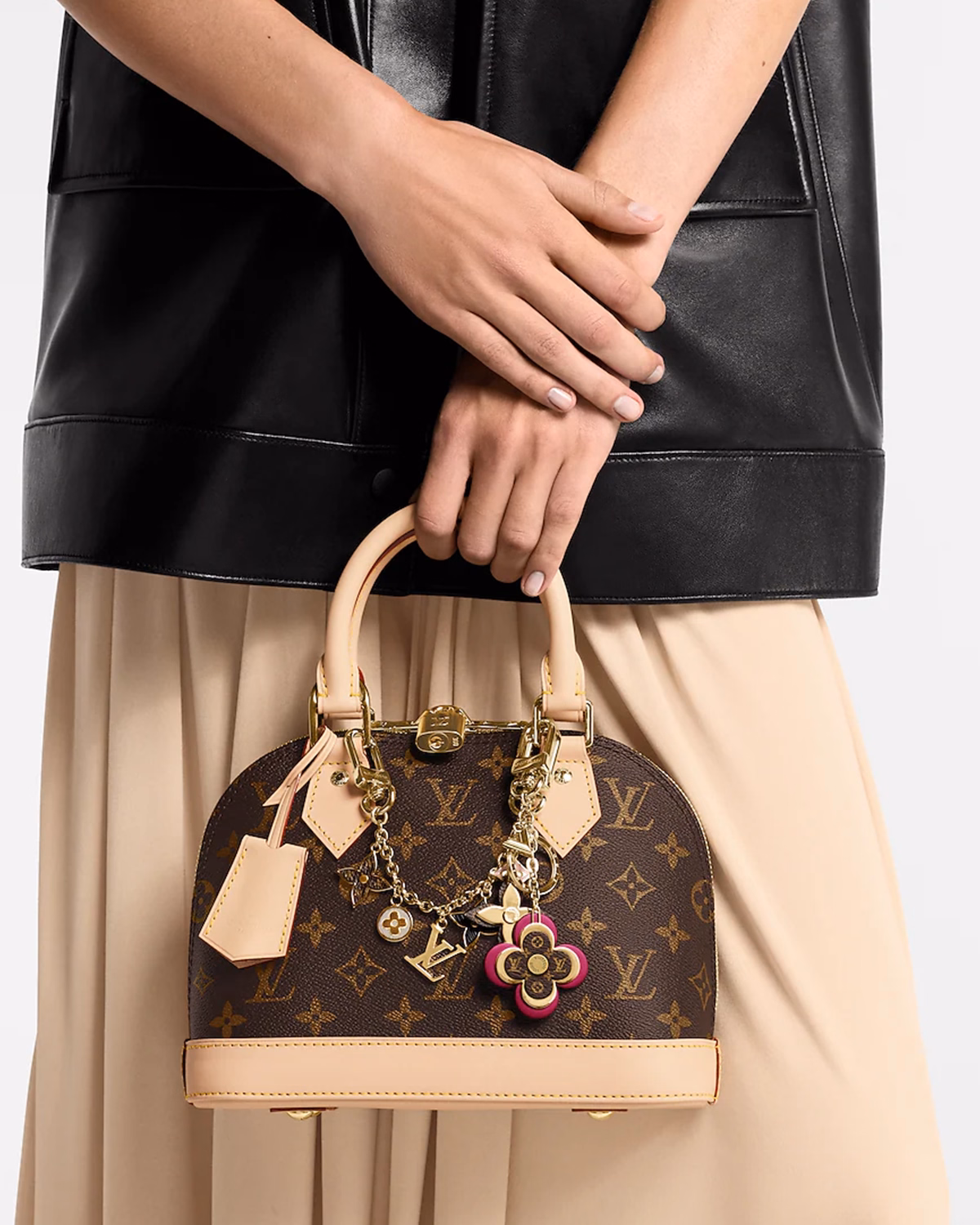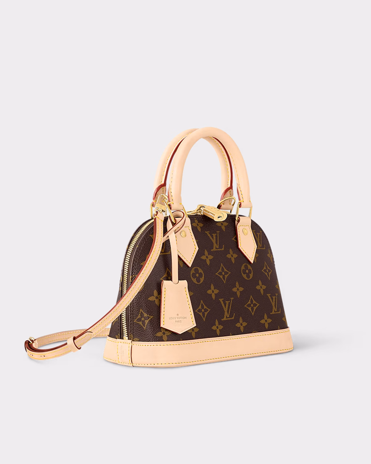 The Louis Vuitton Alma BB Monogram handbag is a timeless icon inspired by the original 1934 Art Deco design. Crafted in Monogram coated canvas with natural cowhide leather trim, this compact yet structured bag is adorned with signature House elements: a golden padlock, key bell, and two elegant Toron handles.