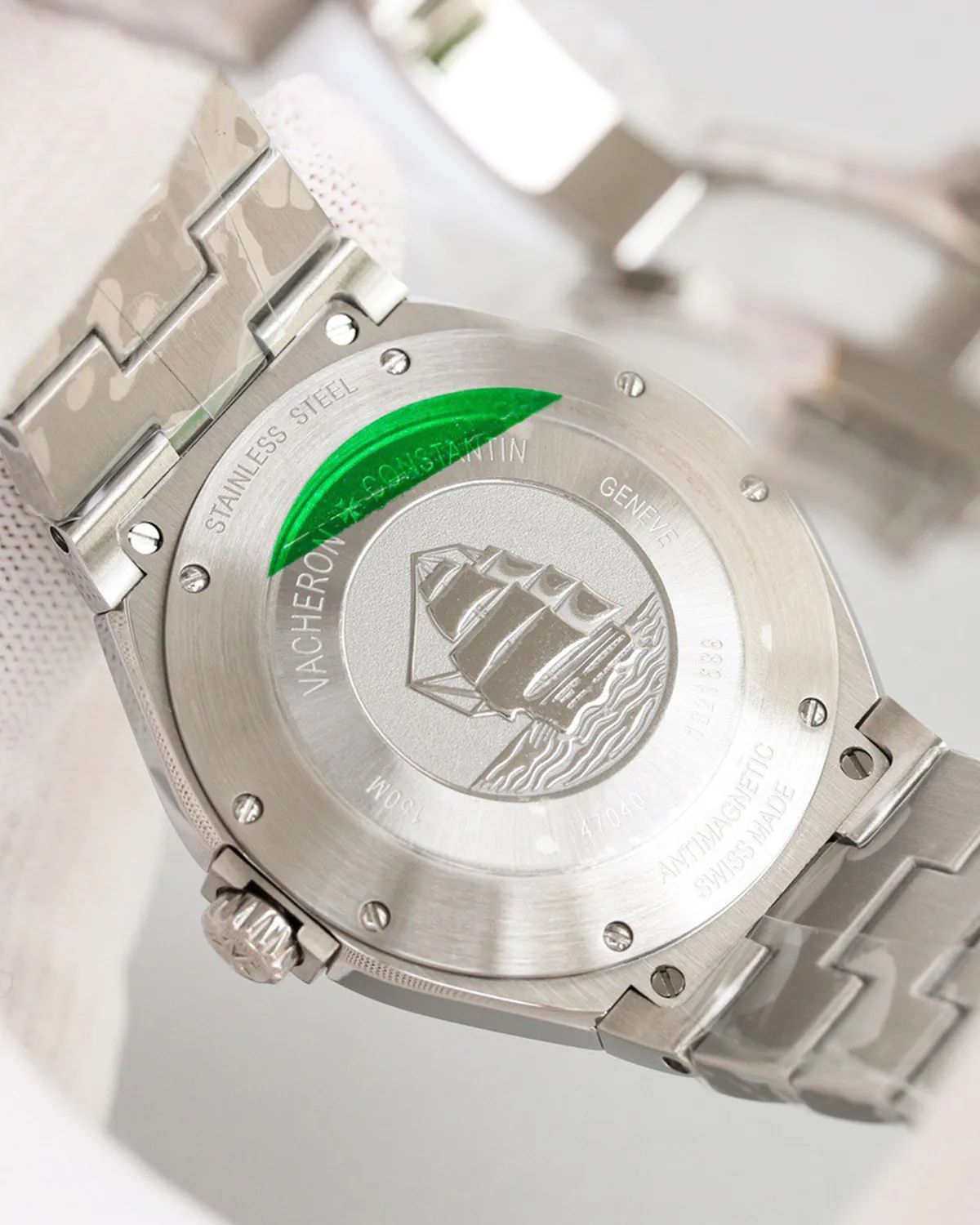Despite its elegant face, this is a serious sport watch. The solid caseback is engraved with the famous “Amerigo Vespucci” ship, symbolizing travel and exploration. Inside, a soft-iron inner cage protects the automatic movement from magnetic fields, ensuring precision in the modern world.