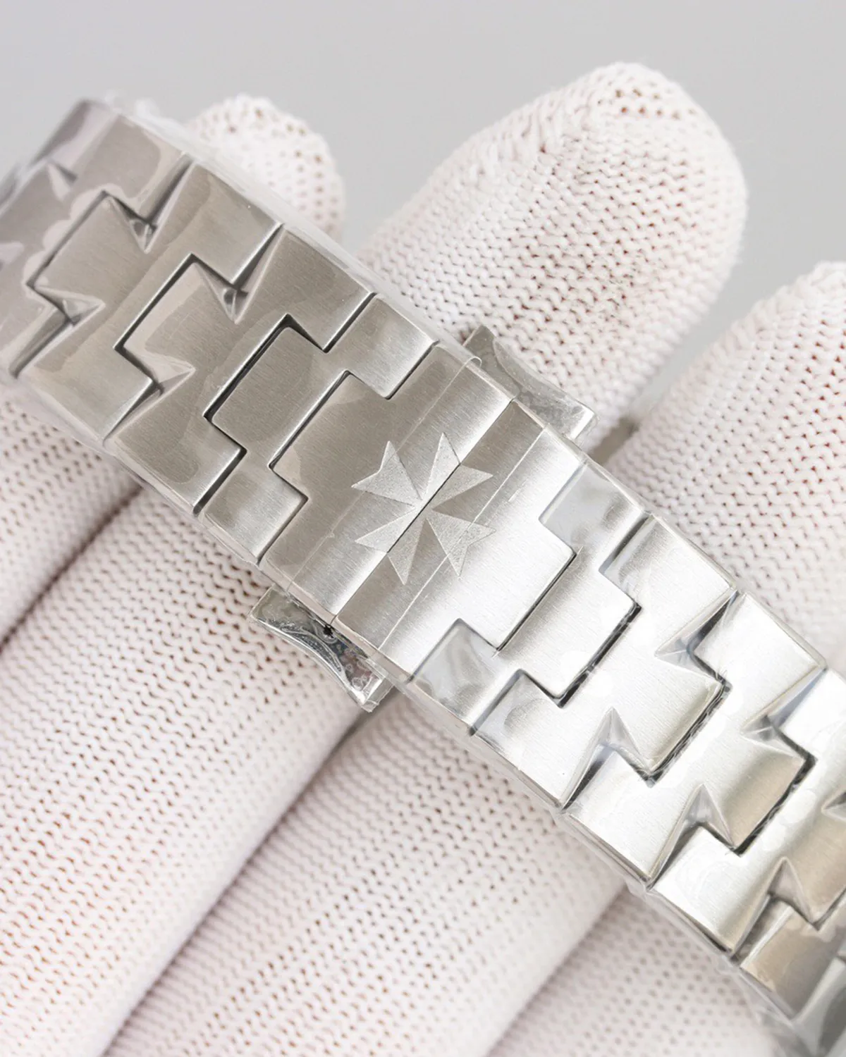 The bracelet is widely considered one of the best in the industry. The links are shaped like half-Maltese crosses, flowing seamlessly from the case. The interplay of brushed surfaces and polished internal angles creates a fluid, liquid-metal effect on the wrist that is instantly recognizable.