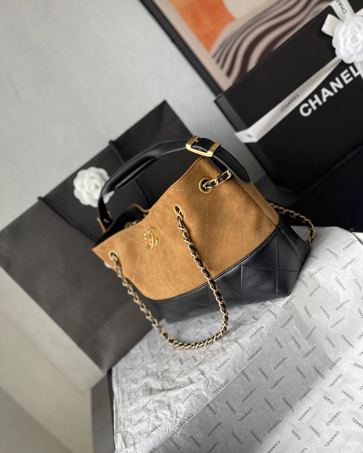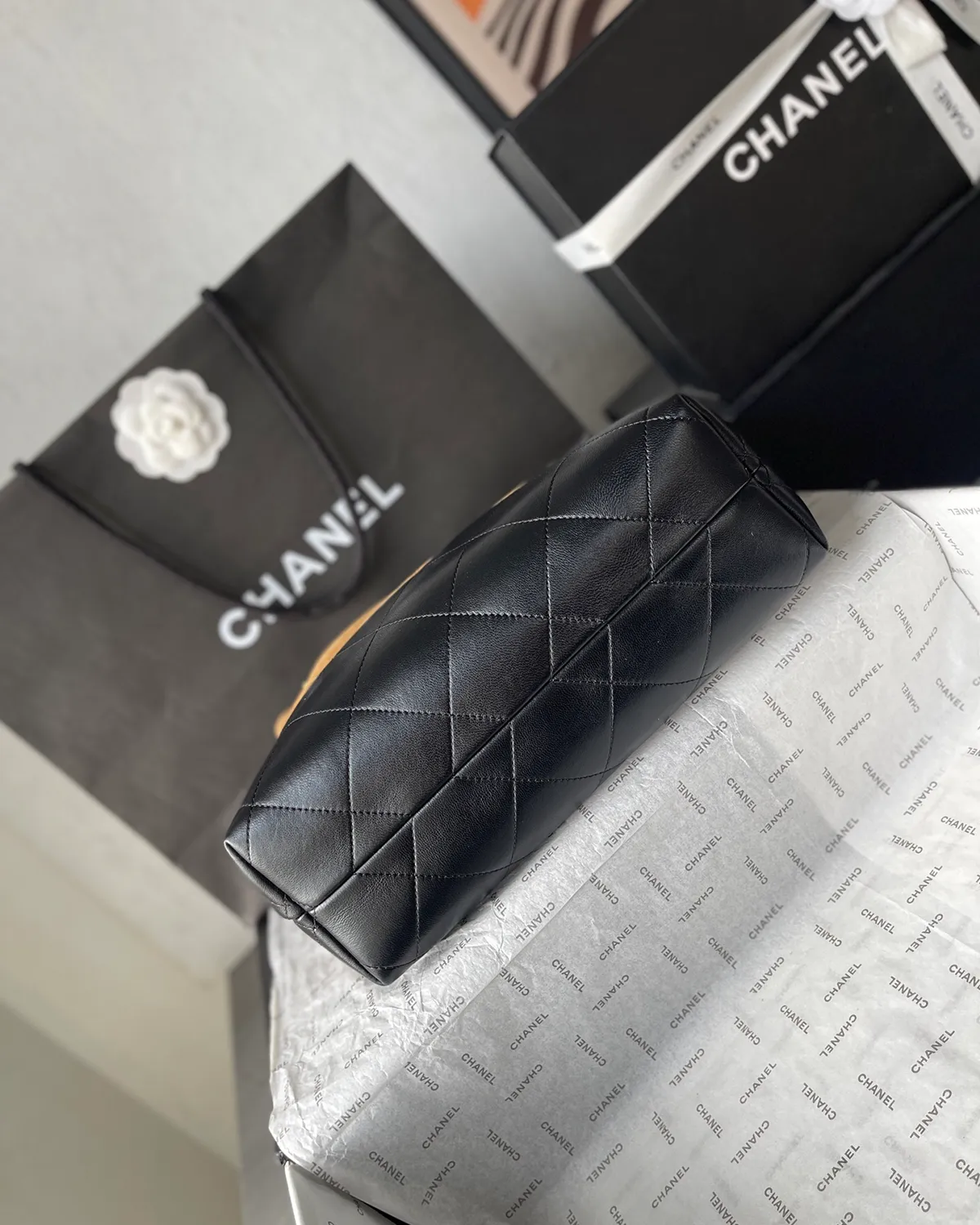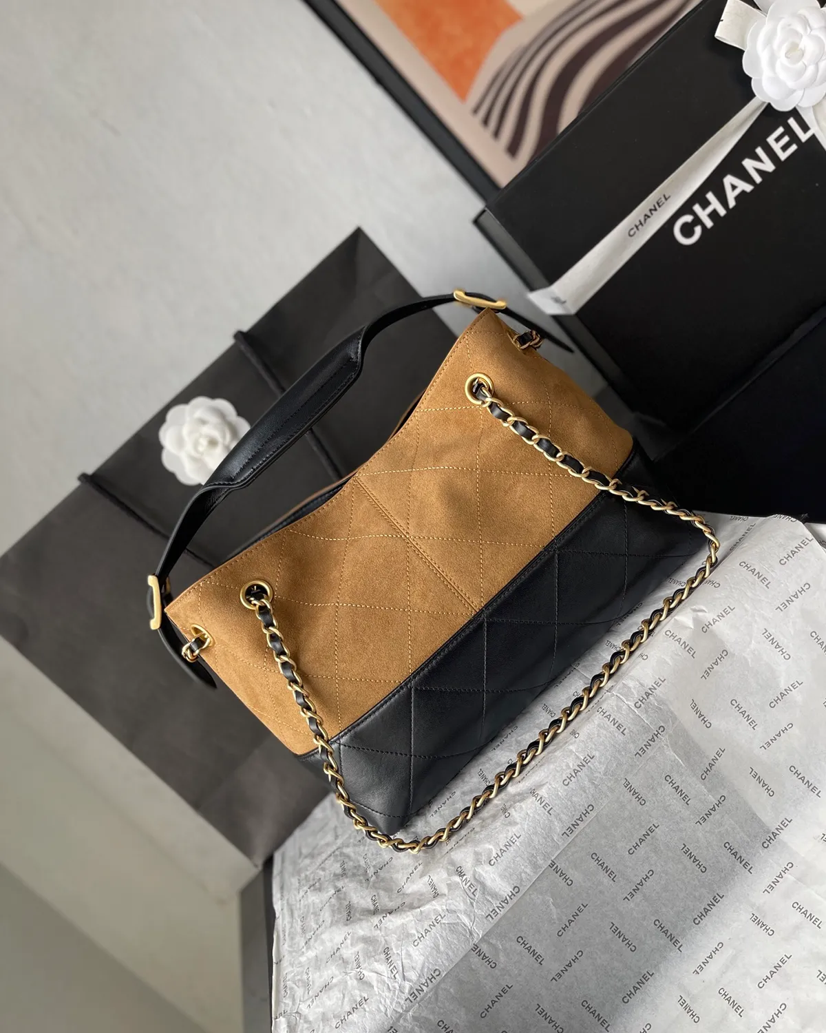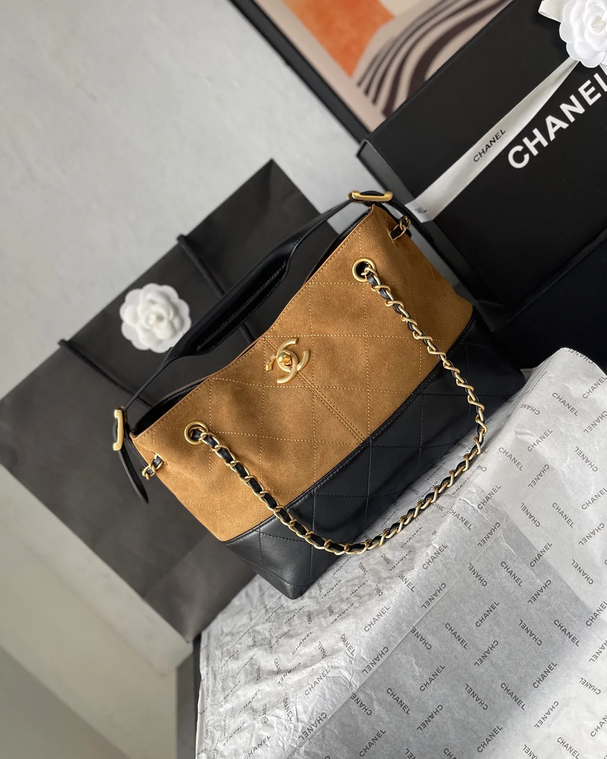 *Note: This item is a high-quality homage inspired by the Chanel 25A Seasonal Tote design. It captures the iconic diamond quilting, interwoven chain, and two-tone aesthetic at an accessible price point.