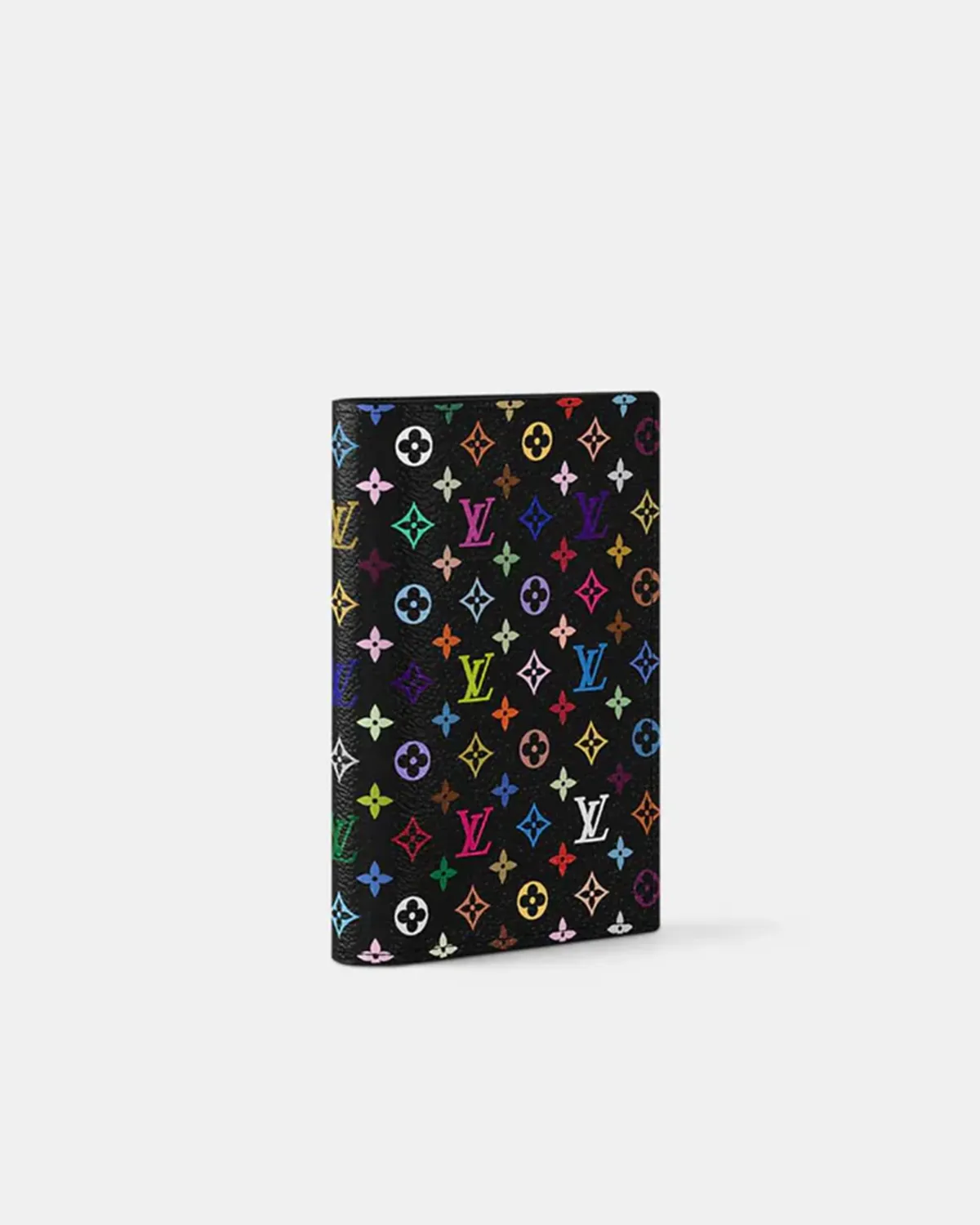 The passport cover multicolor black features a compact travel-friendly design in coated canvas with a vibrant multicolor monogram pattern. It adds personality to travel essentials while remaining slim and easy to carry.