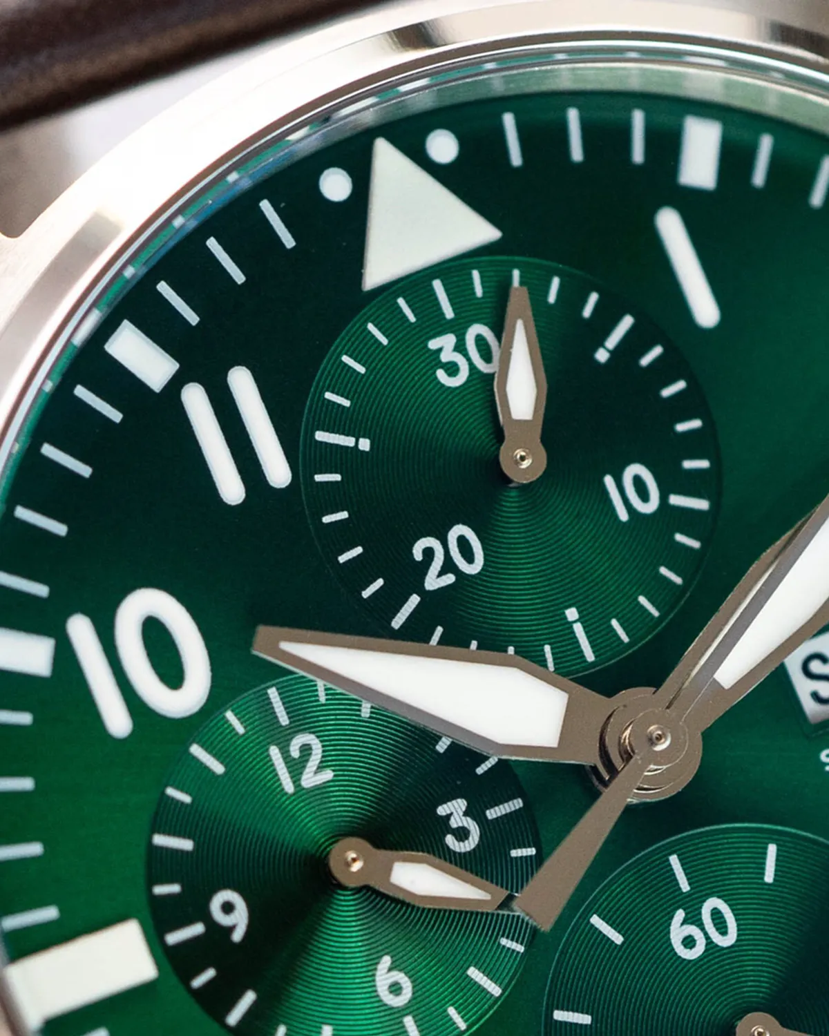Unlike the matte black dials of the past, this model features a vibrant green dial with a sunburst finish. In low light, it appears deep and serious; in sunlight, it explodes with emerald tones. The rhodium-plated hands and white numerals ensure the legendary legibility remains intact.