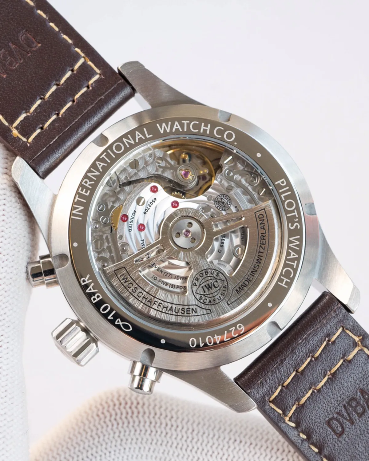 A major upgrade for this generation is the see-through sapphire caseback. While traditional pilot watches have solid backs for magnetic protection, this modern interpretation allows you to admire the intricate mechanical movement and rotor in action.