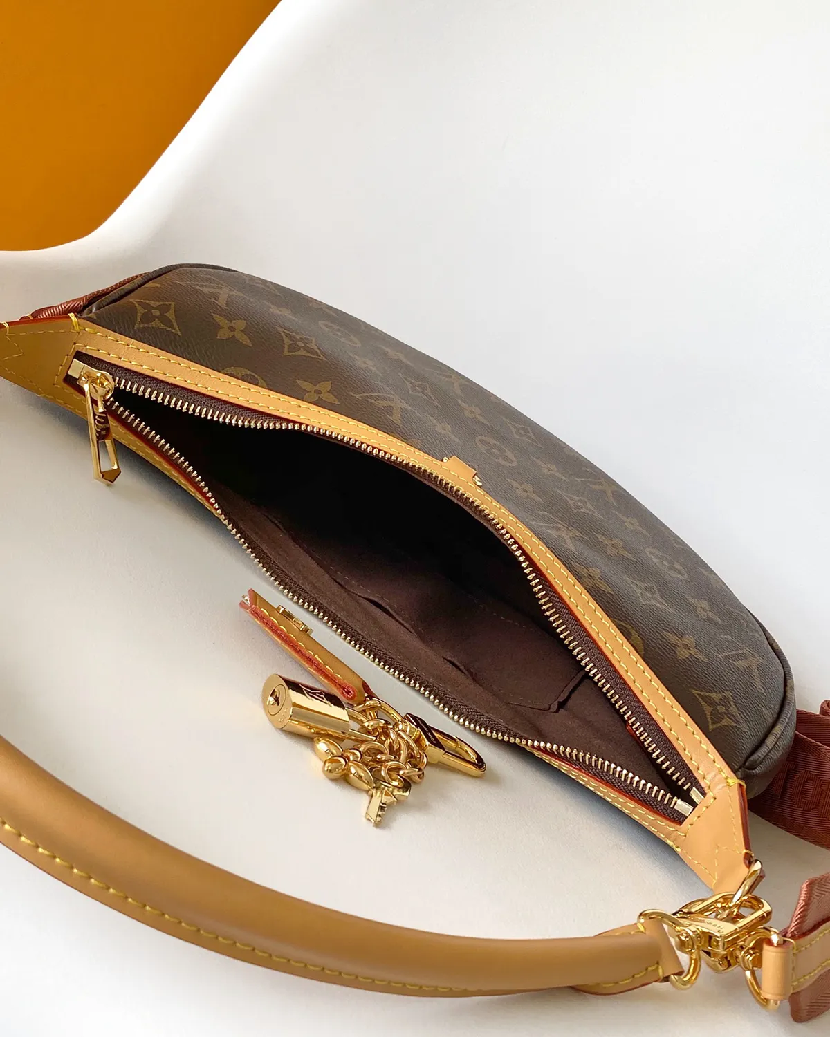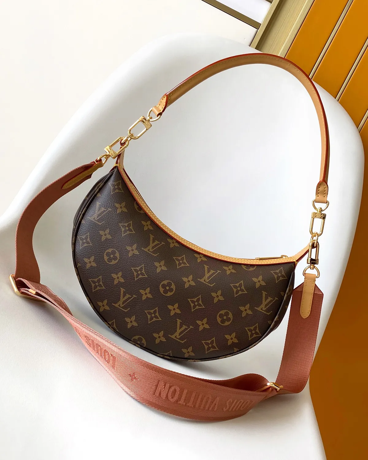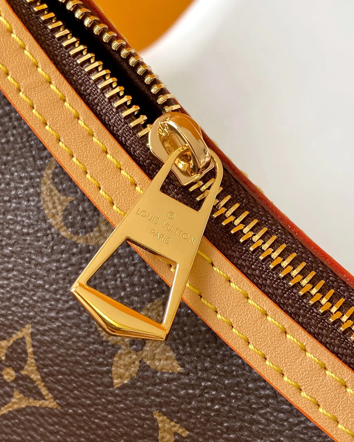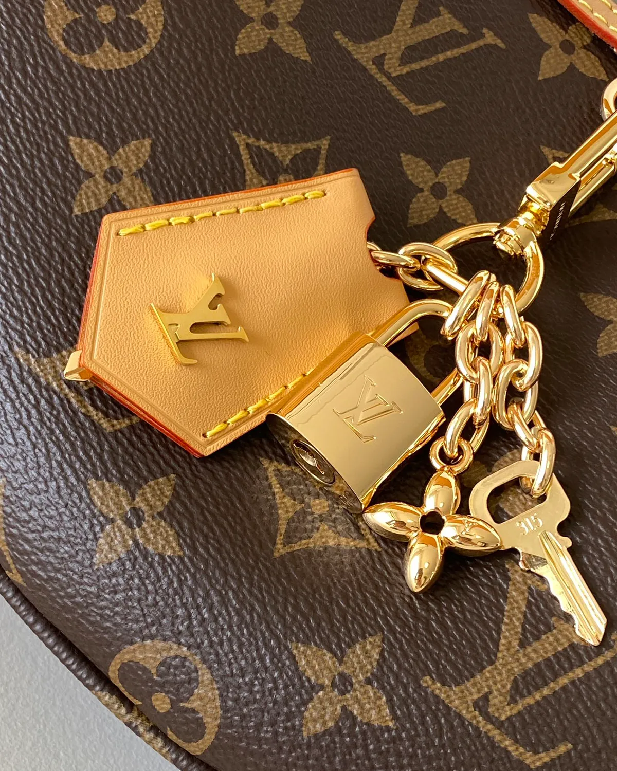The handle is crafted from premium natural cowhide leather (Vachetta), hand-rolled to ensure comfort. Over time, this pale leather will deepen into a rich amber patina, highlighting the bag’s architectural curve. The body, wrapped in the legendary coated canvas, maintains a clean and minimalist profile that lets the handle take center stage.
