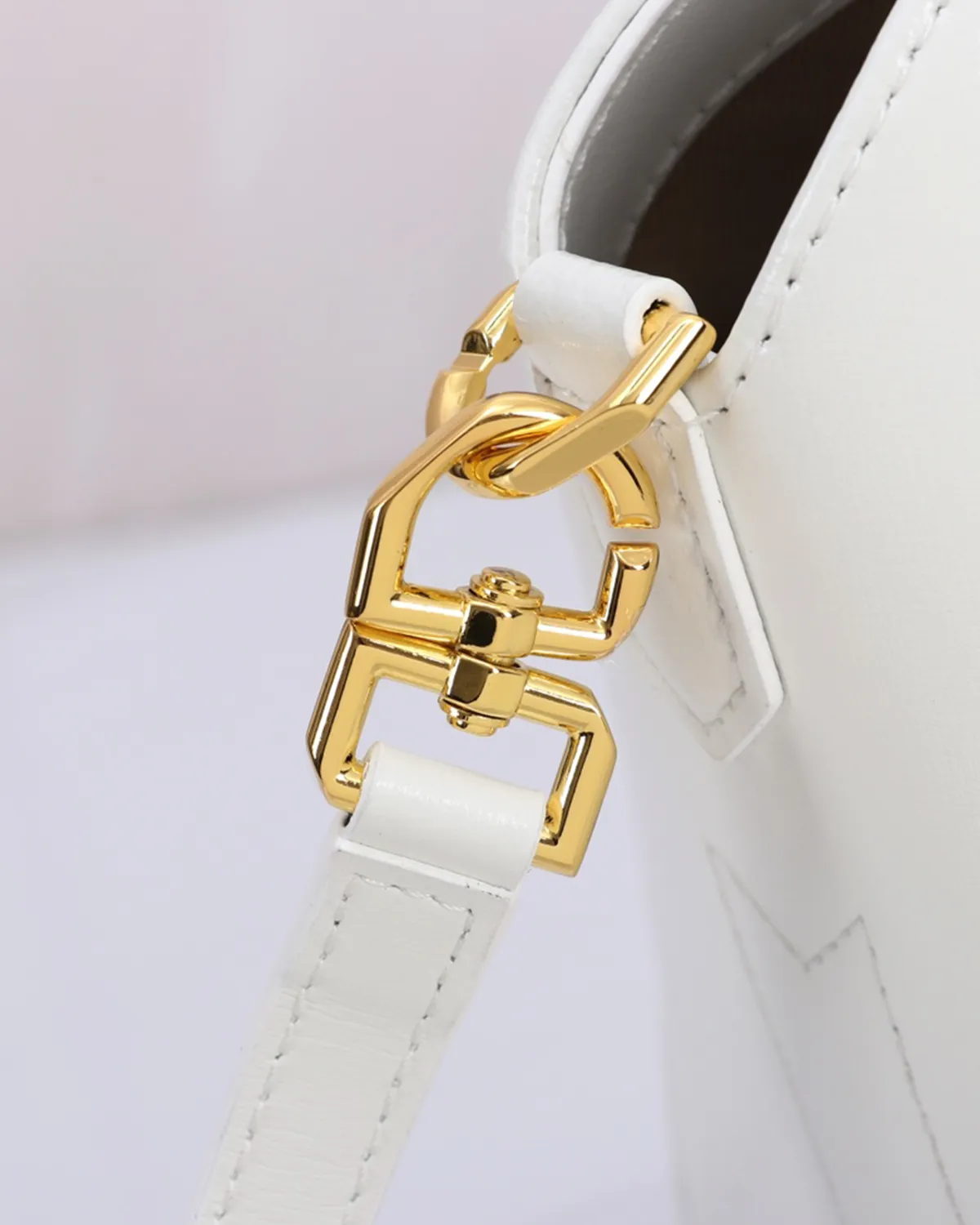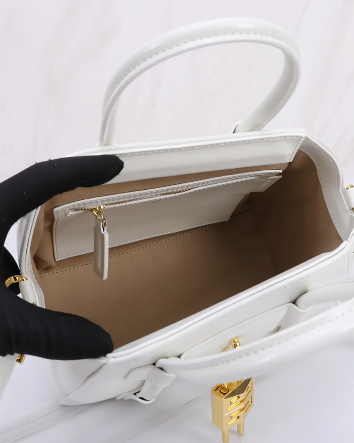 The Signature Architectural Boston Bag in White is a masterclass in crisp, clean modernism. It strips away the darkness of the classic black version to reveal the purity of its geometric lines. This bag is not just an accessory; it is a sculpture for the arm, offering a bright, confident finish to any tailored look.