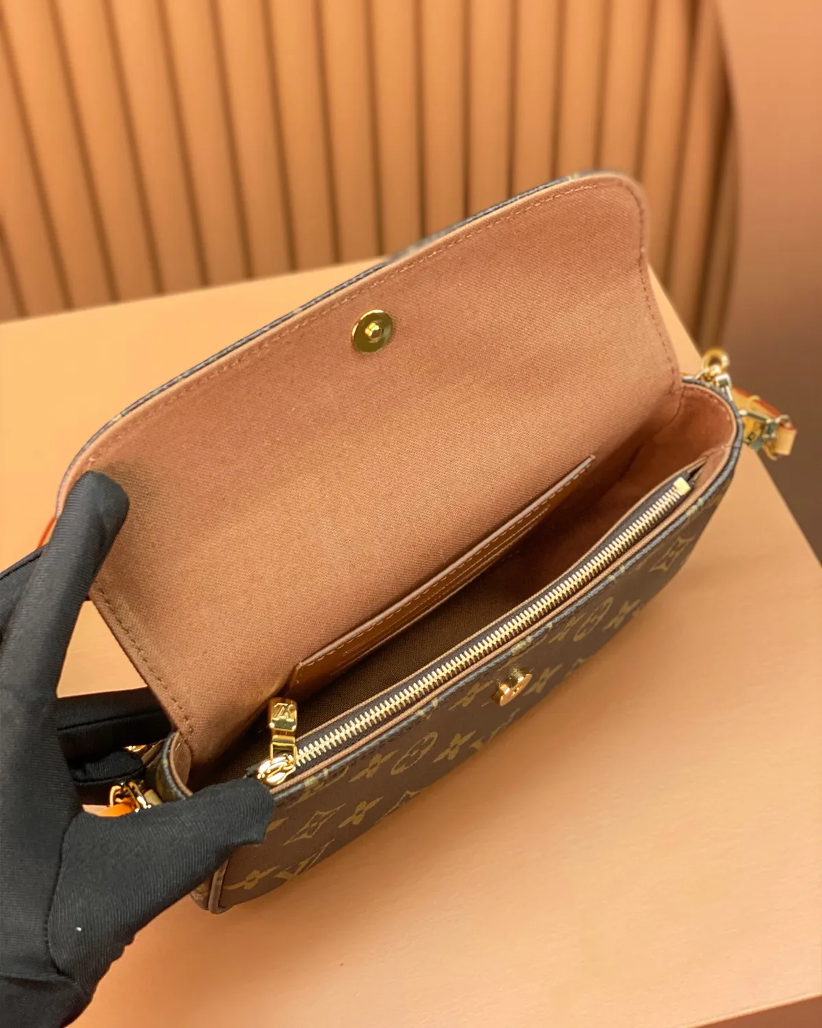 Signature Baguette Wallet on Chain – Monogram & Gold Chain | BagLadt