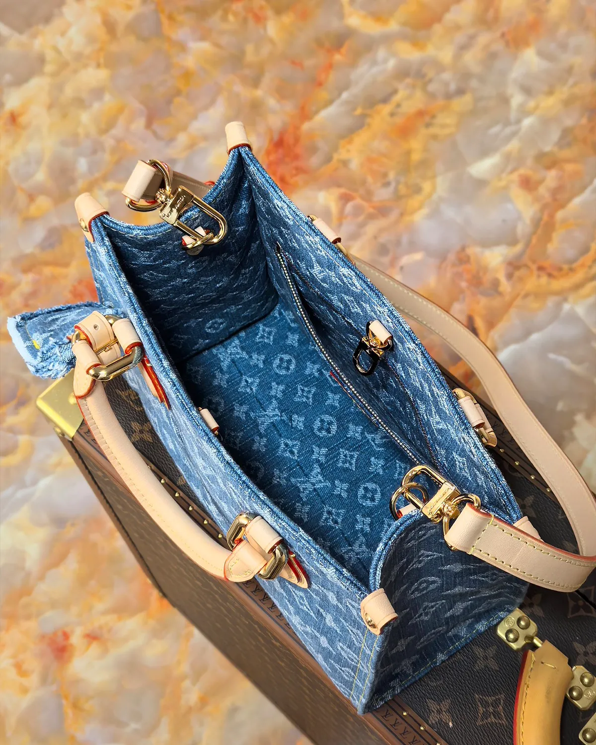The Signature Box Tote PM in Denim is a masterful fusion of streetwear vibes and high-end craftsmanship. Riding the wave of the Y2K revival, this bag elevates the humble fabric of blue jeans into a luxury material. It offers a relaxed, youthful energy while maintaining the sharp, architectural lines of the box tote silhouette.