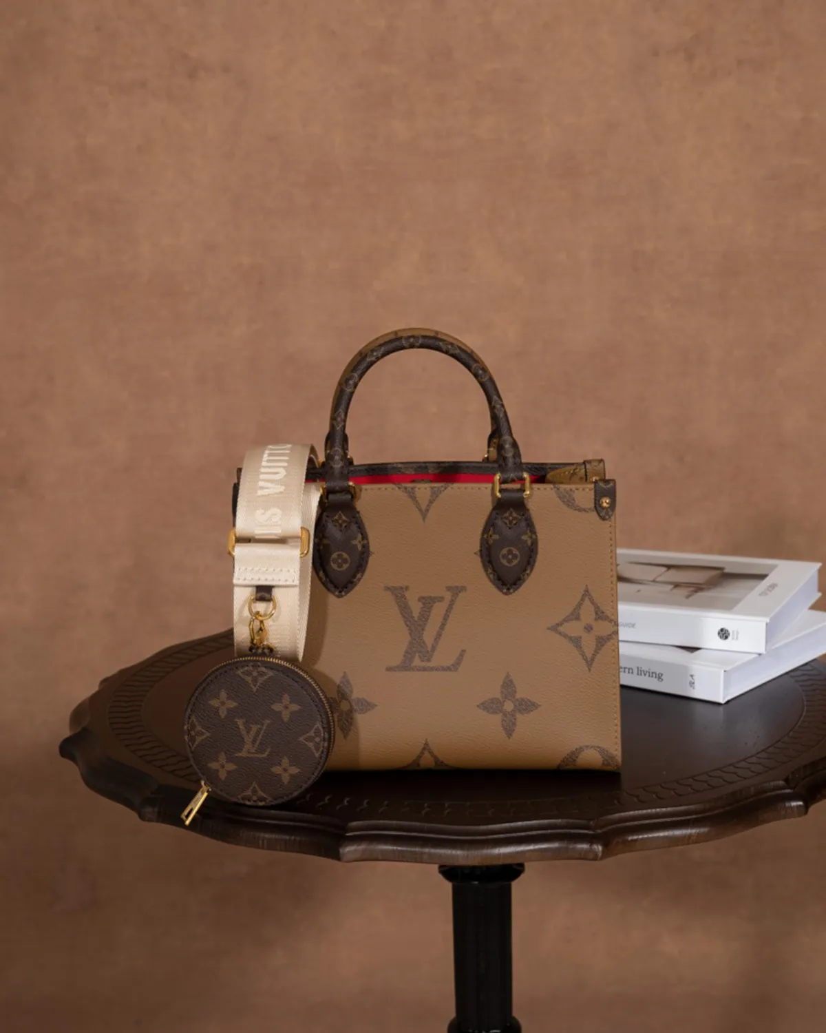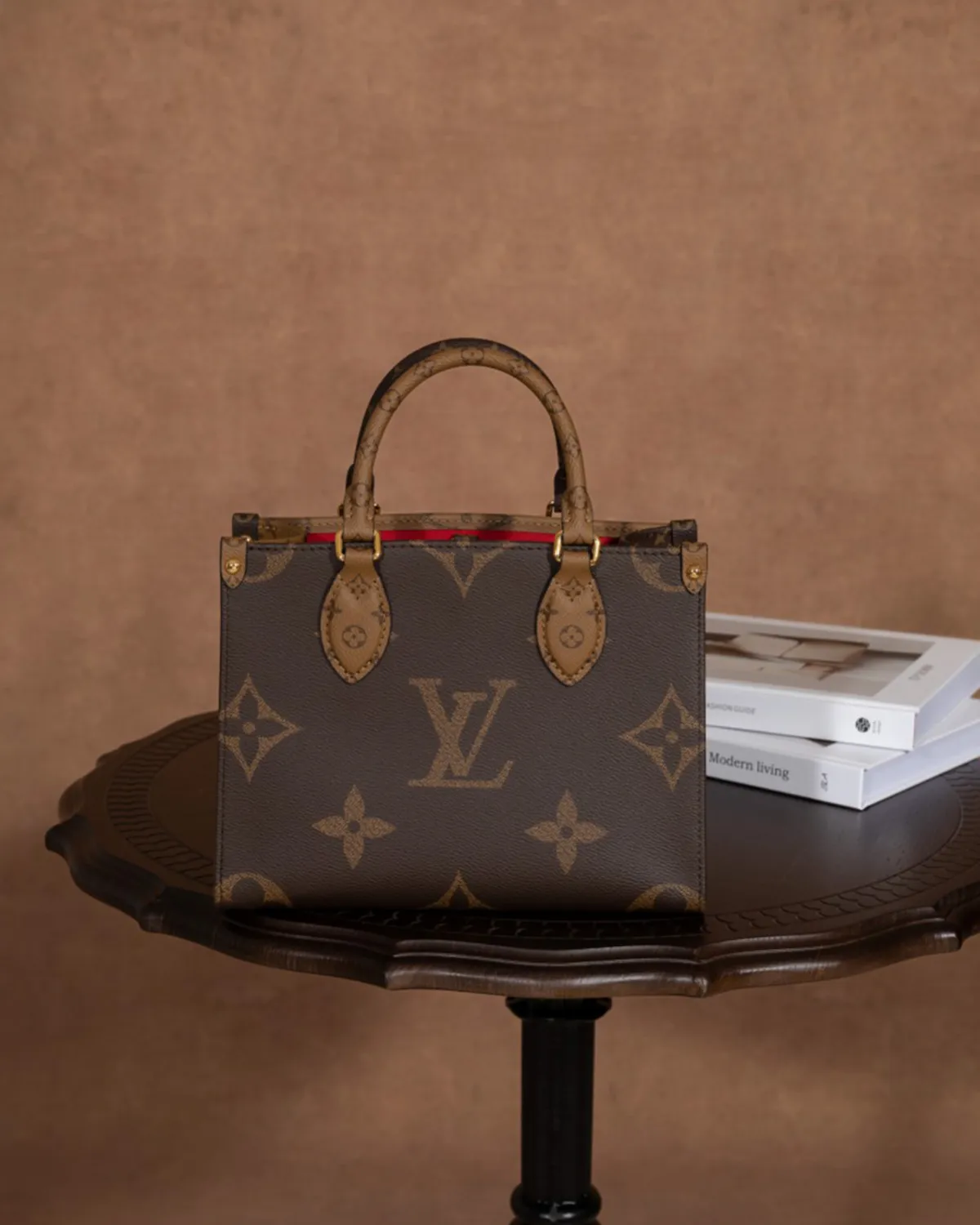 The design plays with the brand’s most famous codes. The main body features the classic dark Monogram coated canvas, while the rolled top handles and often the side panels are rendered in the lighter “Reverse” Monogram. This two-tone effect adds visual depth and a contemporary twist to the traditional pattern.