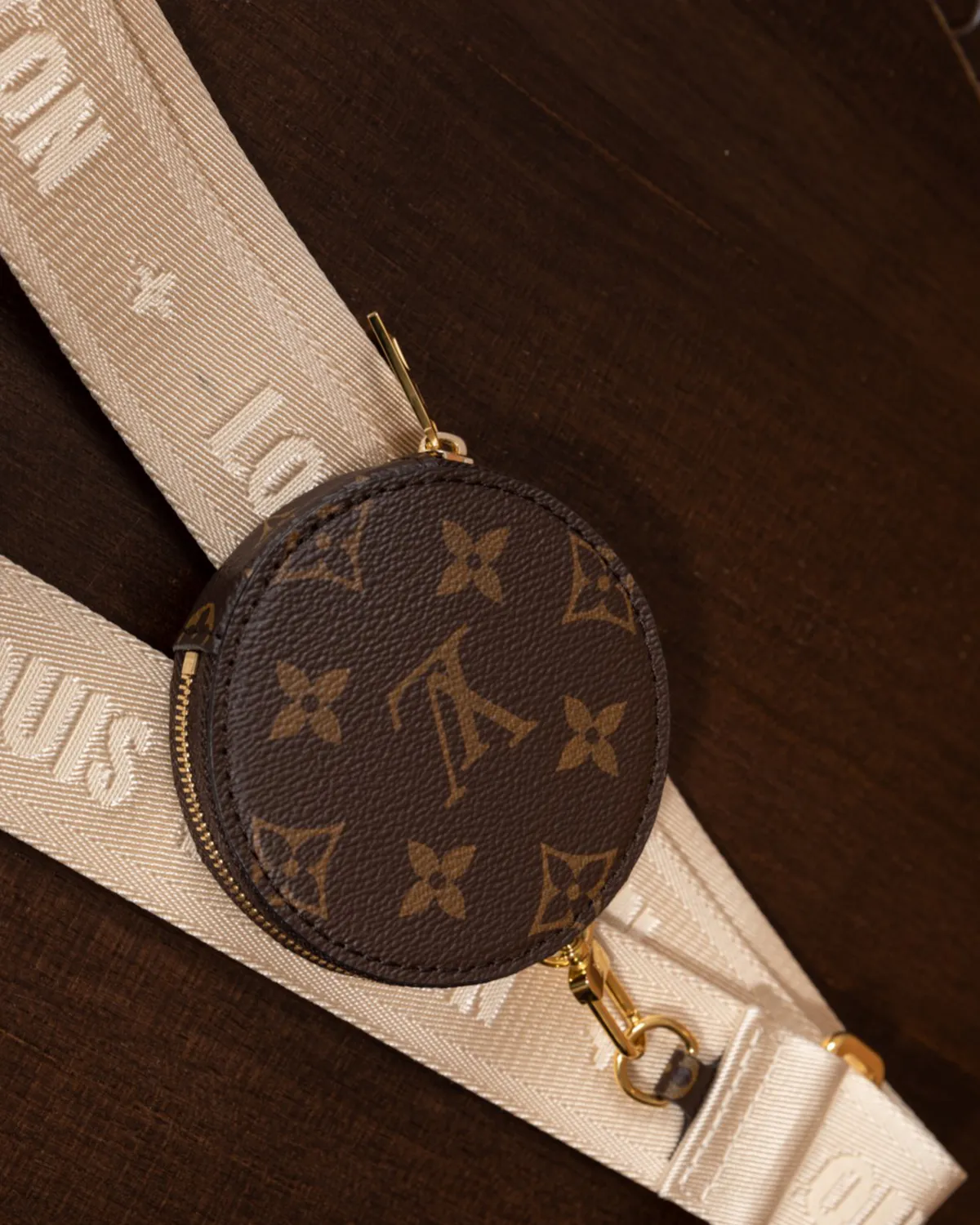 Versatility is key. The bag comes with a wide, adjustable textile strap that sits comfortably on the shoulder or across the chest. Attached to this strap is a removable round coin purse—a clever, functional detail that keeps small necessities like keys or earbuds instantly accessible.