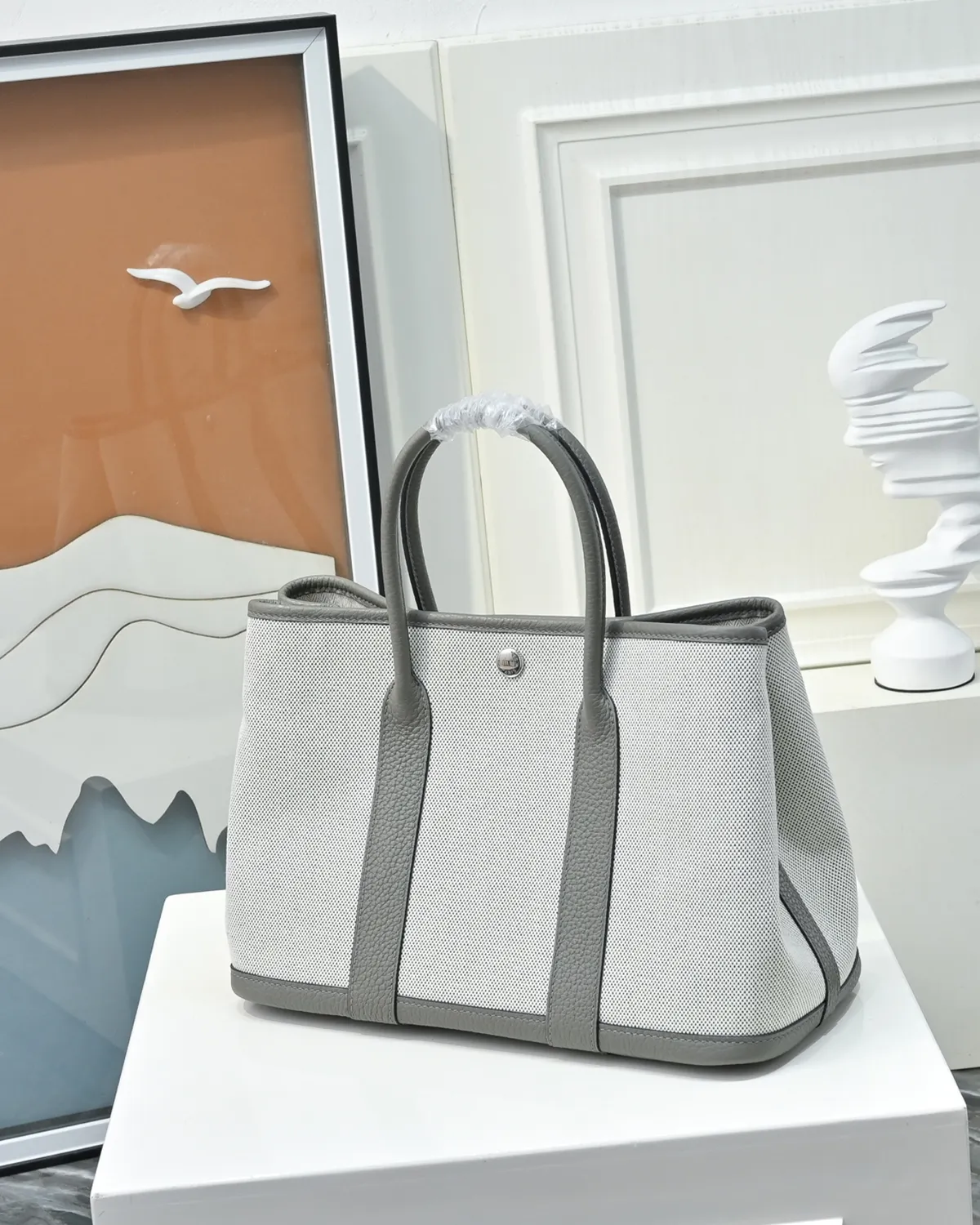 *Note: This item is a high-quality homage inspired by the Hermes Garden Party 30 Canvas & Leather design. It captures the casual canvas aesthetic and Negonda leather trim at an accessible price point.