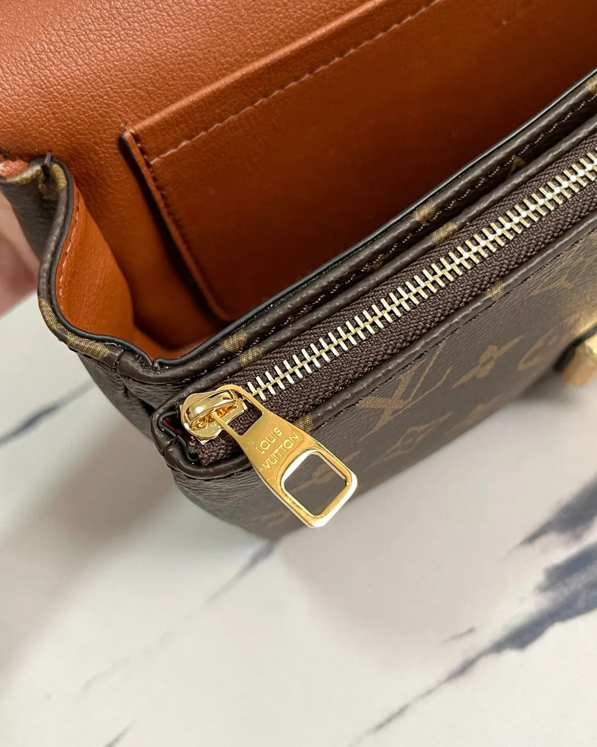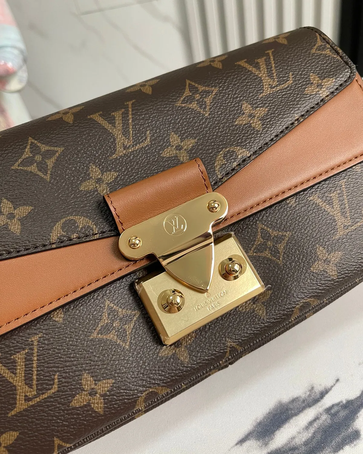 The body utilizes the legendary coated canvas for durability, while the flap and trim are rendered in smooth calfskin leather in a rich Caramel hue. This “block color” effect highlights the architectural lines of the bag. The interior is fully lined in matching leather, offering a luxurious tactile experience every time you reach inside.