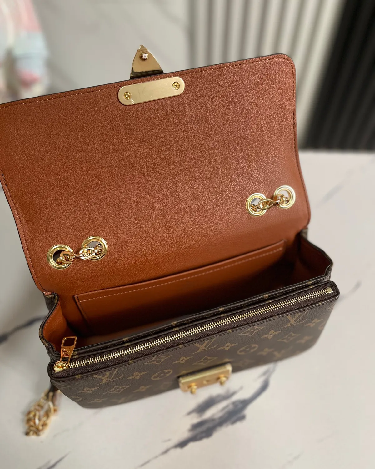 Signature Chain Flap Bag – Monogram & Caramel | BagLadt