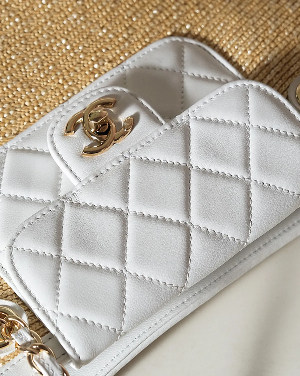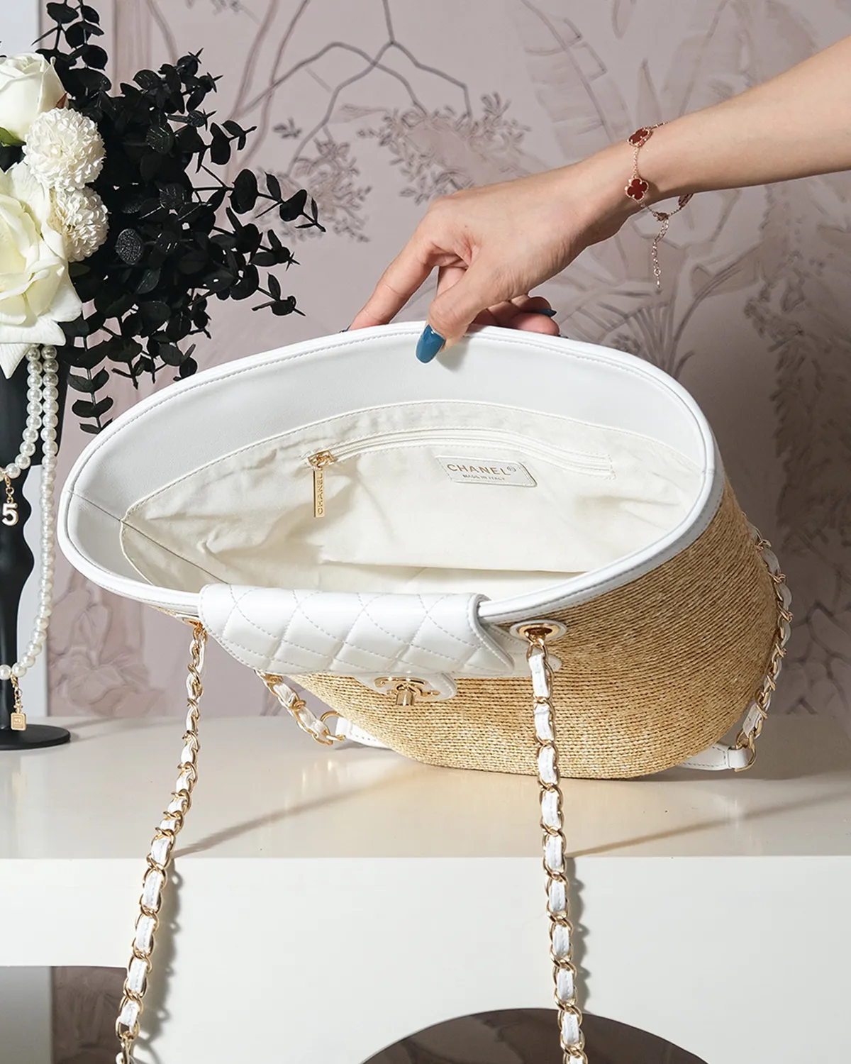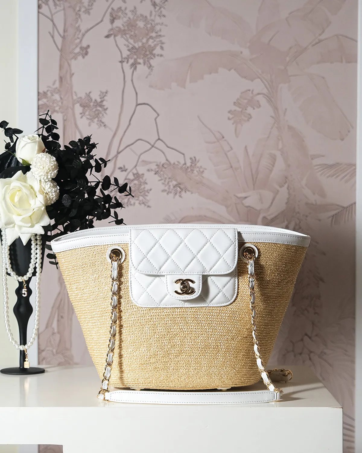 Functionality is key to the Deauville’s success. It features sturdy rolled leather handles for a comfortable hand or crook-of-the-arm carry. For heavier loads, the long leather-interwoven chain straps allow you to sling the bag effortlessly over your shoulder, distributing the weight while adding a jewelry-like shine to your outfit.