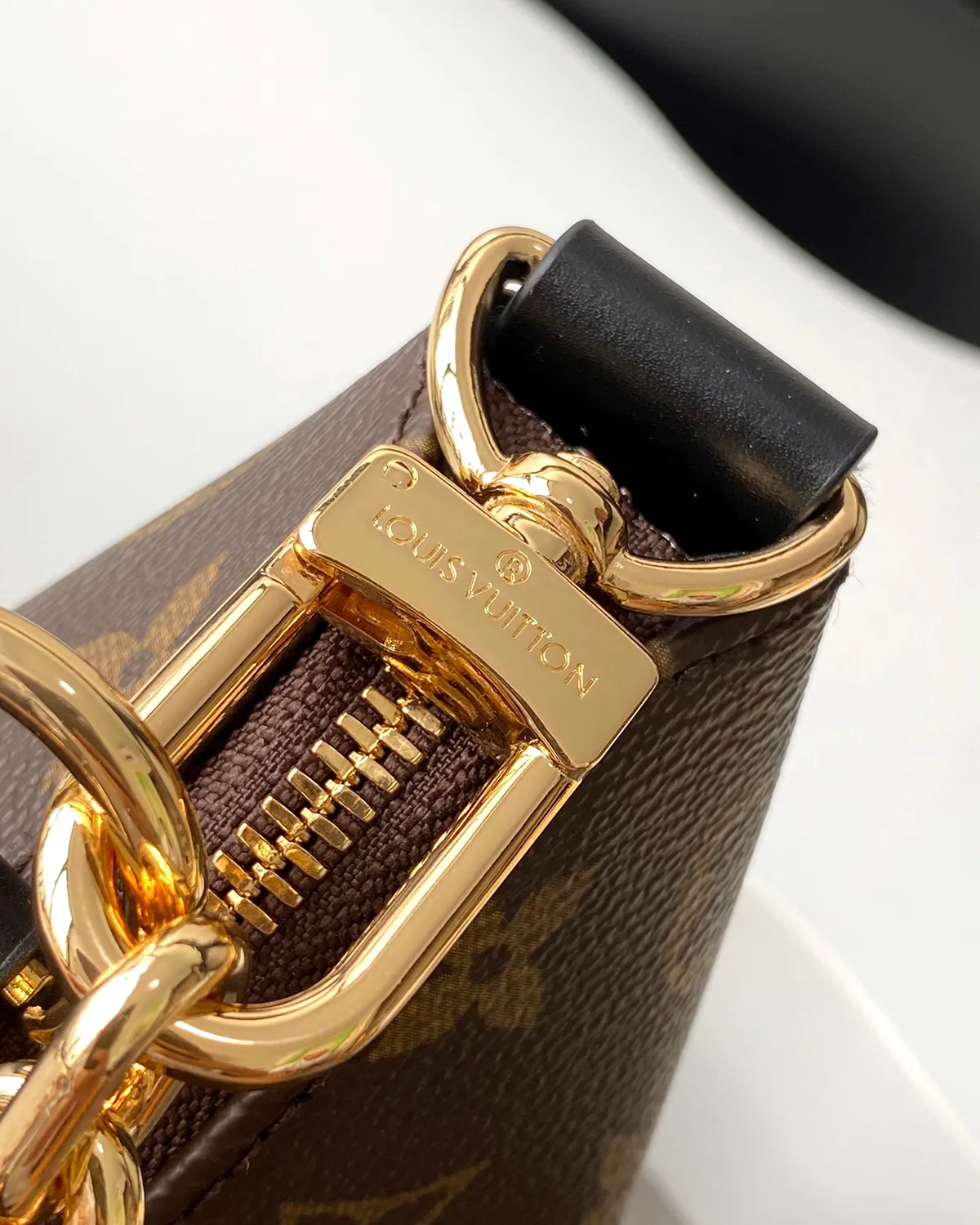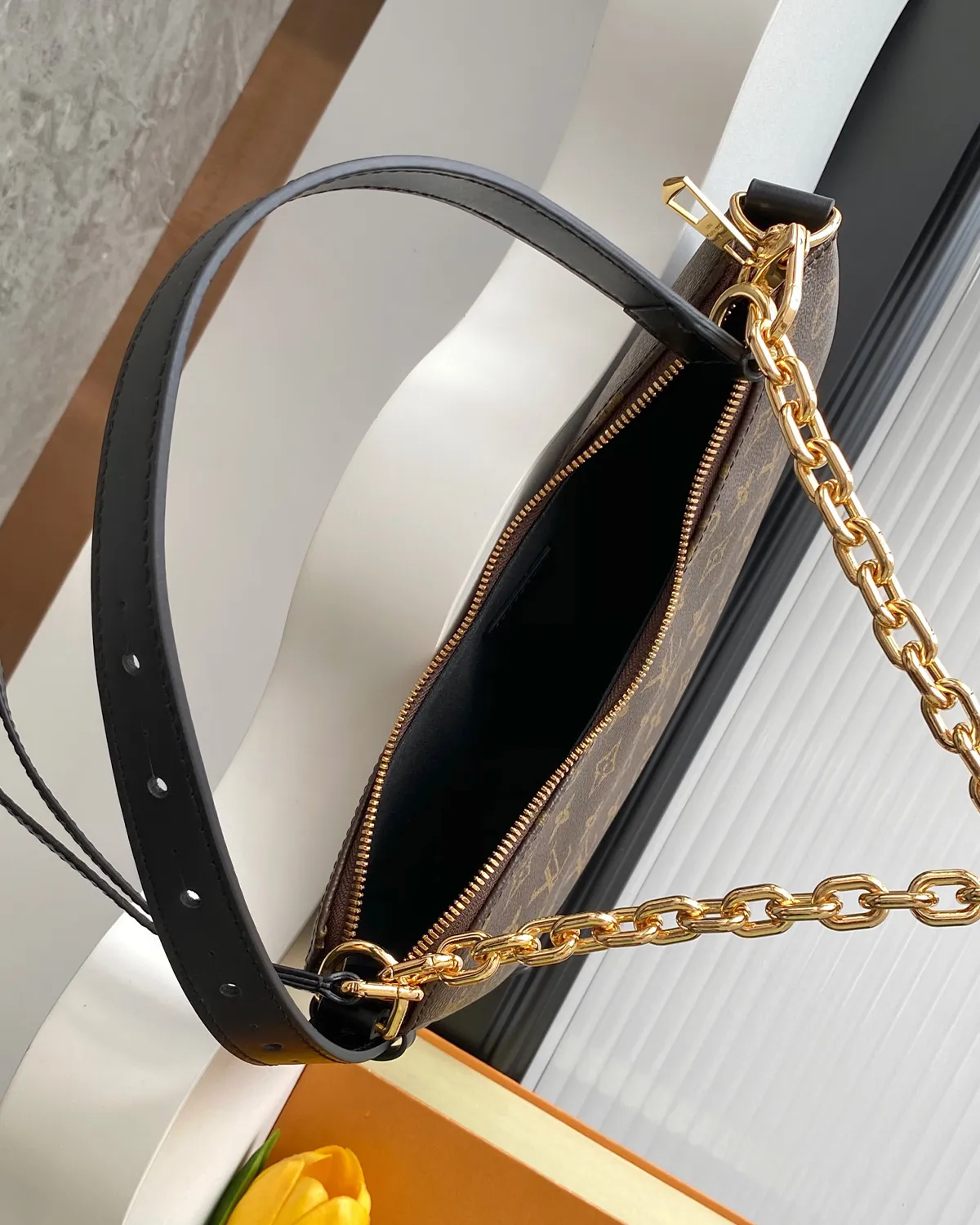 This bag offers two distinct personalities. Use the adjustable black leather strap for a practical, everyday shoulder carry. For evening or a more “street style” look, let the leather strap hang and use the removable chunky gold-tone chain. The chain adds immediate brightness and jewelry-like appeal to the ensemble.