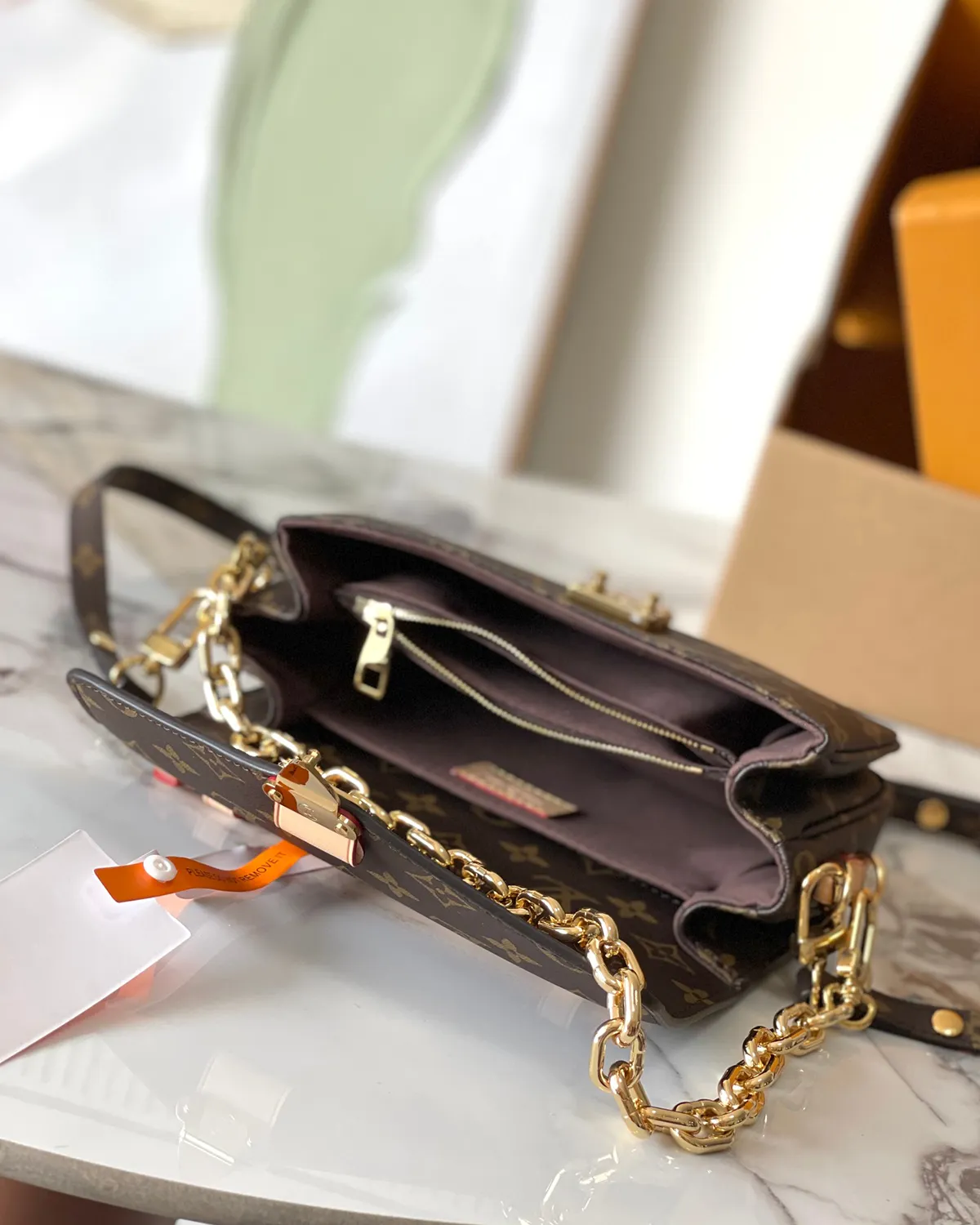 Front and center is the polished gold-tone S-lock closure. Derived from the historic trunk locks of the 19th century, it is both a security feature and a symbol of luxury travel. It opens with a satisfying pinch to reveal a well-organized interior with multiple compartments.