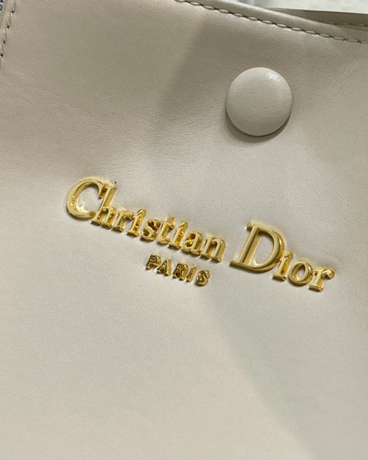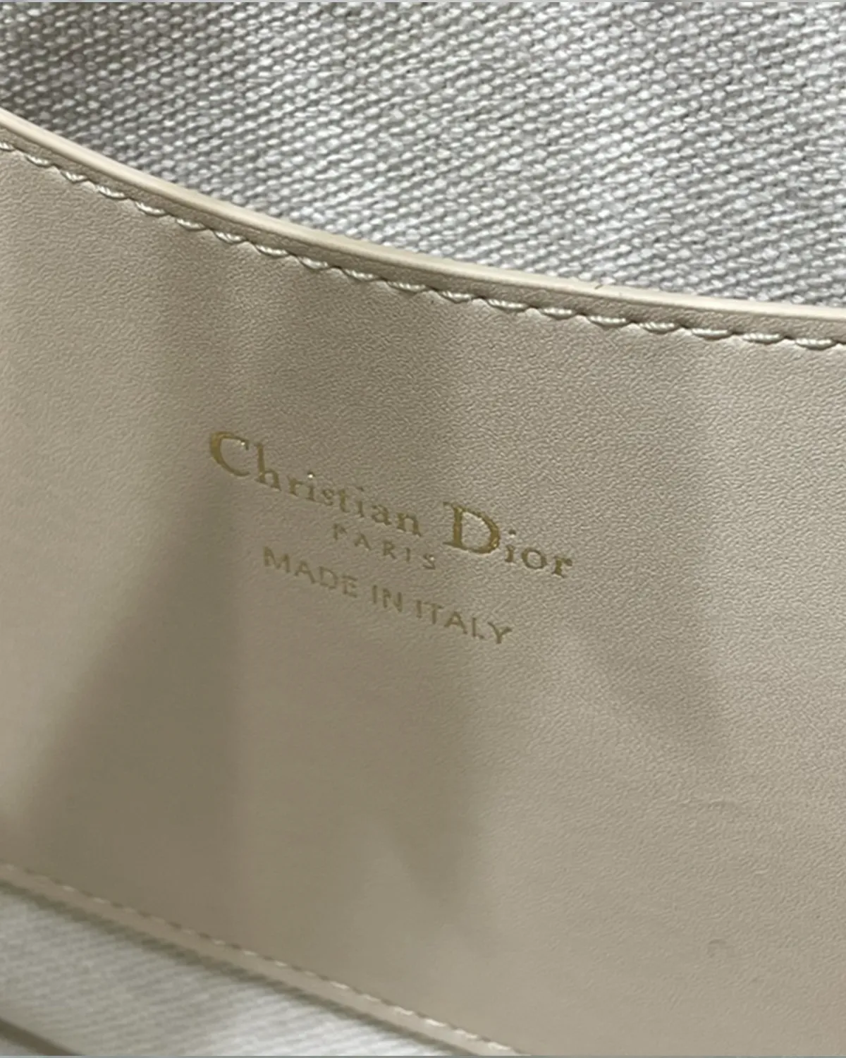 Running across the center is the bold, horizontal embroidered stripe featuring the brand’s name. This detail acts as the bag’s anchor, providing structure to the soft fabric. The precision of the lettering and the density of the thread work are testaments to the atelier’s mastery of embroidery.