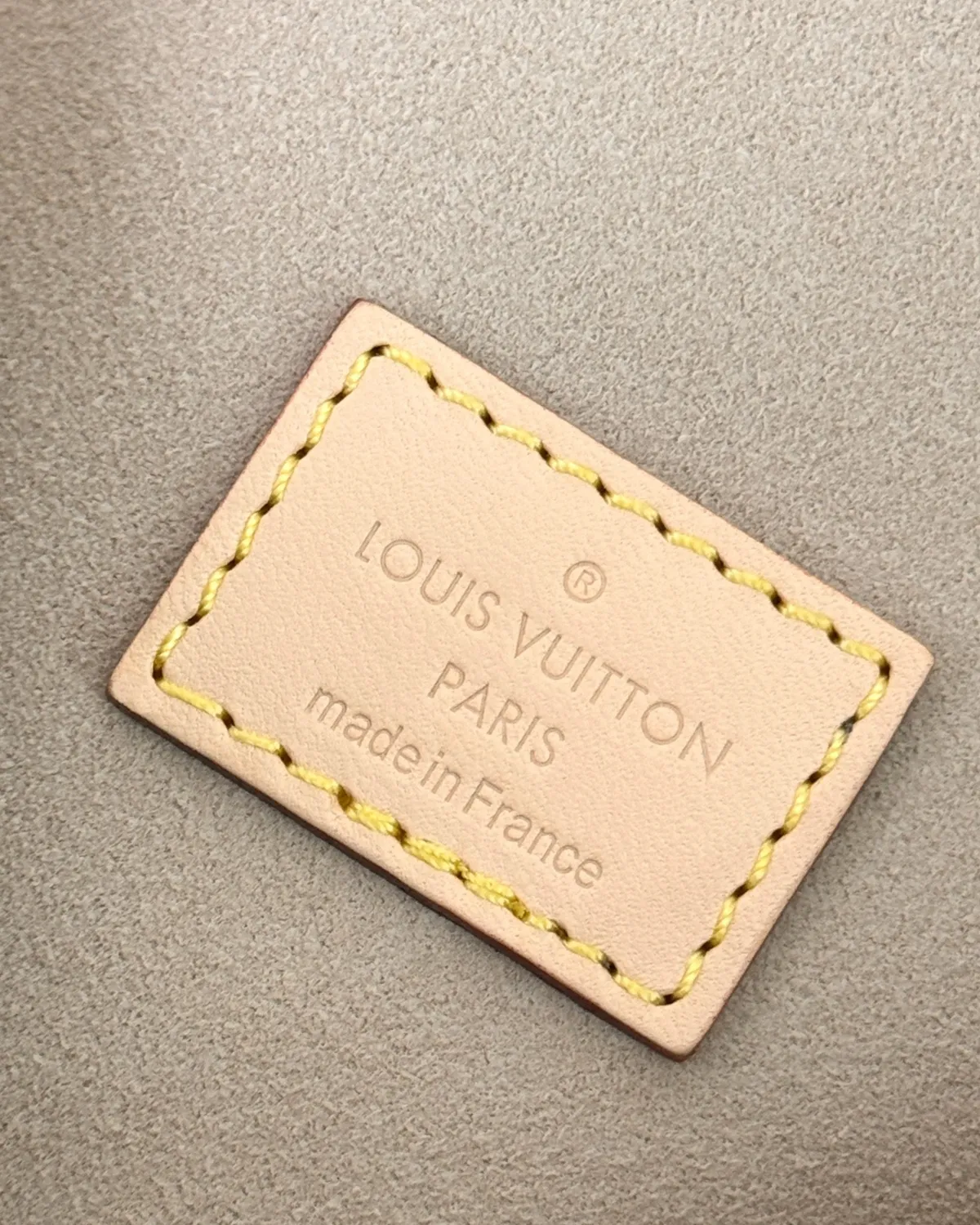 The extensive use of untreated natural leather on the trim, handle, and strap ensures that this bag will get better with age. As it is exposed to sunlight and touch, the pale beige leather will darken into a warm, honey-amber patina, creating a beautiful contrast against the brown monogram canvas.