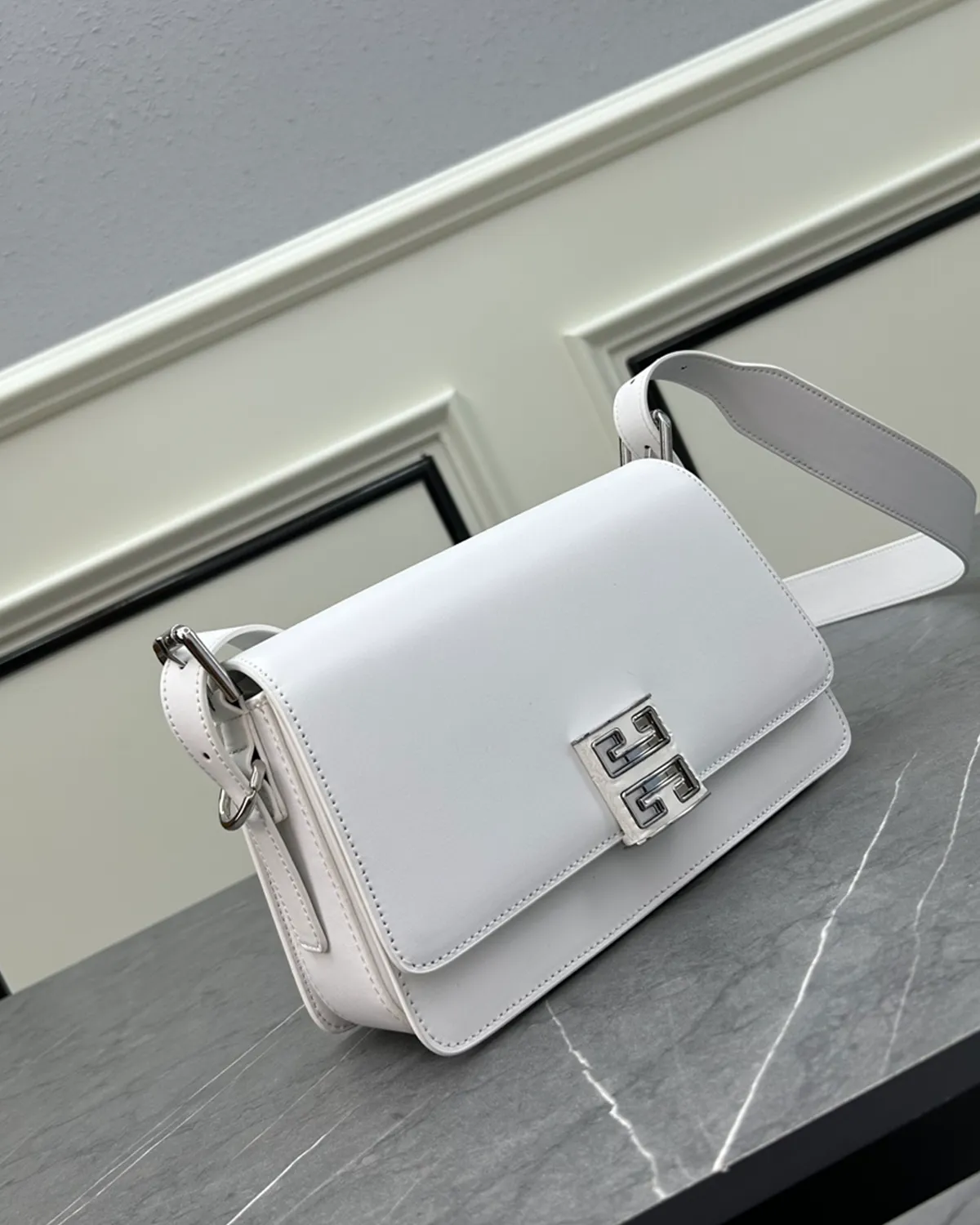 The focal point is the magnetic metal clasp featuring the house’s archival 4G logo. This geometric hardware serves as both a secure closure and a piece of modern jewelry. Its mechanical click is satisfying and precise, embodying the brand’s commitment to industrial elegance.