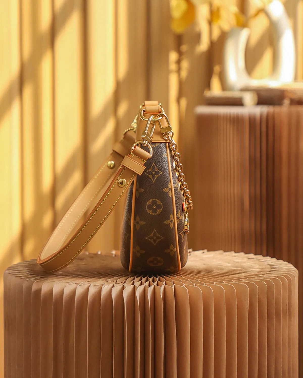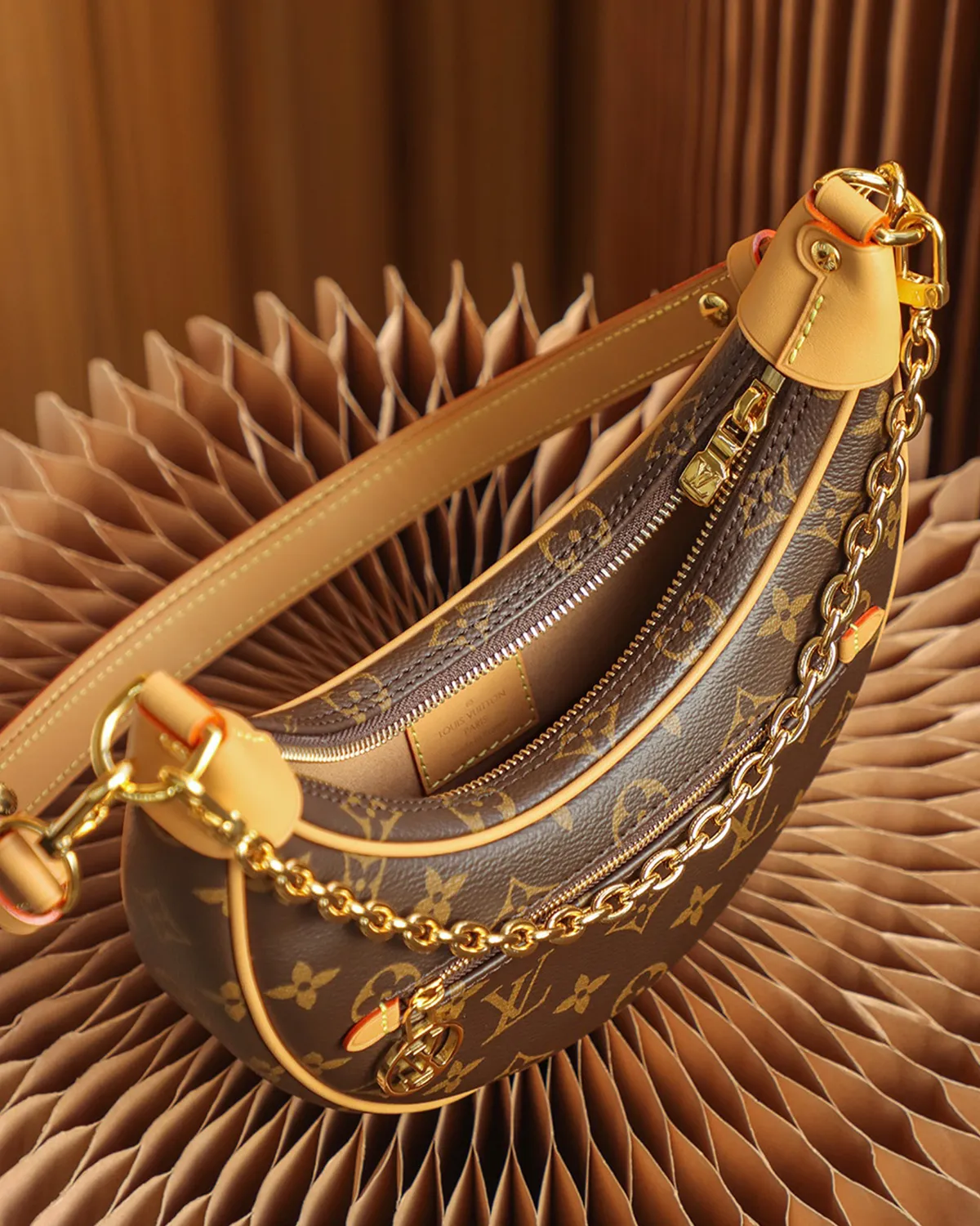 Signature Half-Moon Shoulder Bag – Monogram & Gold Chain | BagLadt