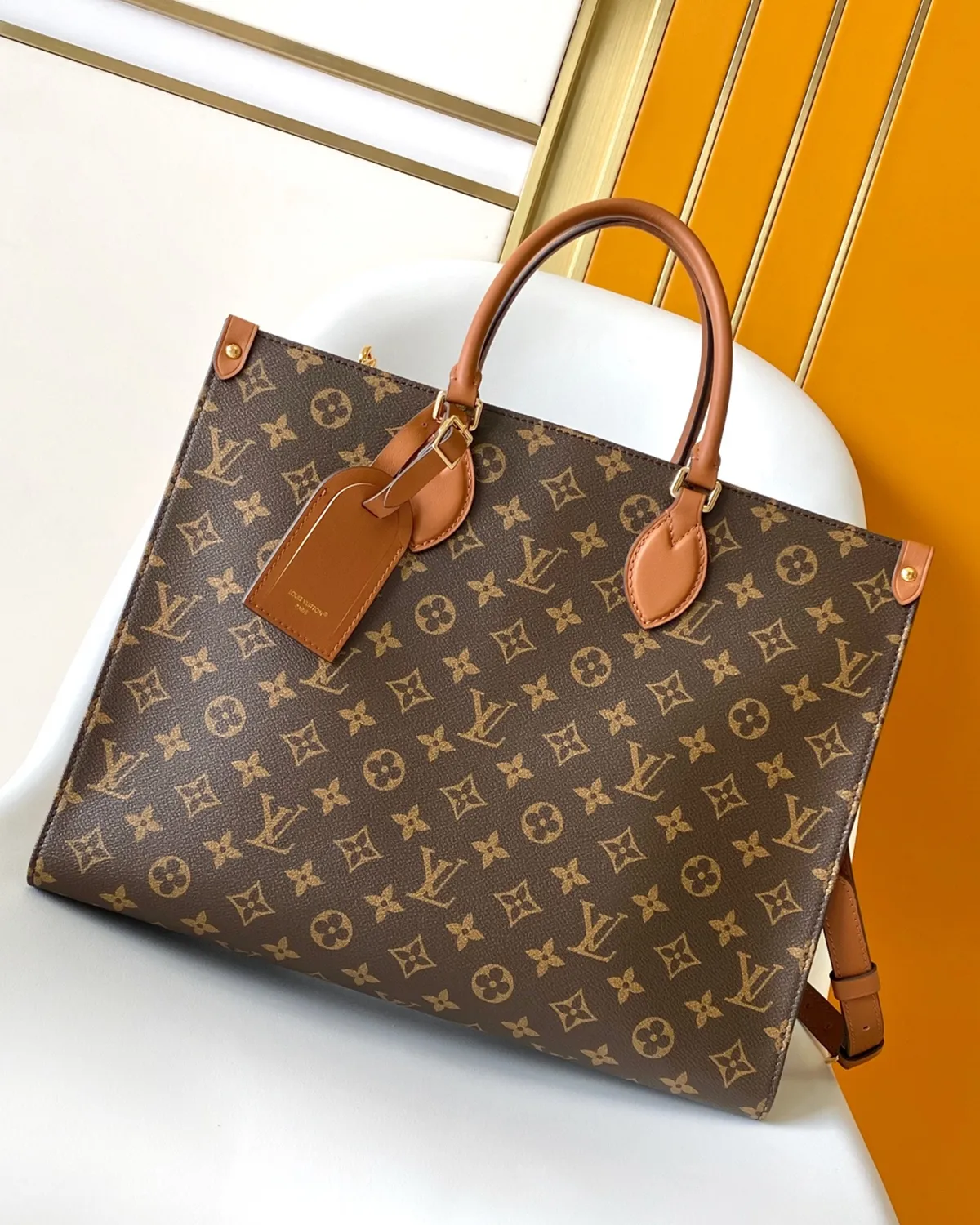 The body is wrapped in the legendary coated canvas, ensuring the bag remains lightweight and durable. It is framed by natural cowhide leather (Vachetta) trim along the edges and corners, which adds structure to the curves and will develop a rich amber patina over time, enhancing its vintage appeal.