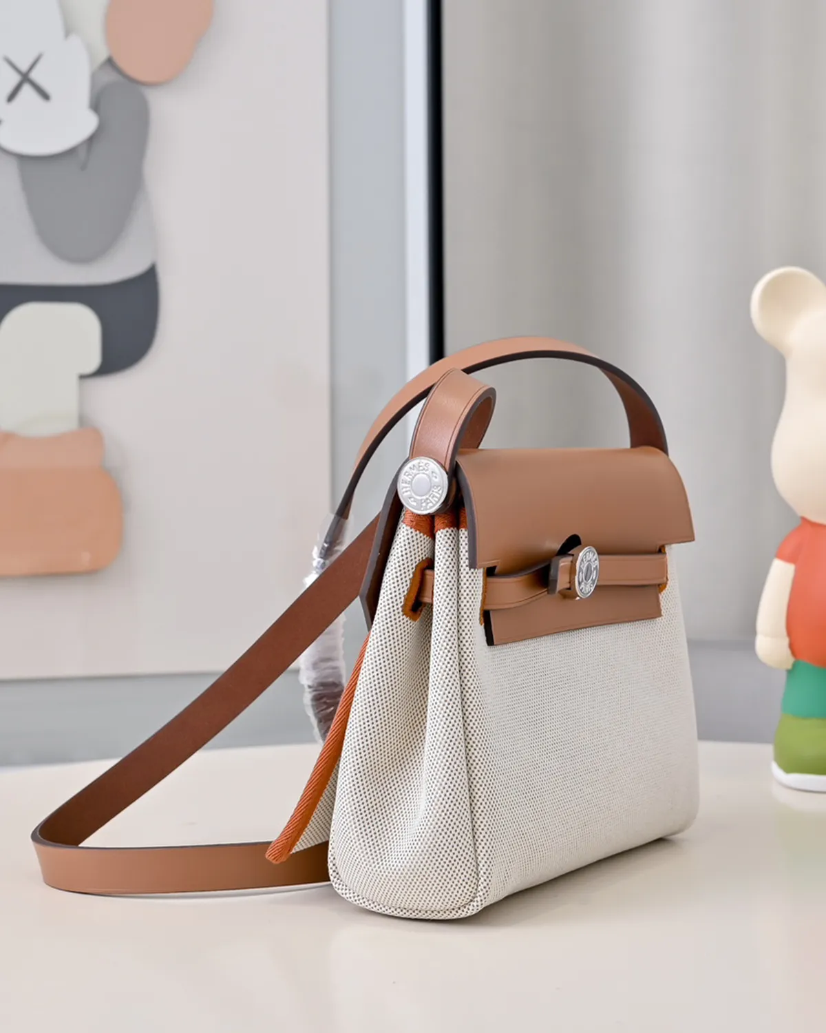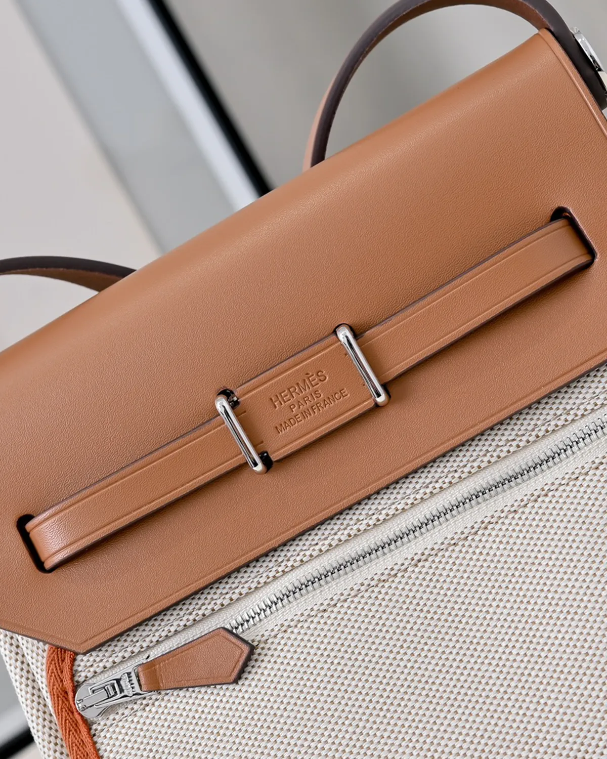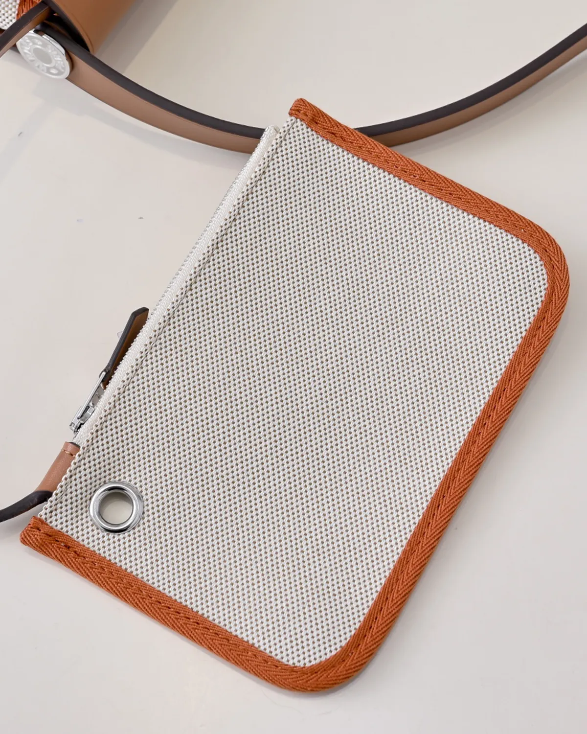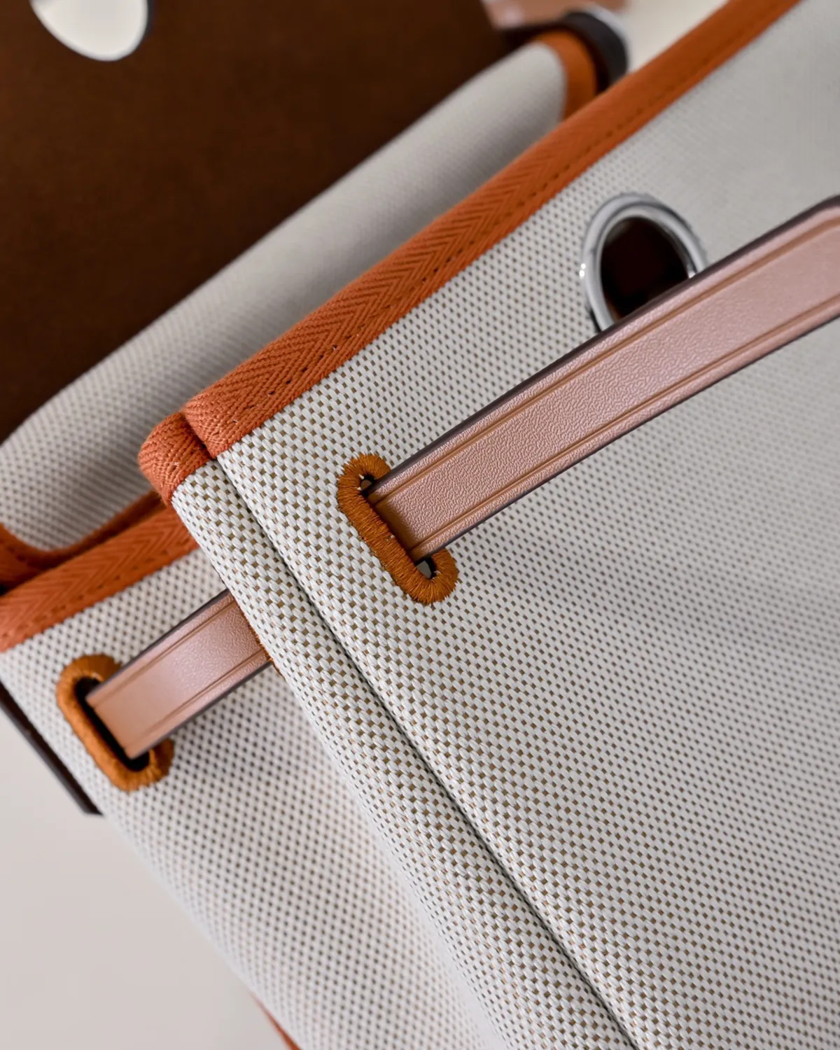 The body utilizes “Toile H,” a tightly woven cotton canvas known for its incredible strength and resistance to shape-loss. The Ecru and Beige threads create a neutral, textural surface that feels organic and crisp. It significantly reduces the weight of the bag compared to all-leather versions, making it a joy to carry on warm days.