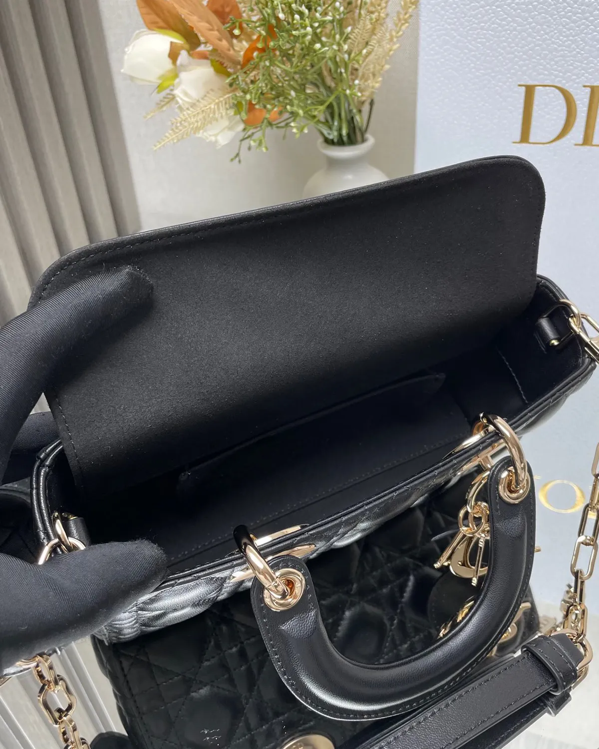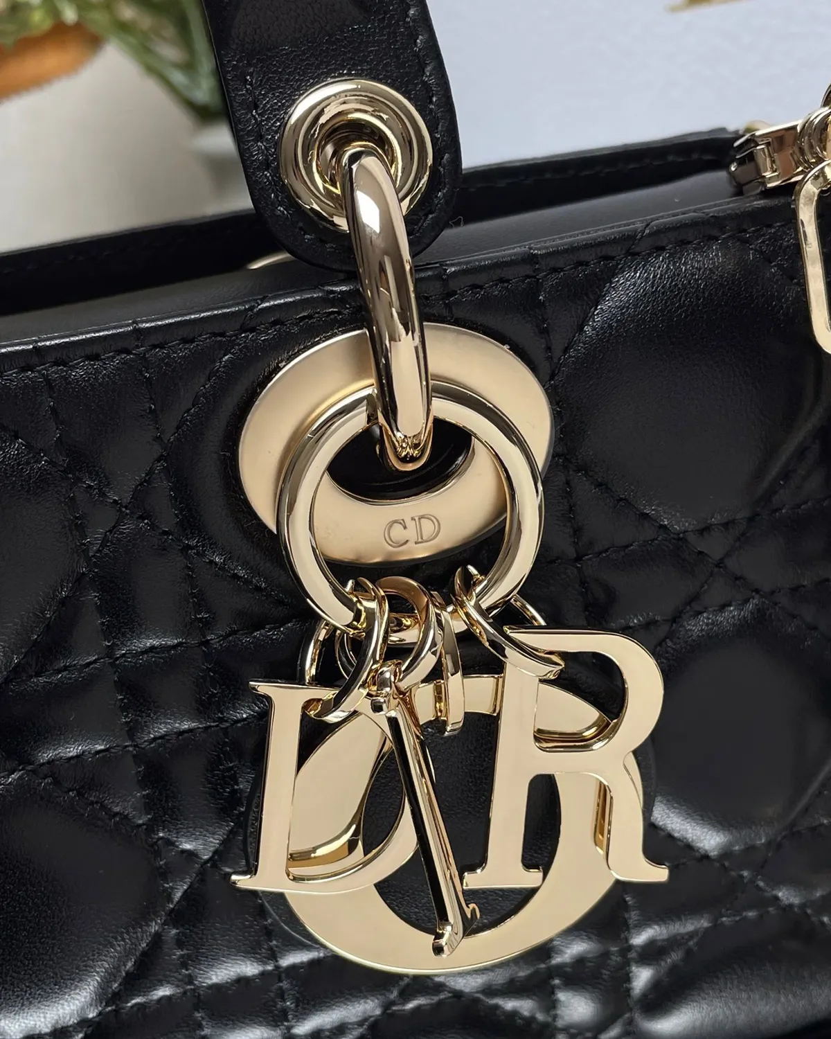 Just like its predecessor, this bag features the iconic metal letter charms hanging from the handle. Finished in pale gold, they spell out the house’s name and jingle softly with movement. This hardware acts as a bracelet for the bag, providing a warm contrast to the deep black leather.