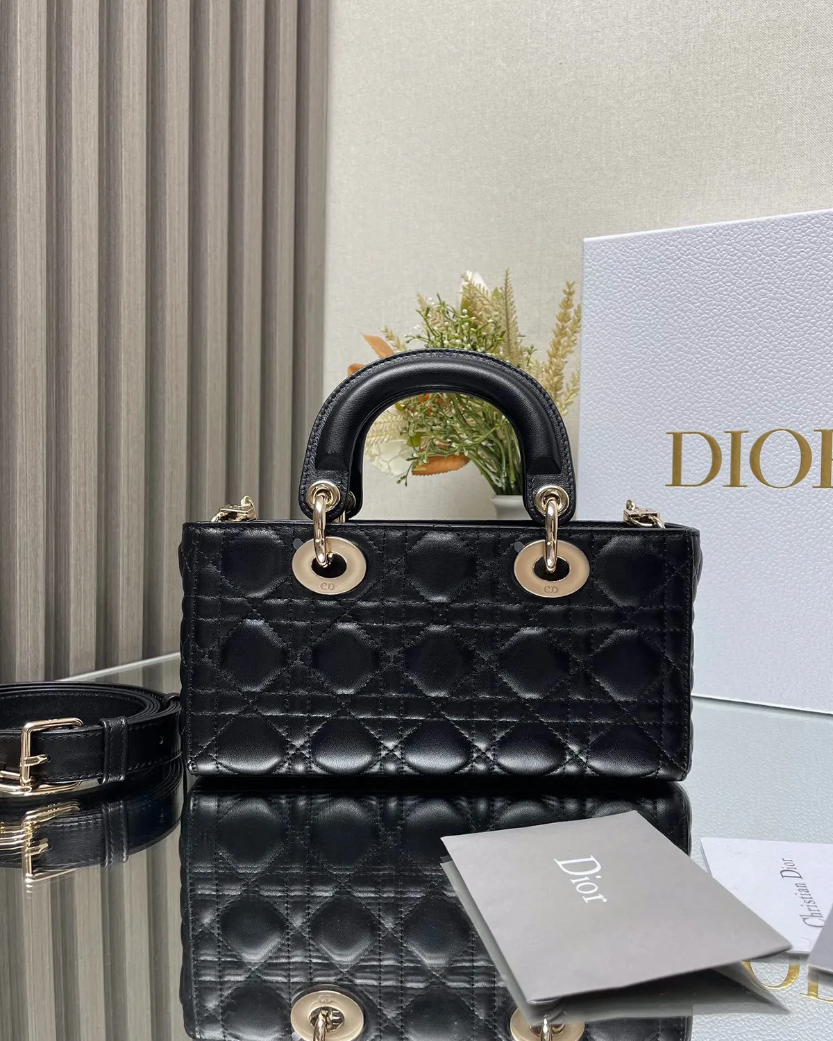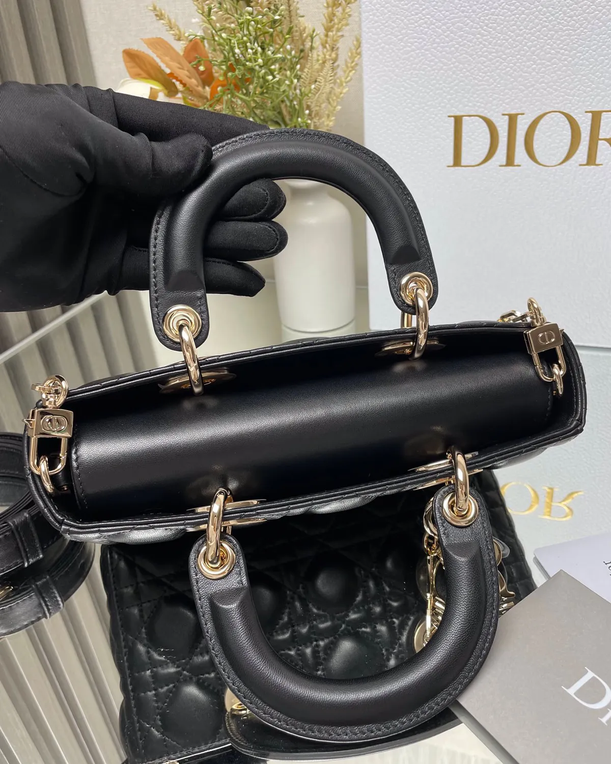 The body is wrapped in exquisite lambskin, chosen for its smooth grain and soft hand-feel. The classic Black colorway offers unmatched versatility, seamlessly transitioning from day to night. The signature topstitching creates a quilted geometric pattern, adding volume and texture that catches the light beautifully.