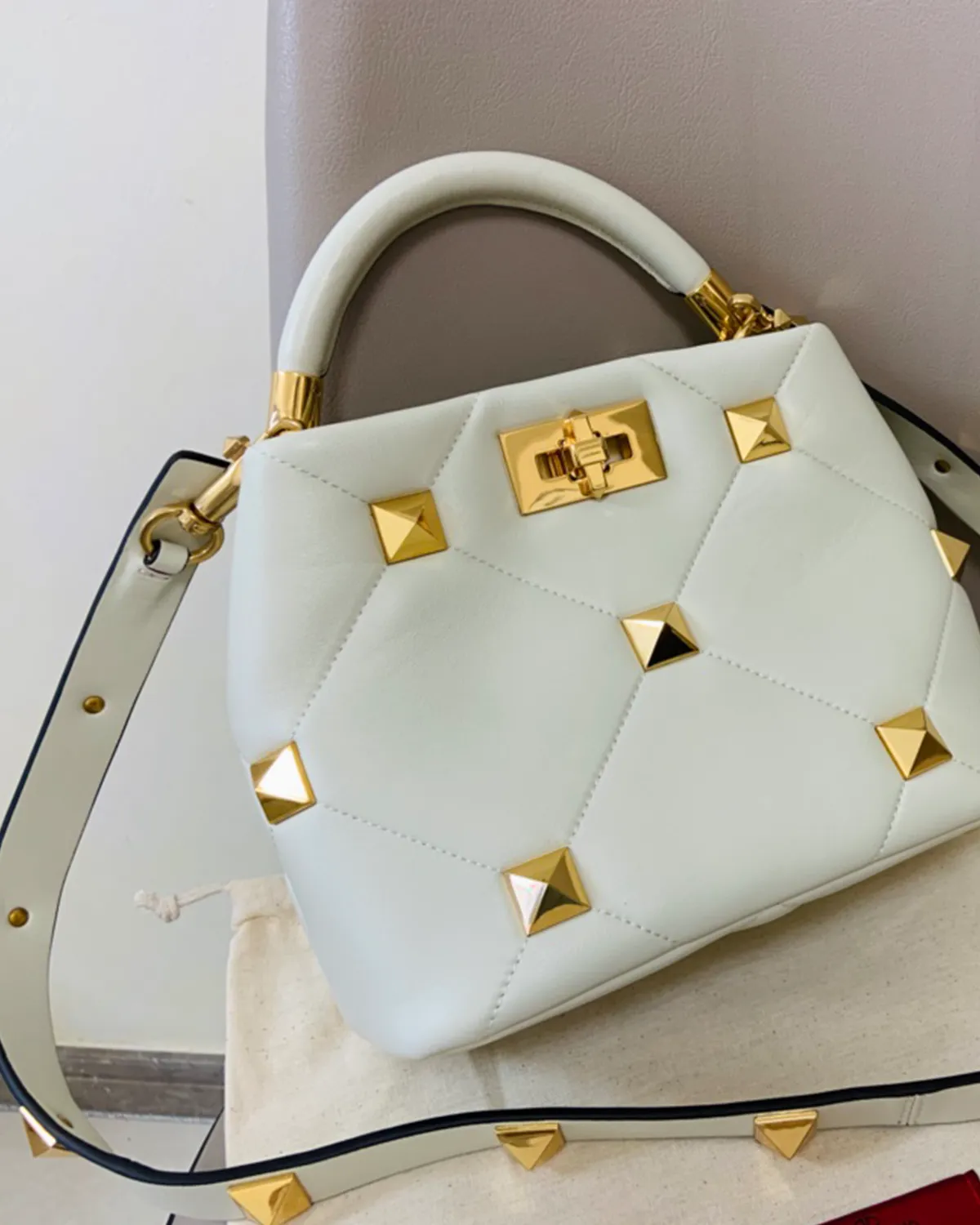 *Note: This item is a high-quality homage inspired by the Valentino Garavani Roman Stud “The Handle” Small design. It captures the structured aesthetic and oversized stud details at an accessible price point.