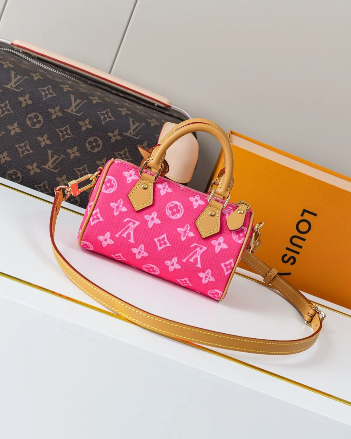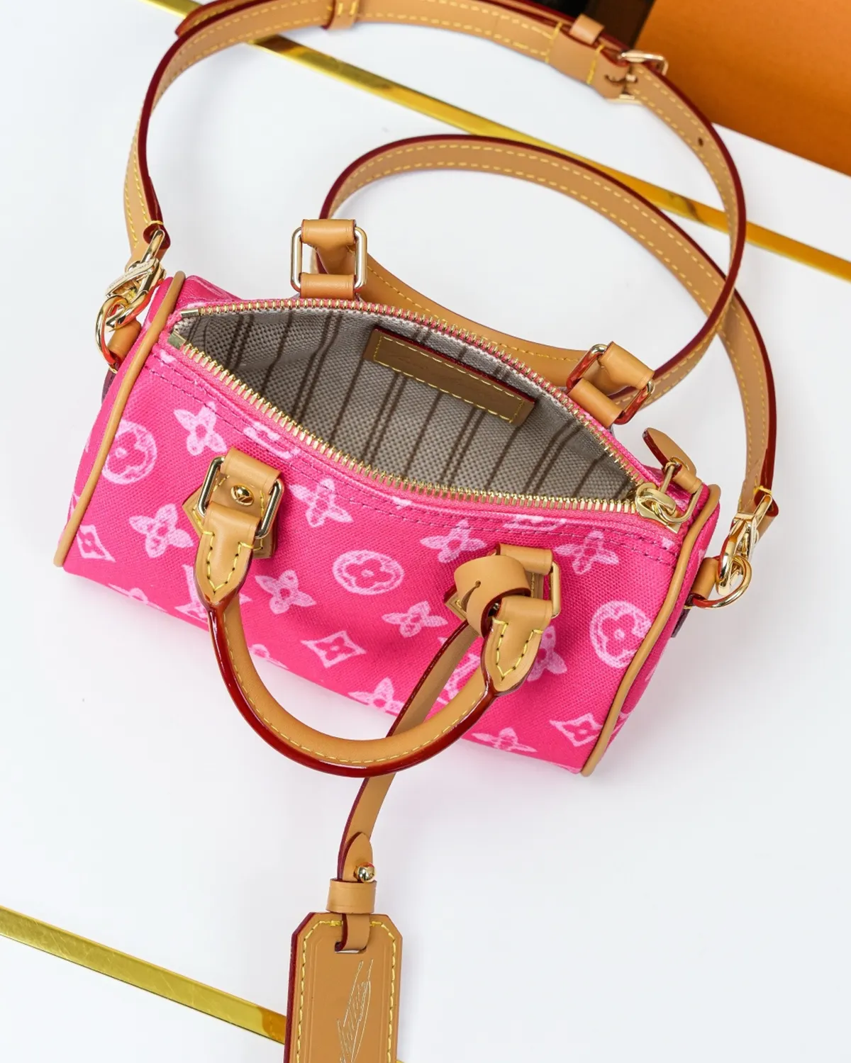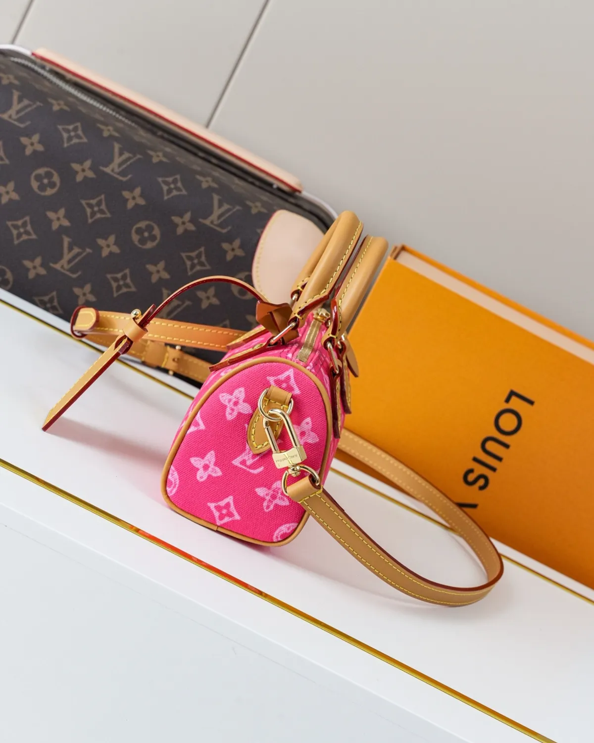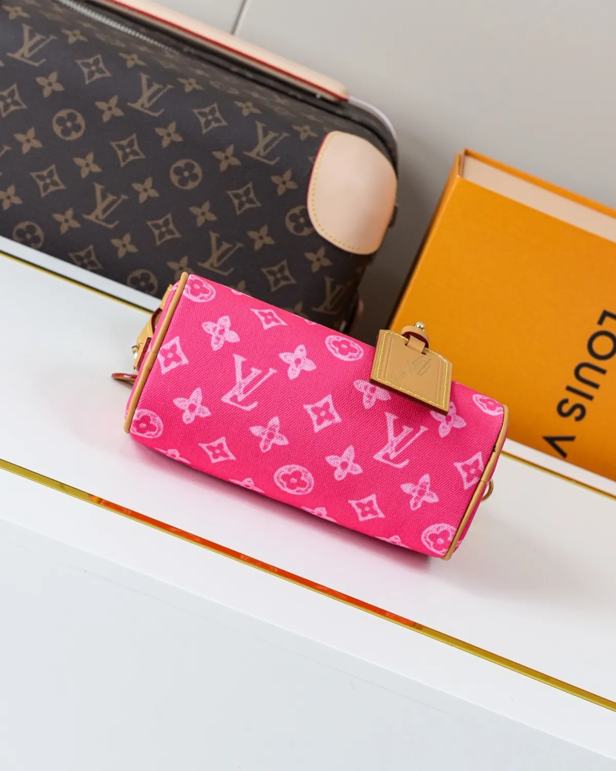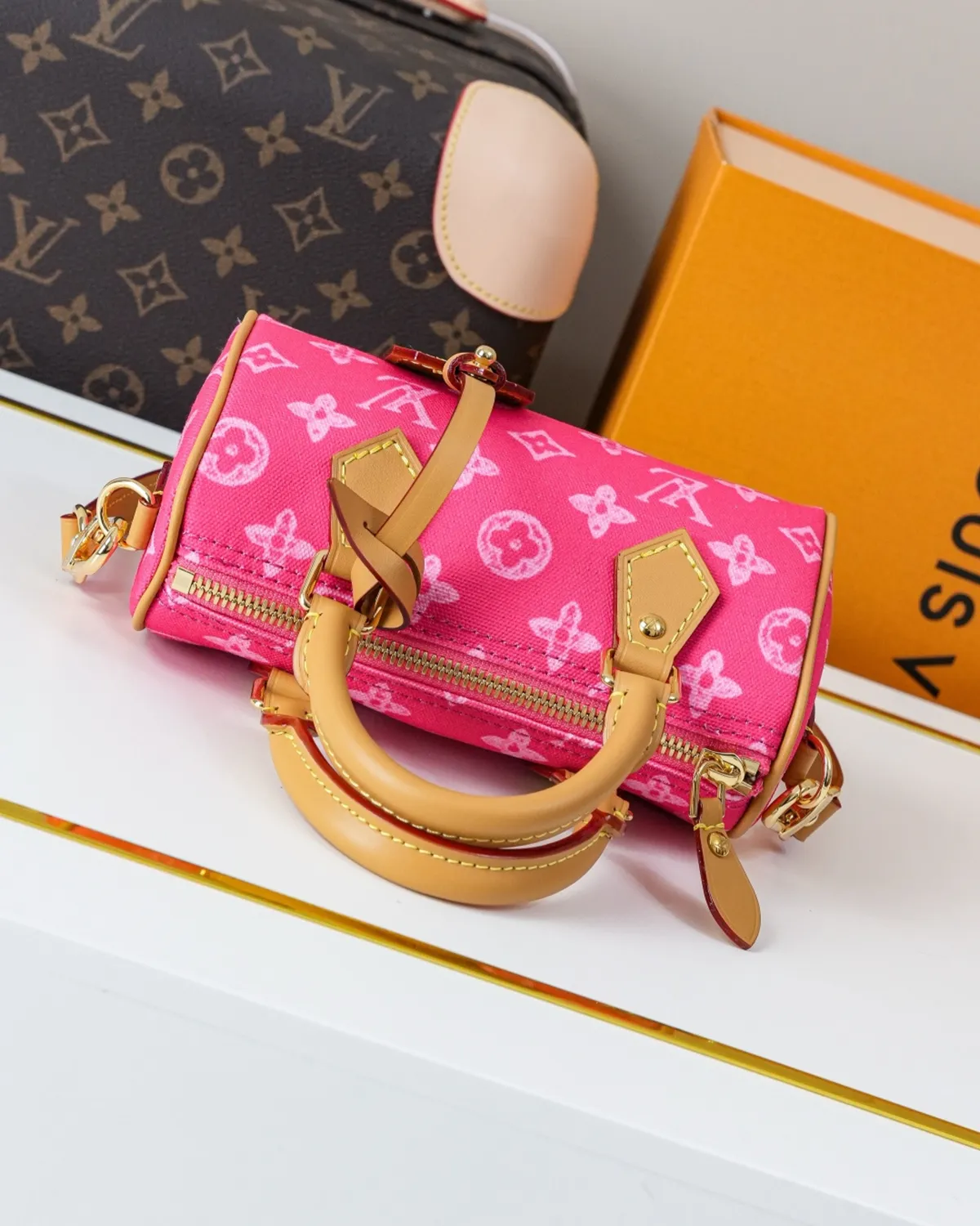 Signature Mini Boston Bag – Sand-Toned Monogram | BagLadt