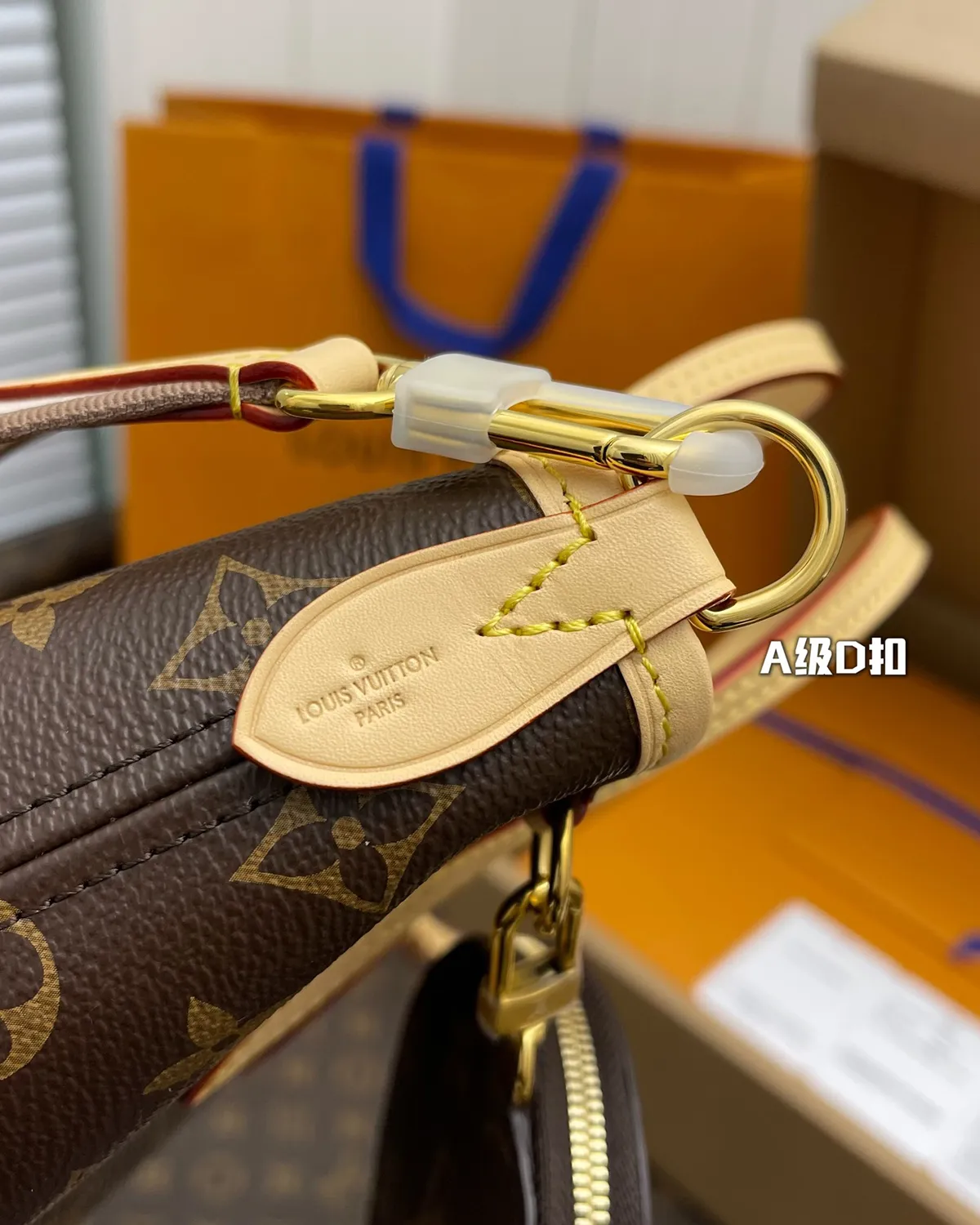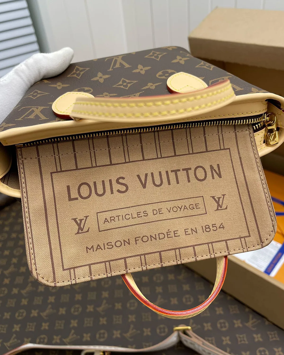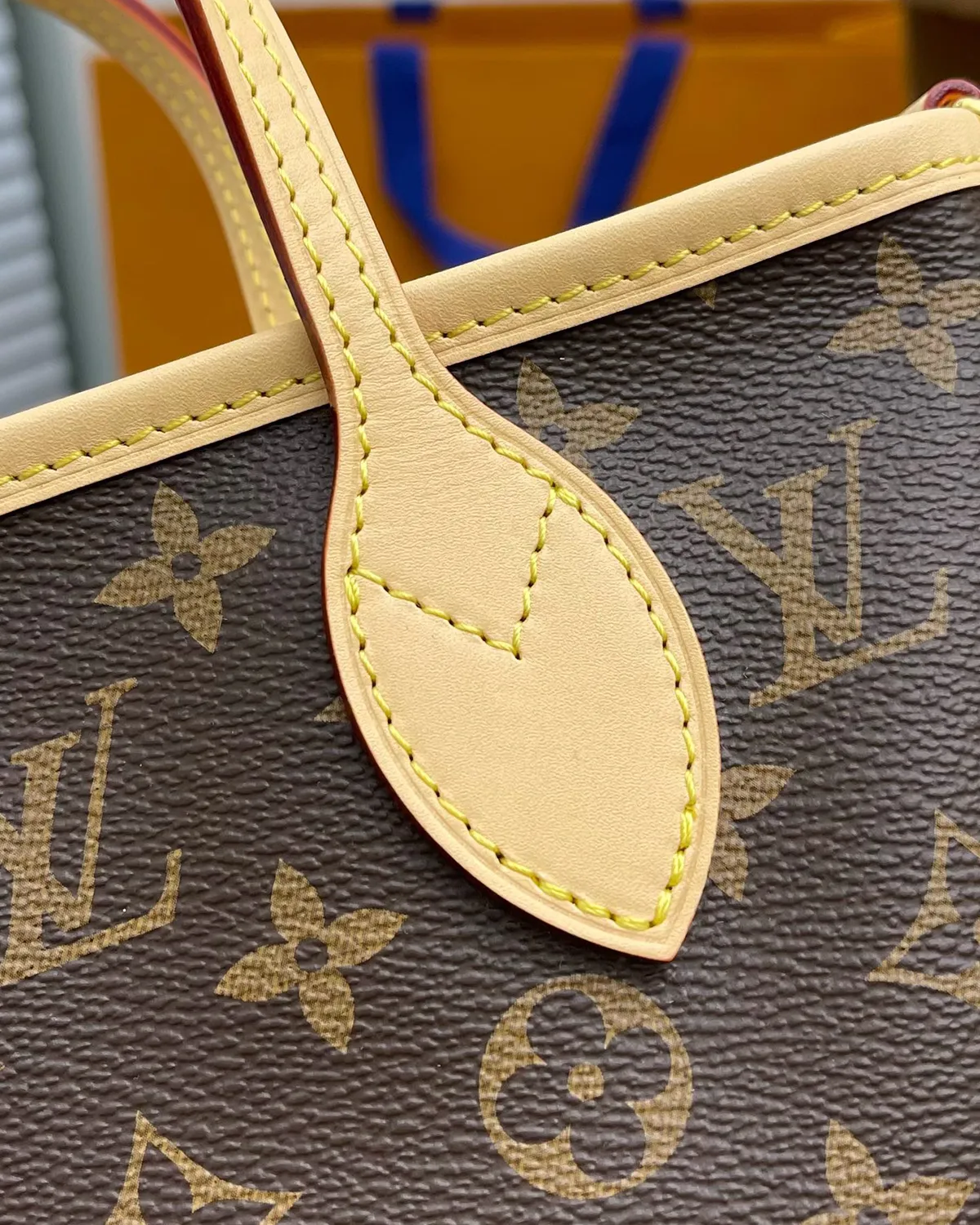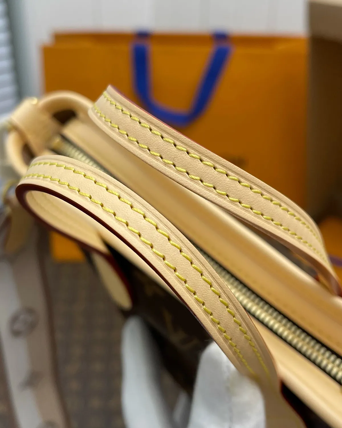 The body is crafted from the timeless coated canvas, renowned for its durability and iconic floral pattern. It is trimmed with natural cowhide leather (Vachetta) along the top edge and thin handles. This leather will slowly darken to a rich amber patina, adding a personal touch of history to the bag.