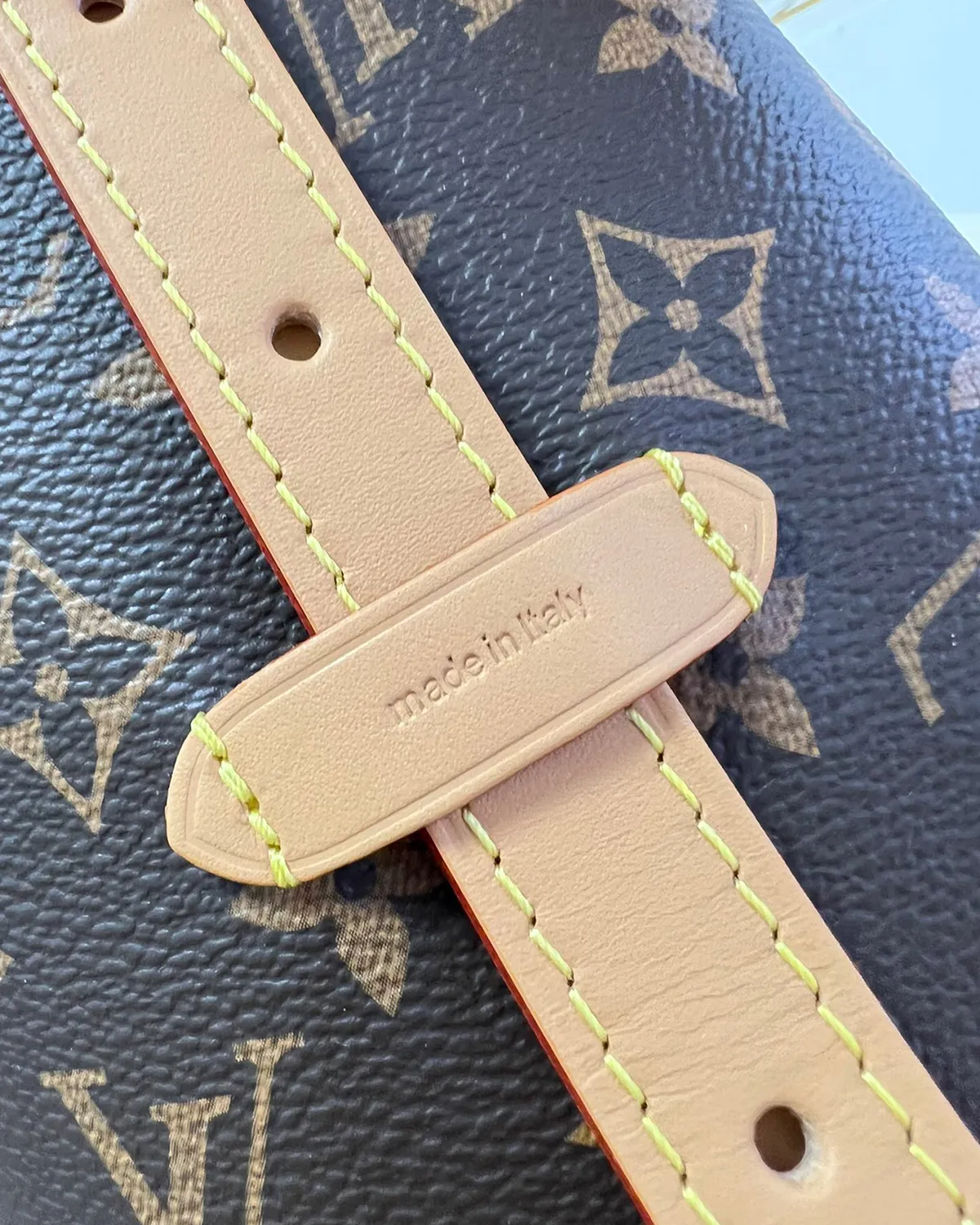 The body is wrapped in the legendary coated canvas, celebrated for its lightweight durability and resistance to the elements. It is framed by natural cowhide leather (Vachetta) trim. The central leather shoelace tie adds a feminine, bohemian touch to the structured print, while the leather luggage tag nods to the brand’s travel roots.