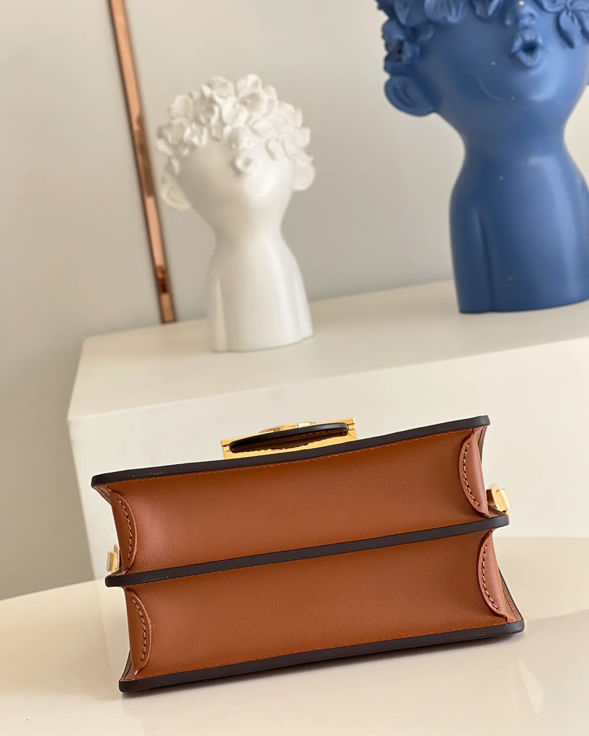 Despite its “Mini” stature, the interior is surprisingly functional. Divided into two distinct compartments lined in black microfiber, it keeps essentials organized. The removable leather strap allows for shoulder or crossbody wear, or it can be removed entirely to carry the bag as a chic, structured clutch.