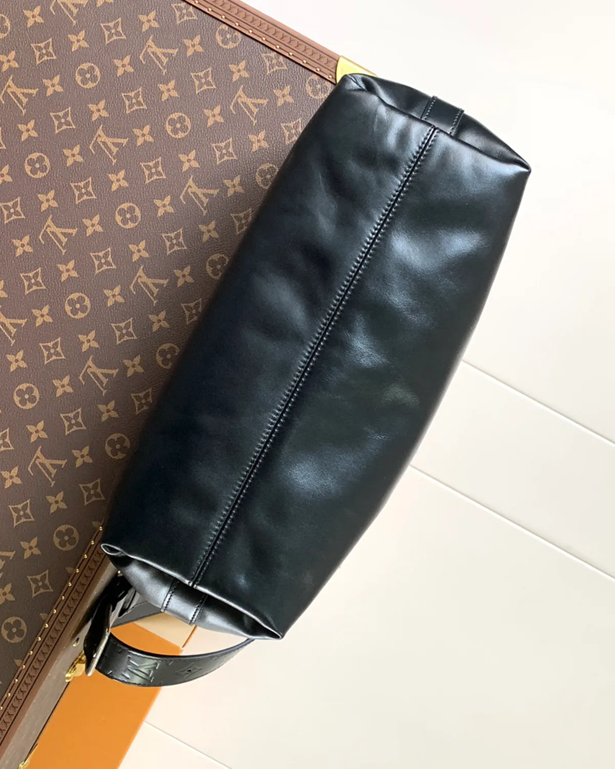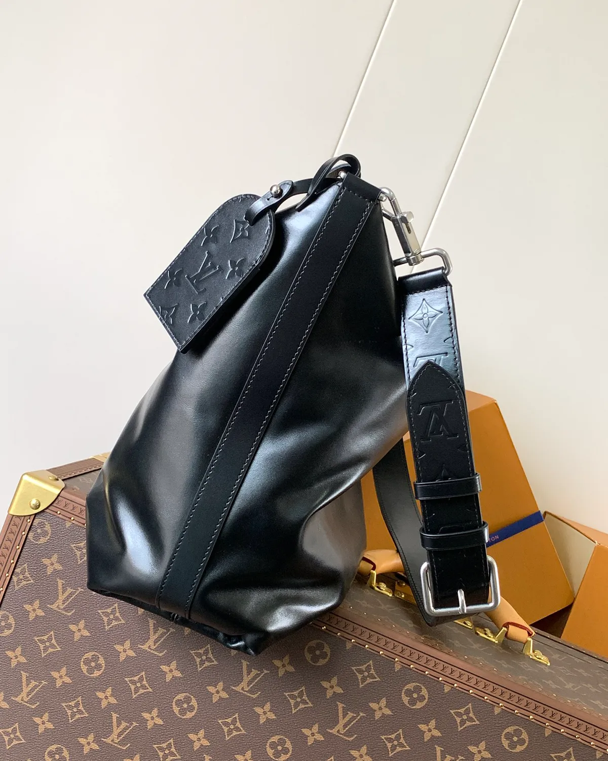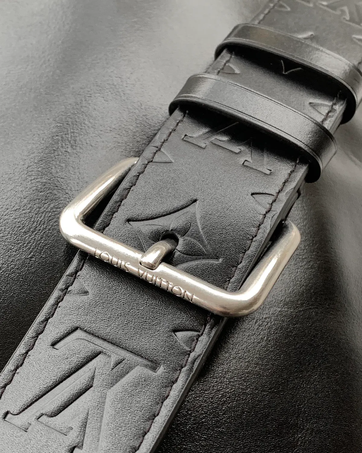 The body is crafted from premium “Taurillon” style leather, prized for its thickness and incredibly soft hand-feel. The iconic monogram pattern is embossed deeply into the grain, creating a 3D relief effect. The matte black finish absorbs light, giving the bag a stealthy, understated luxury that appeals to the modern man.