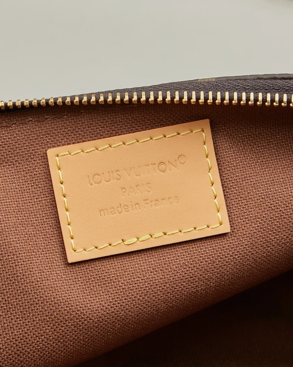The defining feature of this bag is the oversized gold-tone metal plate centered on the front. Engraved with the brand’s historic signature, its curved shape mimics the plaques found on 19th-century invention patents. It adds a touch of jewelry-like shine that elevates the classic canvas body.