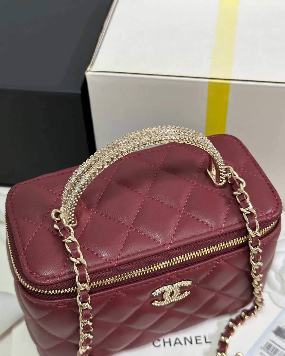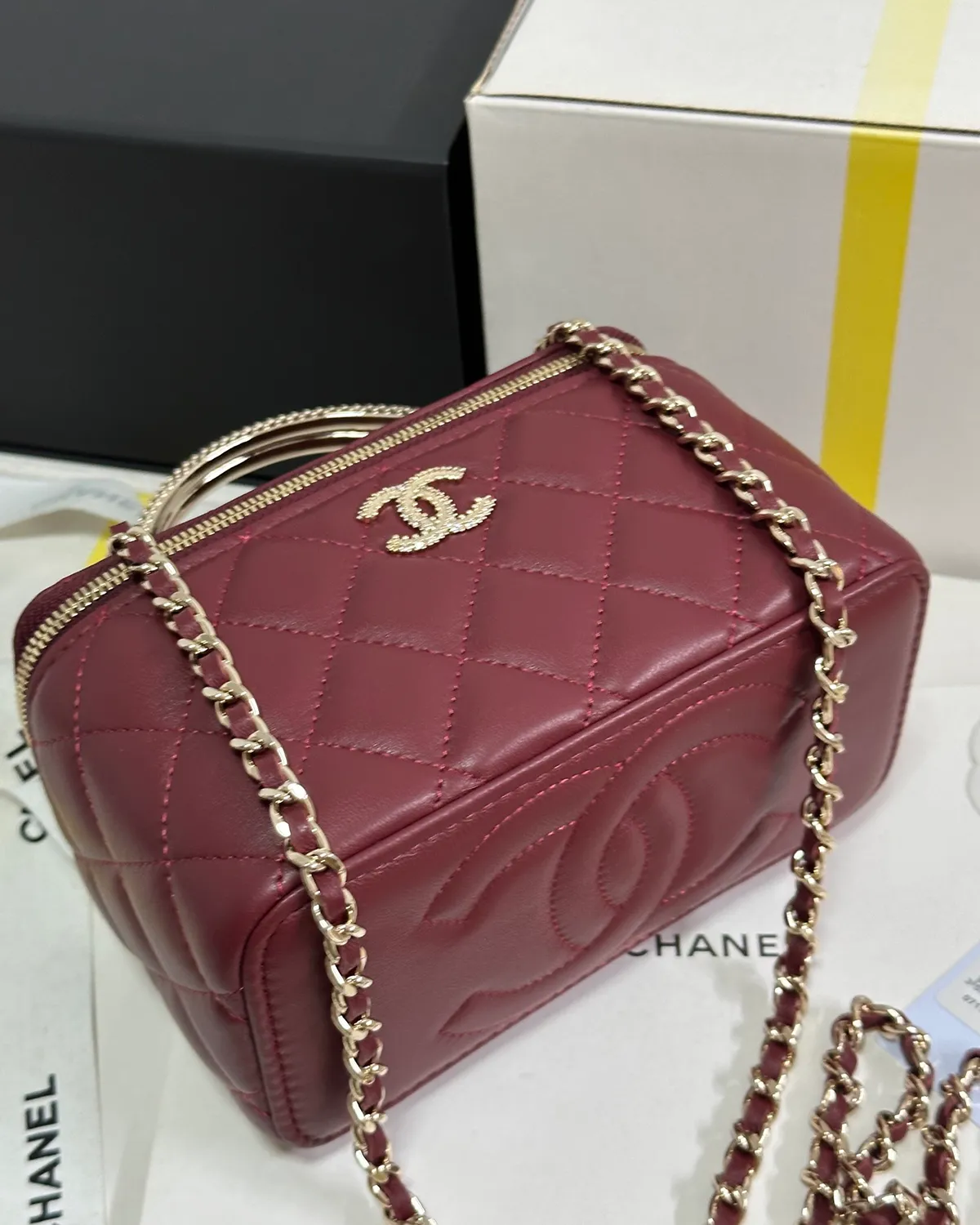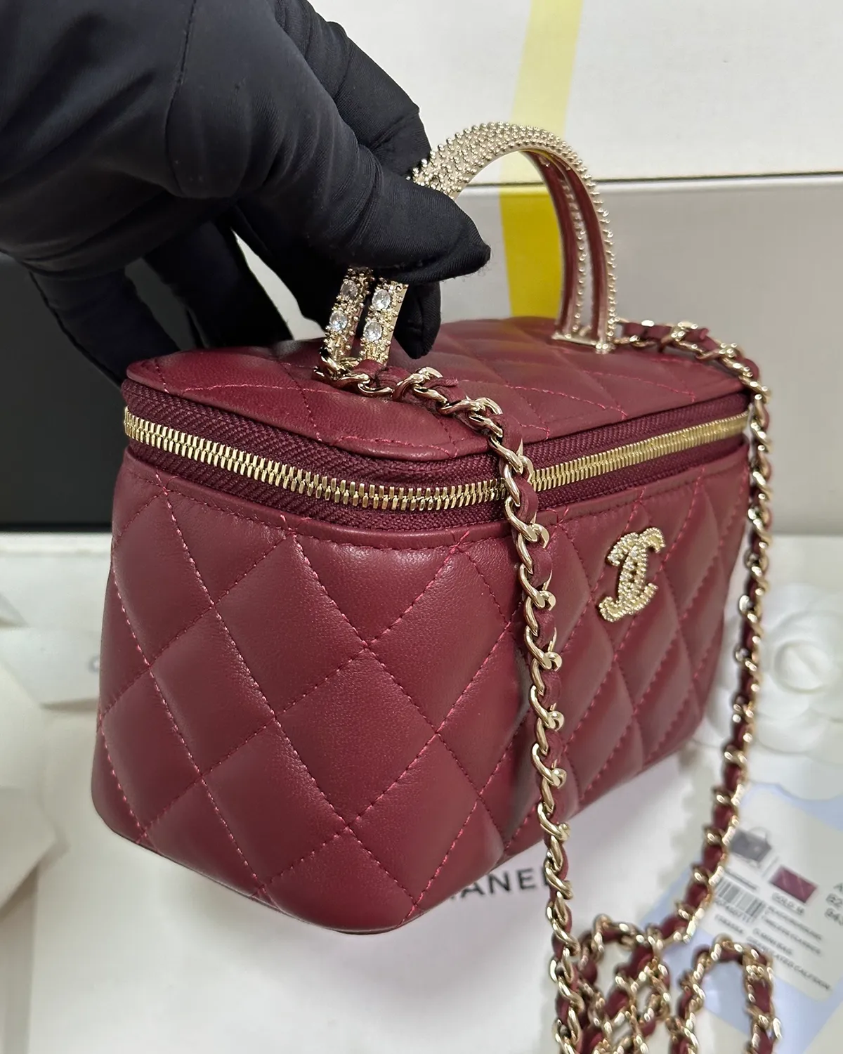 *Note: This item is a high-quality homage inspired by the Chanel Vanity Case design. It captures the boxy aesthetic and rich burgundy color at an accessible price point.