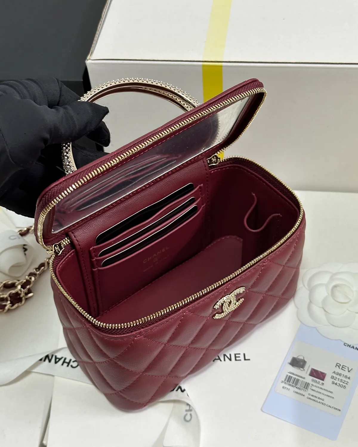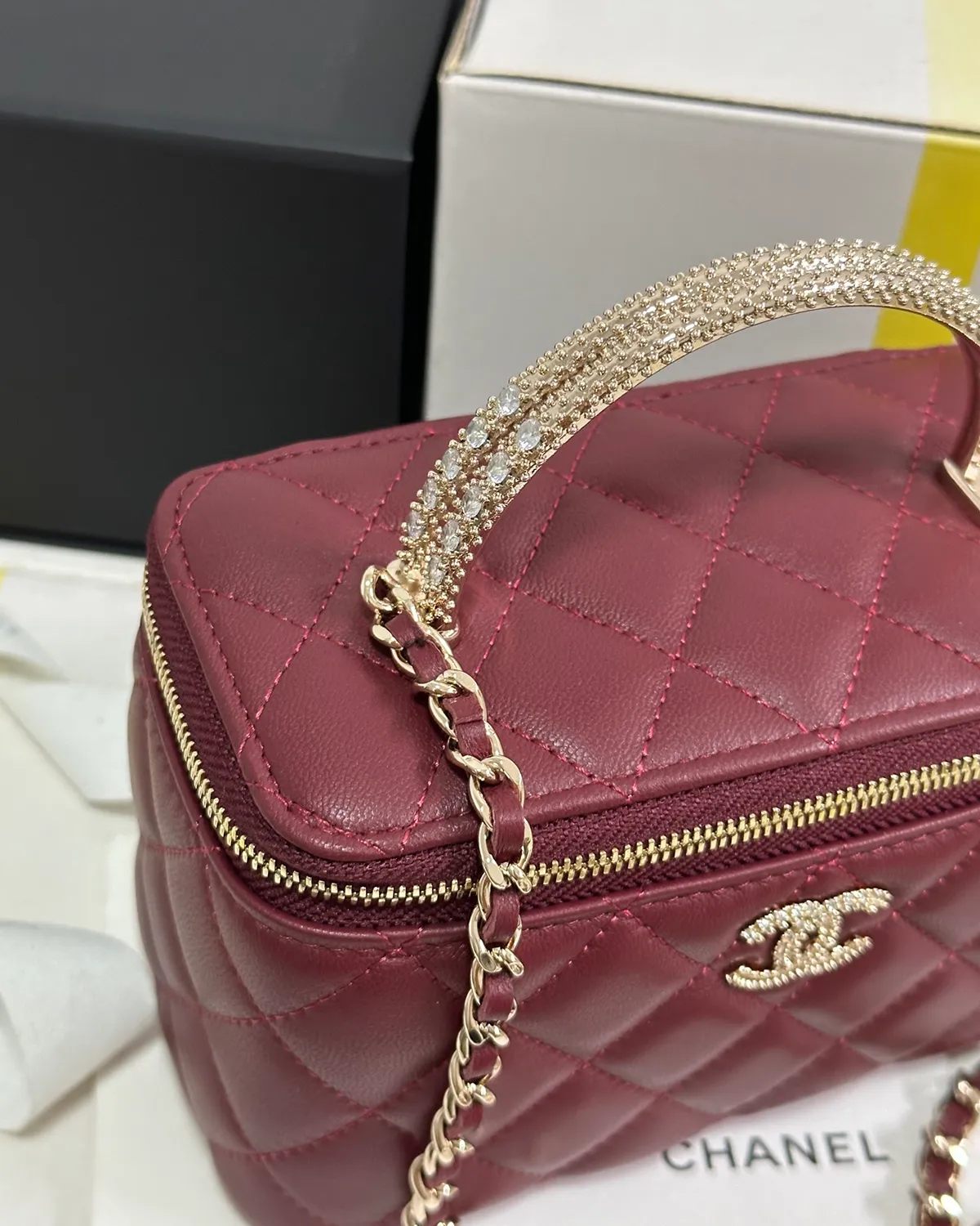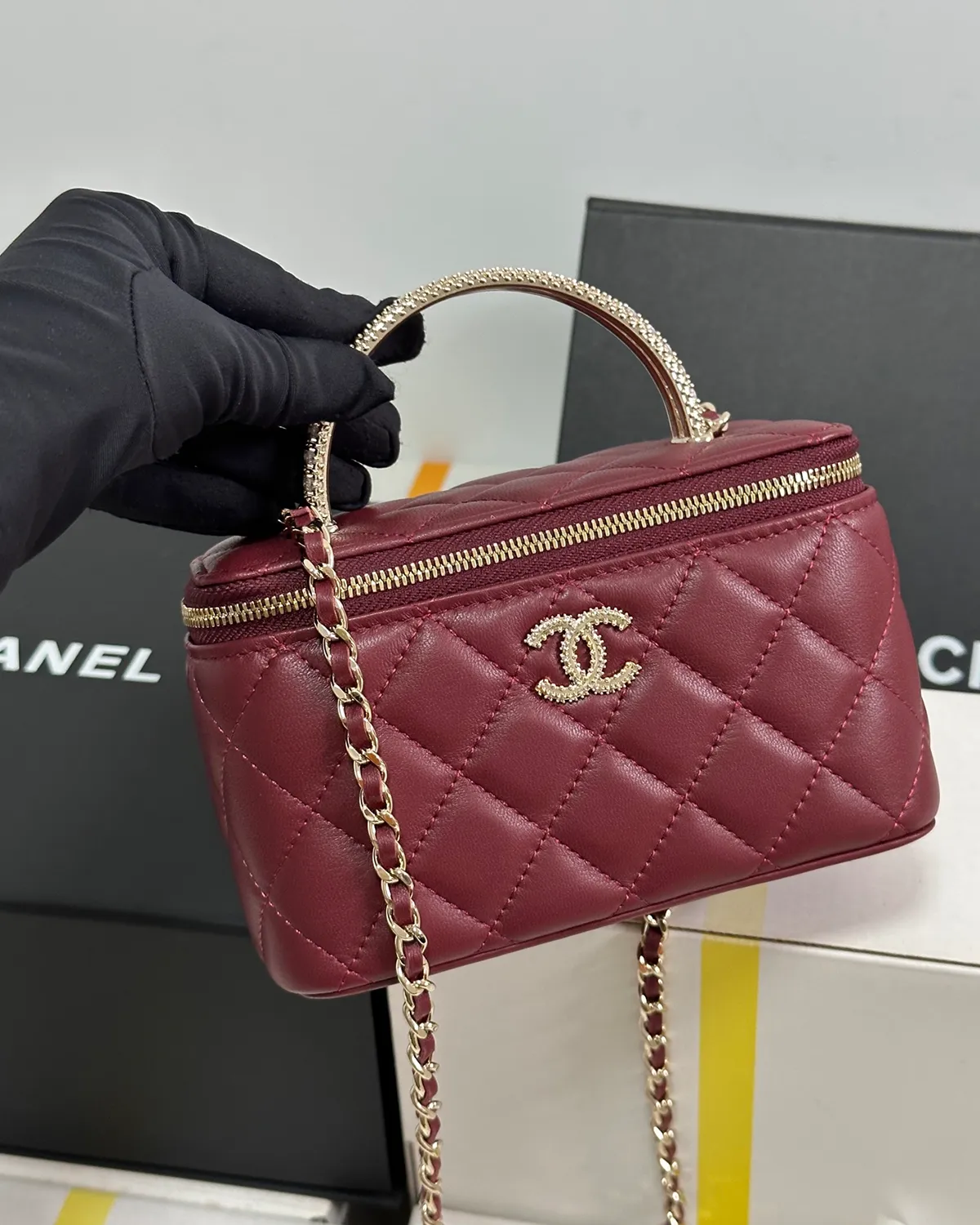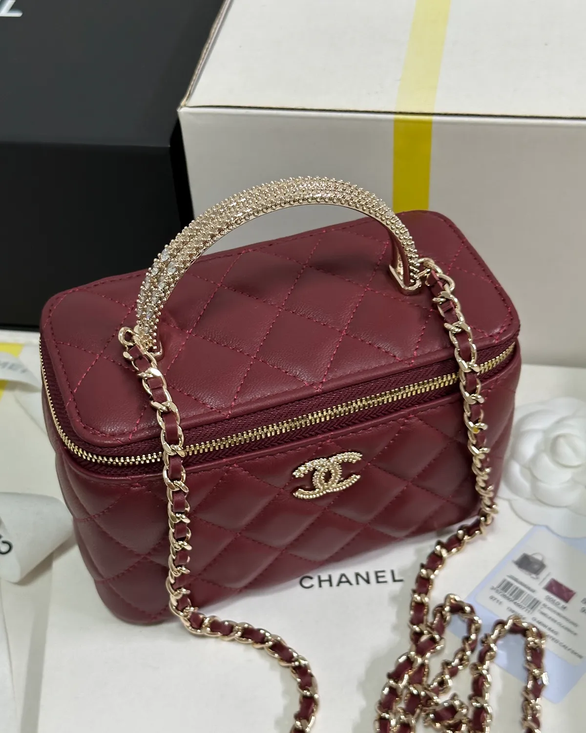 *Note: This item is a high-quality homage inspired by the Chanel Vanity Case design. It captures the boxy aesthetic and rich burgundy color at an accessible price point.