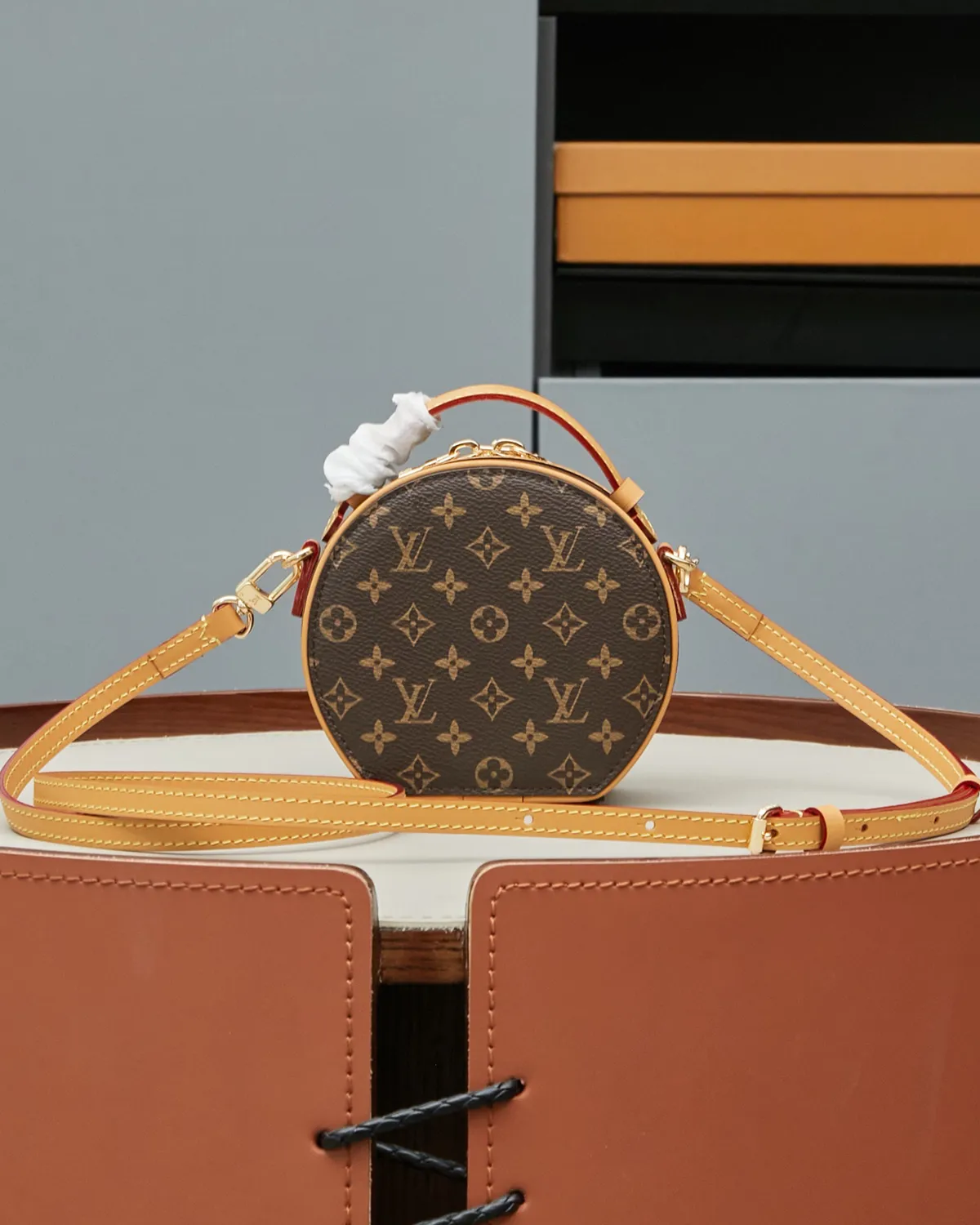 The Signature Round Hat Box Bag is a delightful piece of history shrunk down to palm size. Originally designed to protect hats during long steamship voyages, this circular silhouette has been reinvented as a charming day-to-evening accessory. Its unique shape makes it an instant conversation starter and a favorite among fashion insiders.