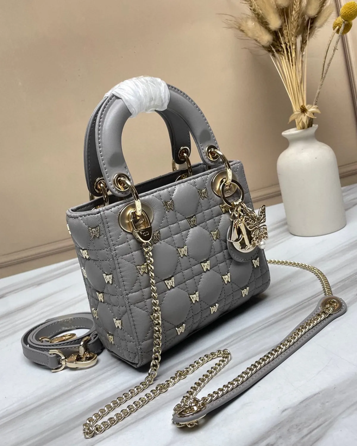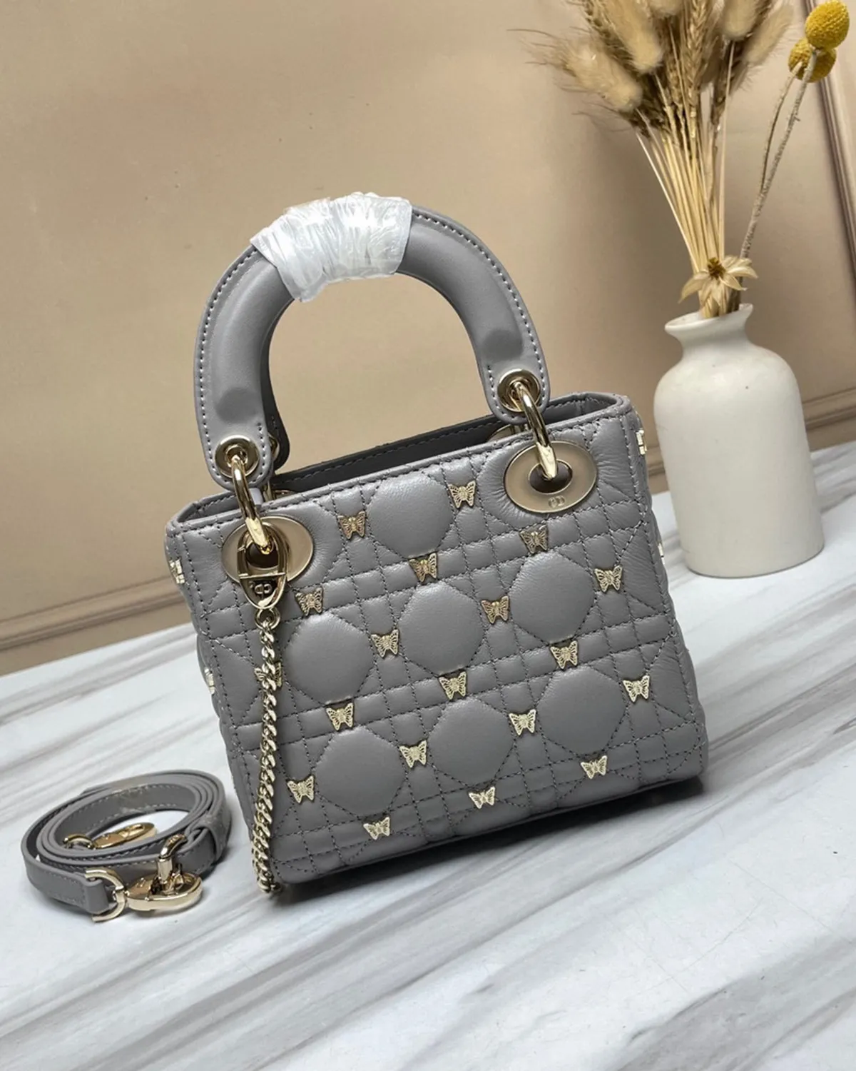 *Note: This item is a high-quality homage inspired by the Small Lady Dior My ABCDior Grey design. It captures the sophisticated neutral colorway and iconic quilting at an accessible price point.