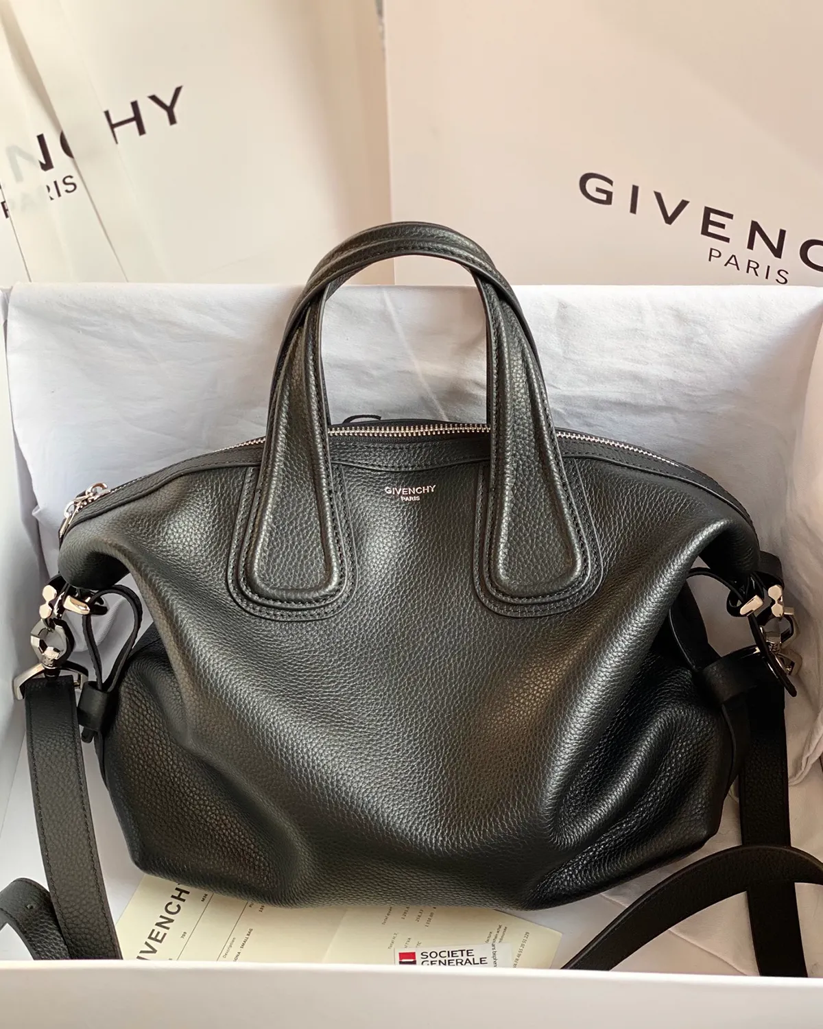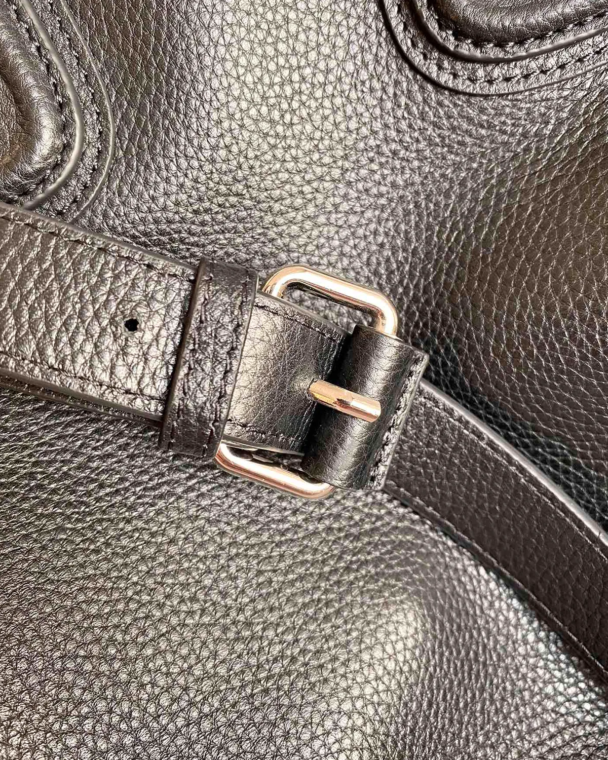 The corners of the bag are anchored by heavy metal buckles, etched with the brand’s signature. These buckles aren’t just decorative; they allow you to adjust the length of the shoulder straps, changing the bag’s drop and attitude. The mix of soft leather and hard metal creates a compelling tactile contrast.
