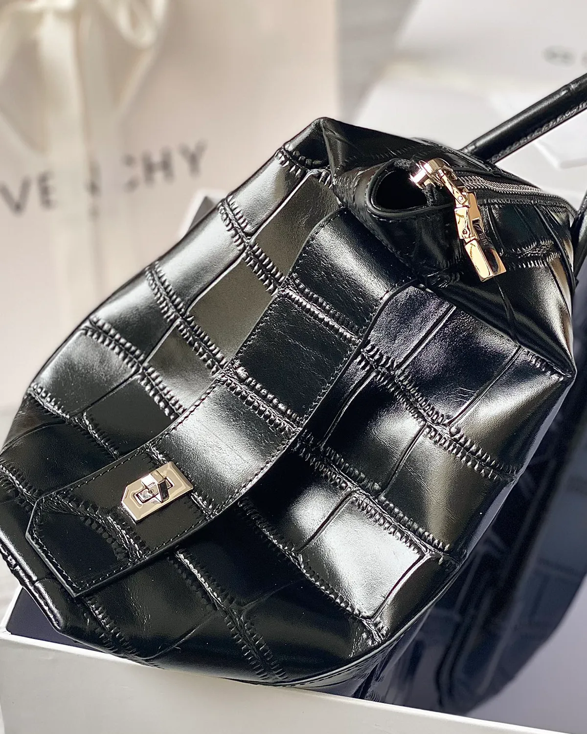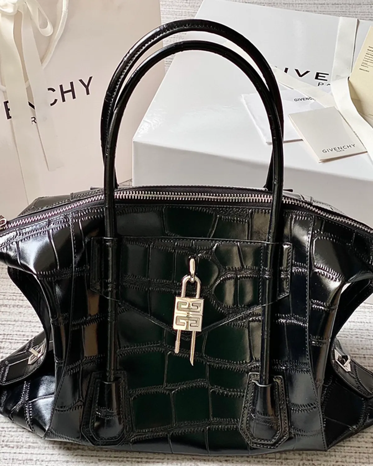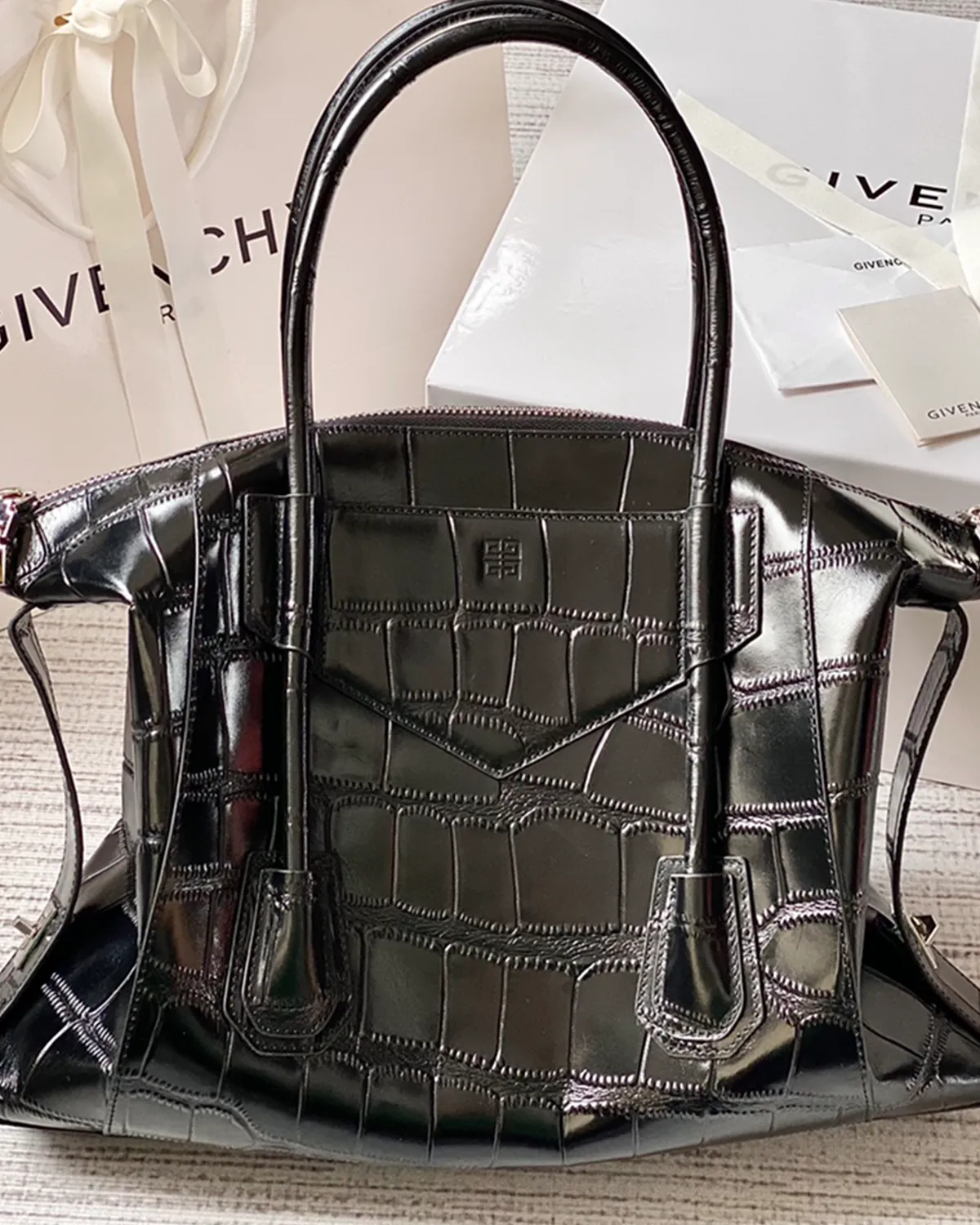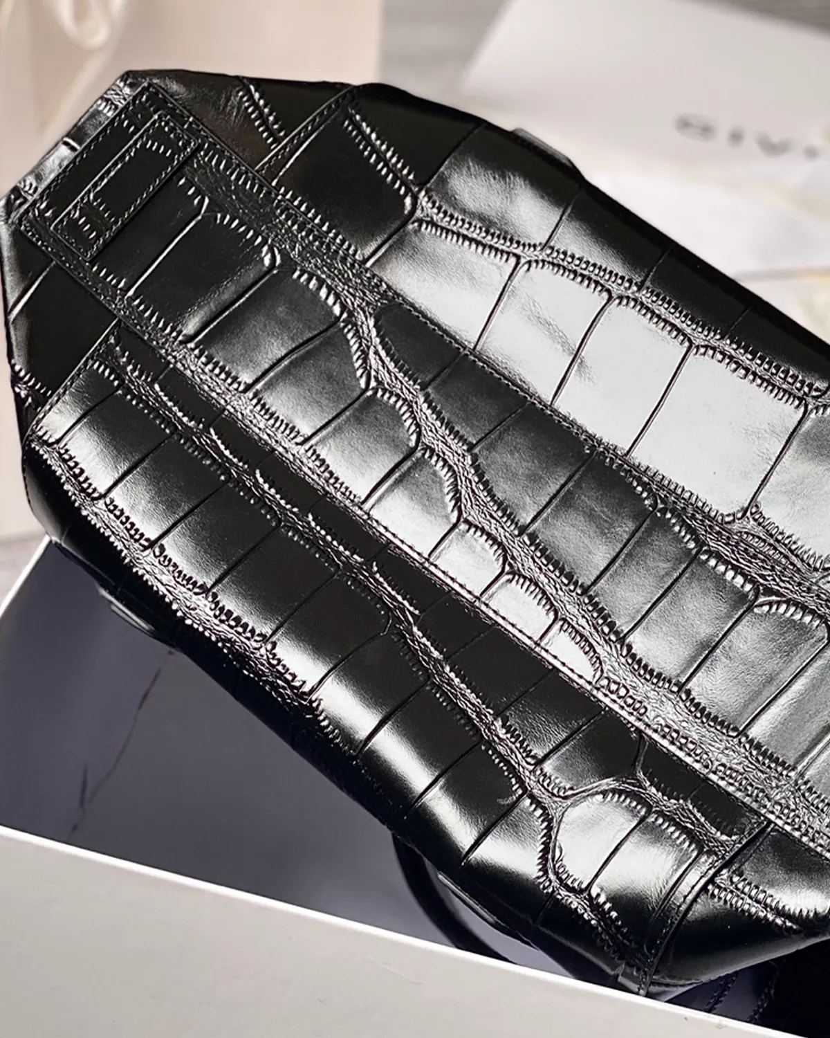 Signature Soft Lock Boston Bag – Croc-Embossed Leather | BagLadt
