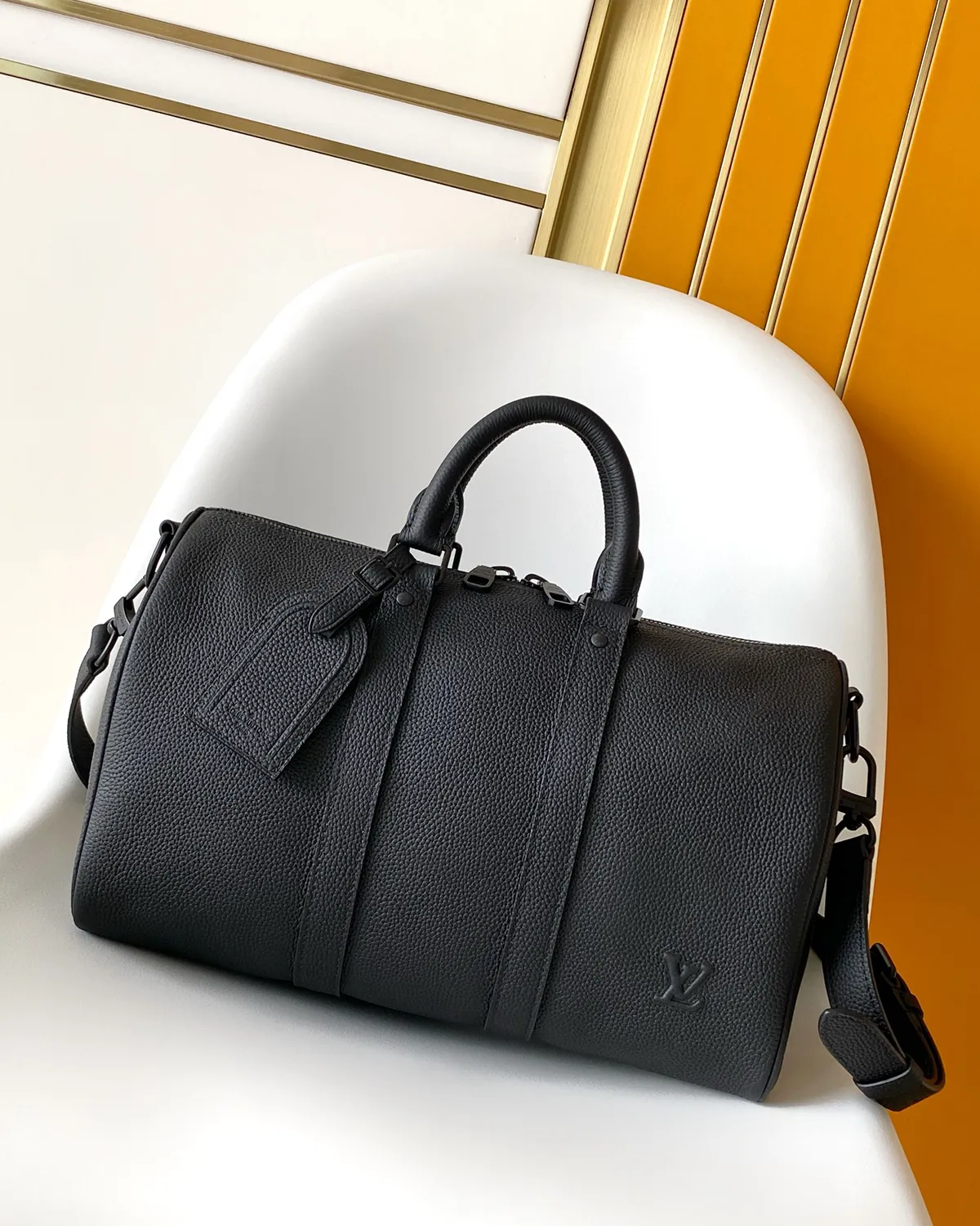 The body is crafted from high-quality grained calfskin. Unlike the canvas version, the leather offers a more understated, monochromatic look that allows the hardware to take center stage. The grain is durable and resistant to scratches, while the suppleness of the hide allows the bag to drape comfortably against the hip.
