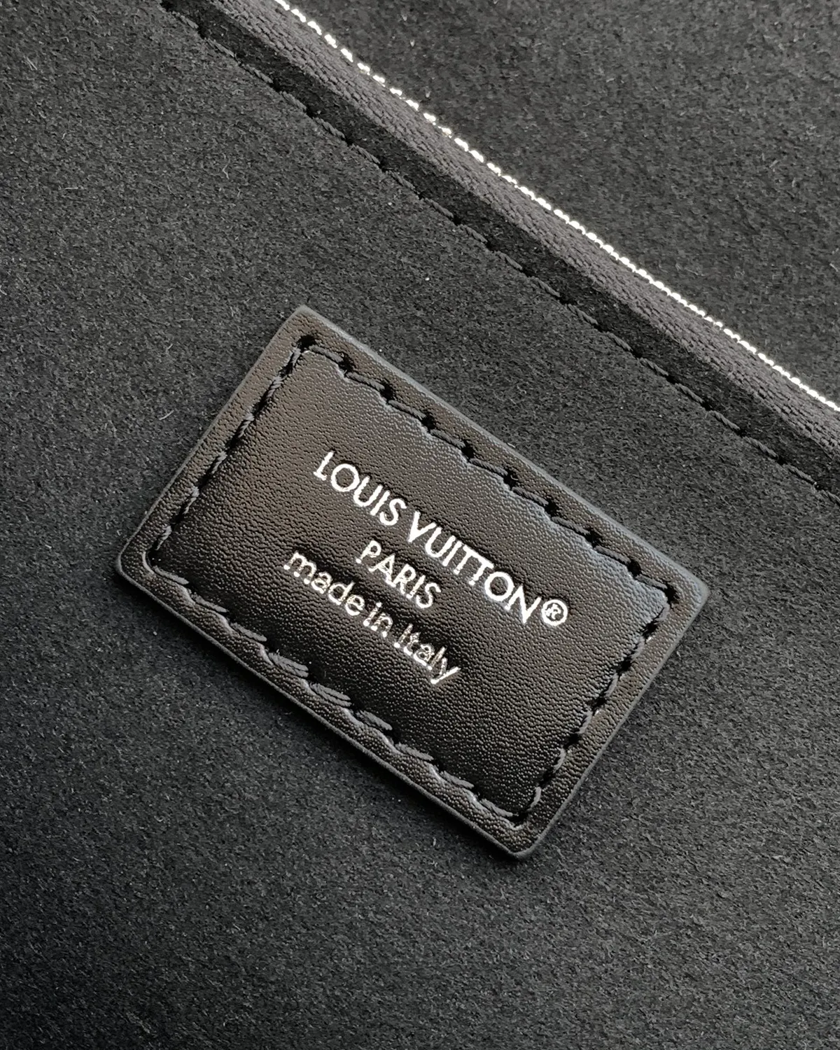 Unlike the coated canvas versions, this edition is crafted from premium calfskin leather. It is chosen for its smooth grain and ability to hold the bag’s structure while remaining soft to the touch. The leather wraps the corners and edges seamlessly, interrupted only by the hardware, giving it a stealthy, high-fashion appeal.