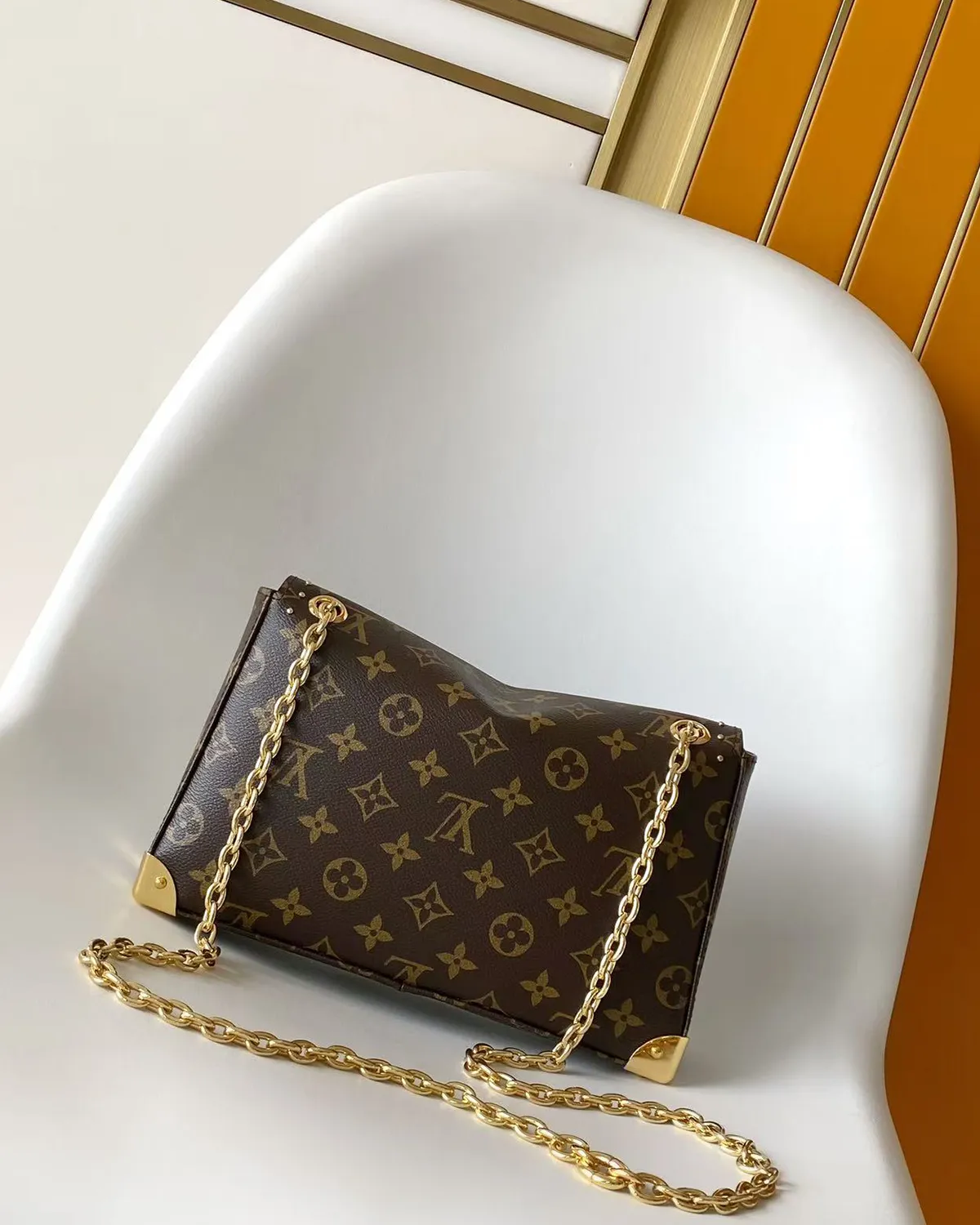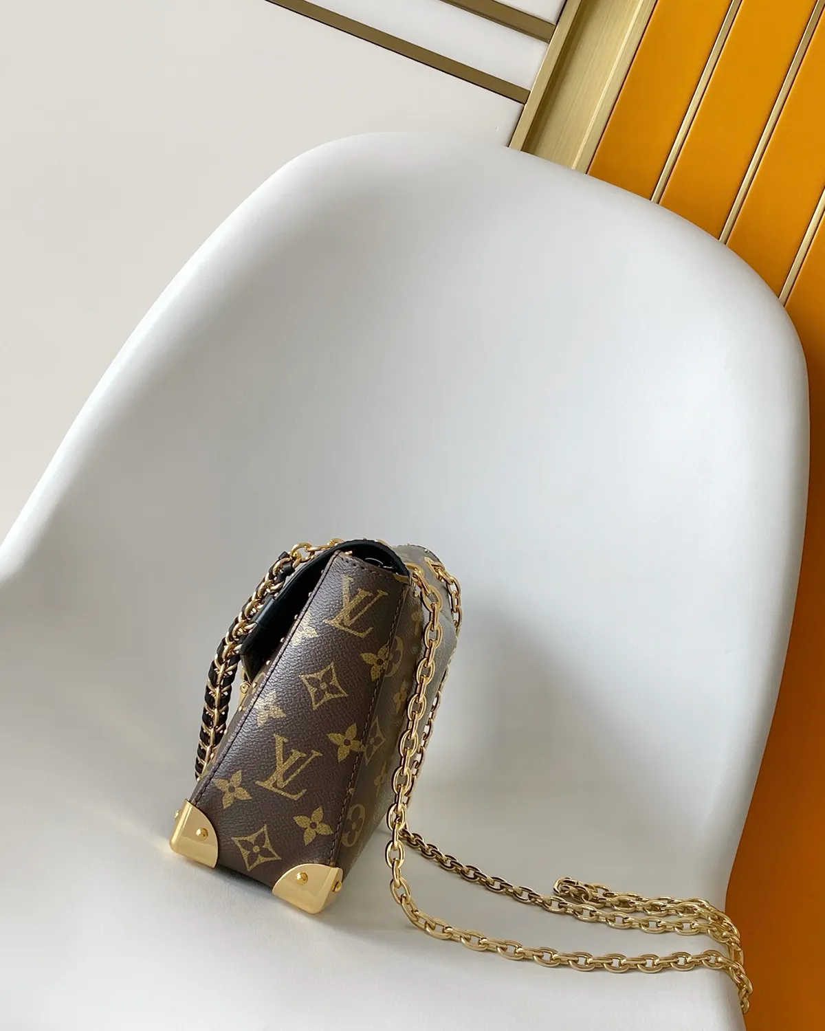 The Signature Soft Trunk Shoulder Bag is a masterclass in adapting history for the modern wardrobe. It takes the rigid, heavy aesthetics of 19th-century travel luggage—the metal corners, the slats, the locks—and translates them into a lightweight, supple bag that hugs the body. It is the perfect balance of “hard” industrial details and “soft” luxury fashion.