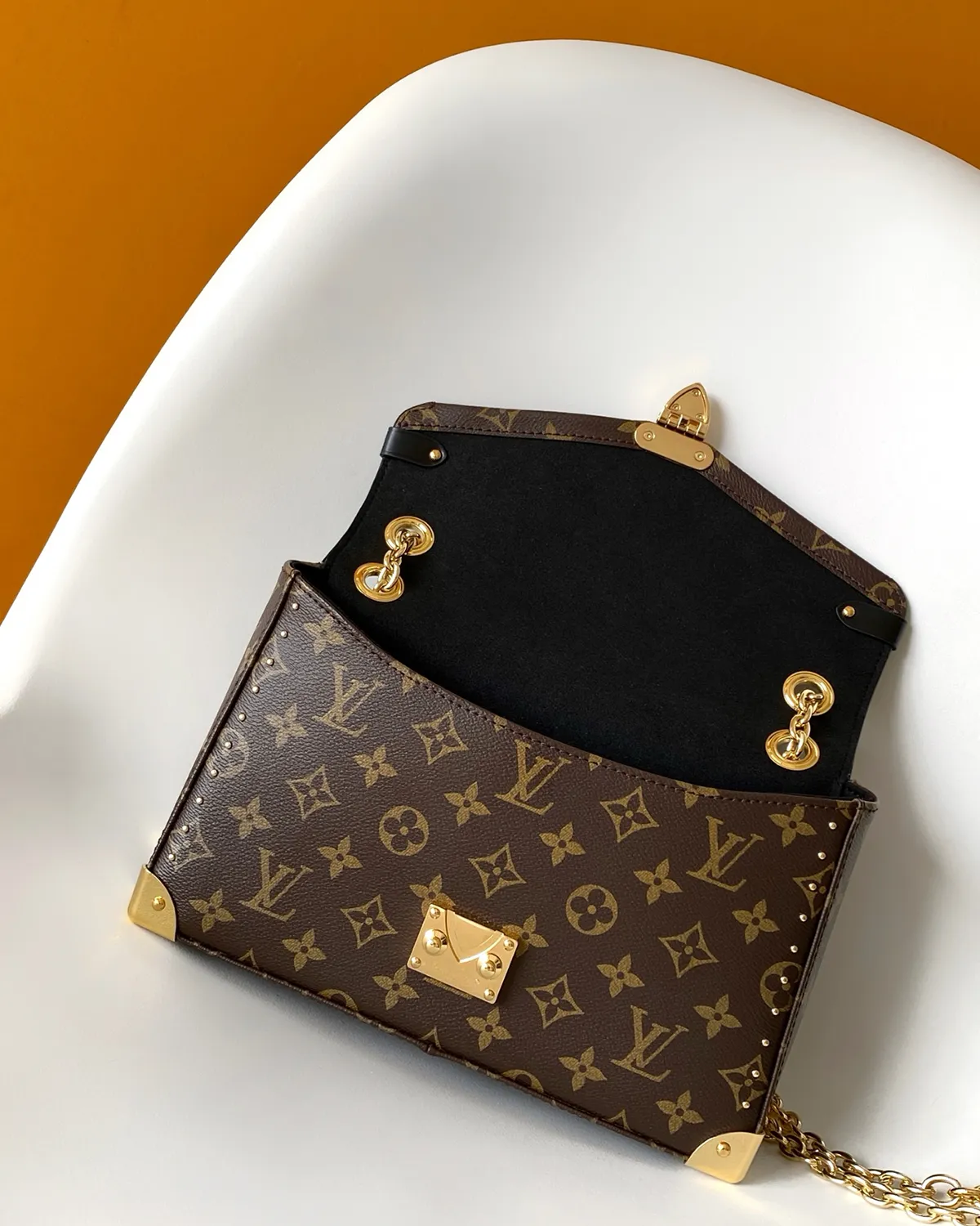 The centerpiece is the historic S-lock closure. This mechanism was patented in the 1880s to make travel trunks unpickable. Here, it serves as a stunning focal point, securing the flap with a satisfying click and adding a jewelry-like brilliance to the monogram canvas facade.