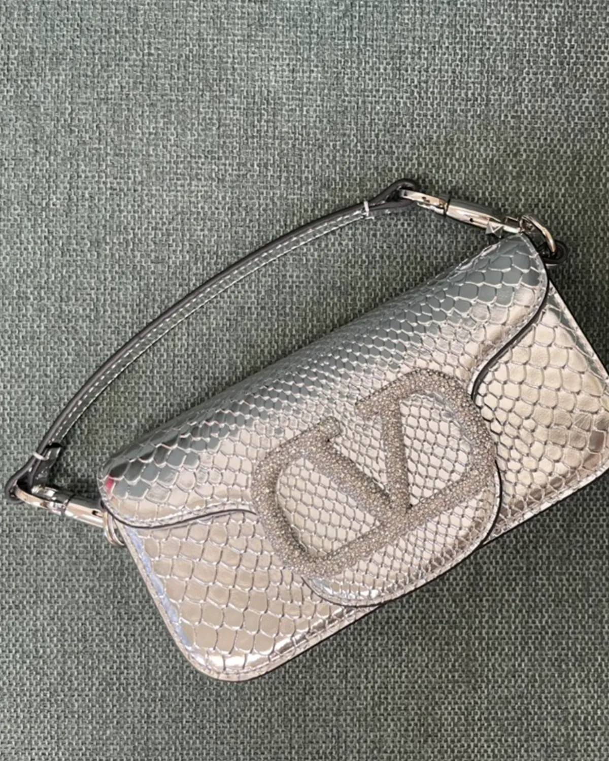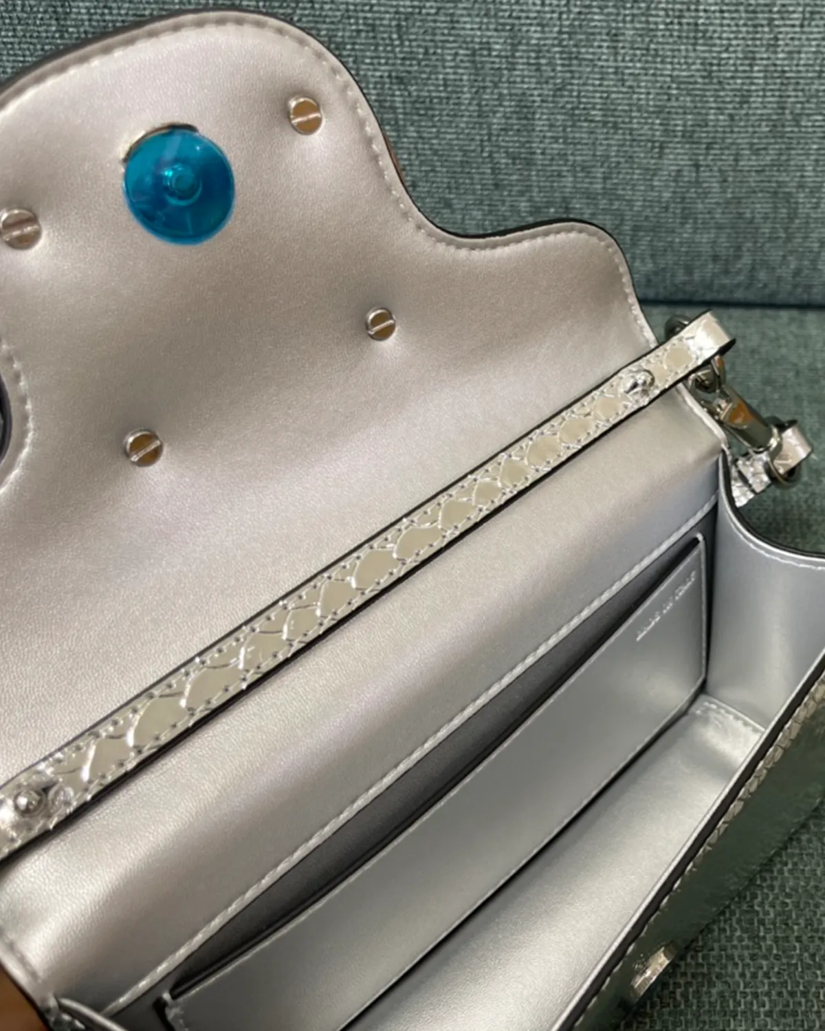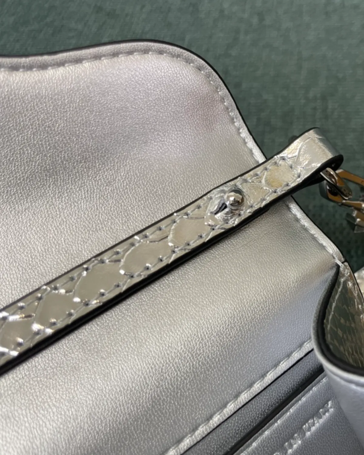 The body is crafted from premium calfskin that has been expertly stamped and treated to mimic the scales of python skin. This “Snake Effect” offers the glamorous look of exotic leather with the durability and ethical ease of calfskin. The scales provide a multi-dimensional texture that catches the light, elevating the simple box shape into a statement piece.