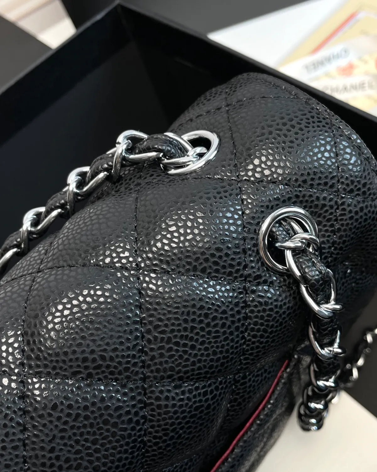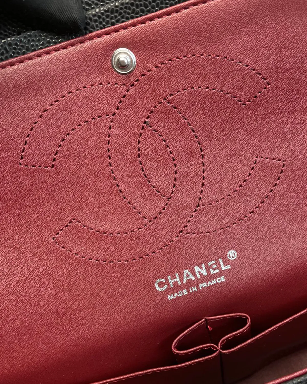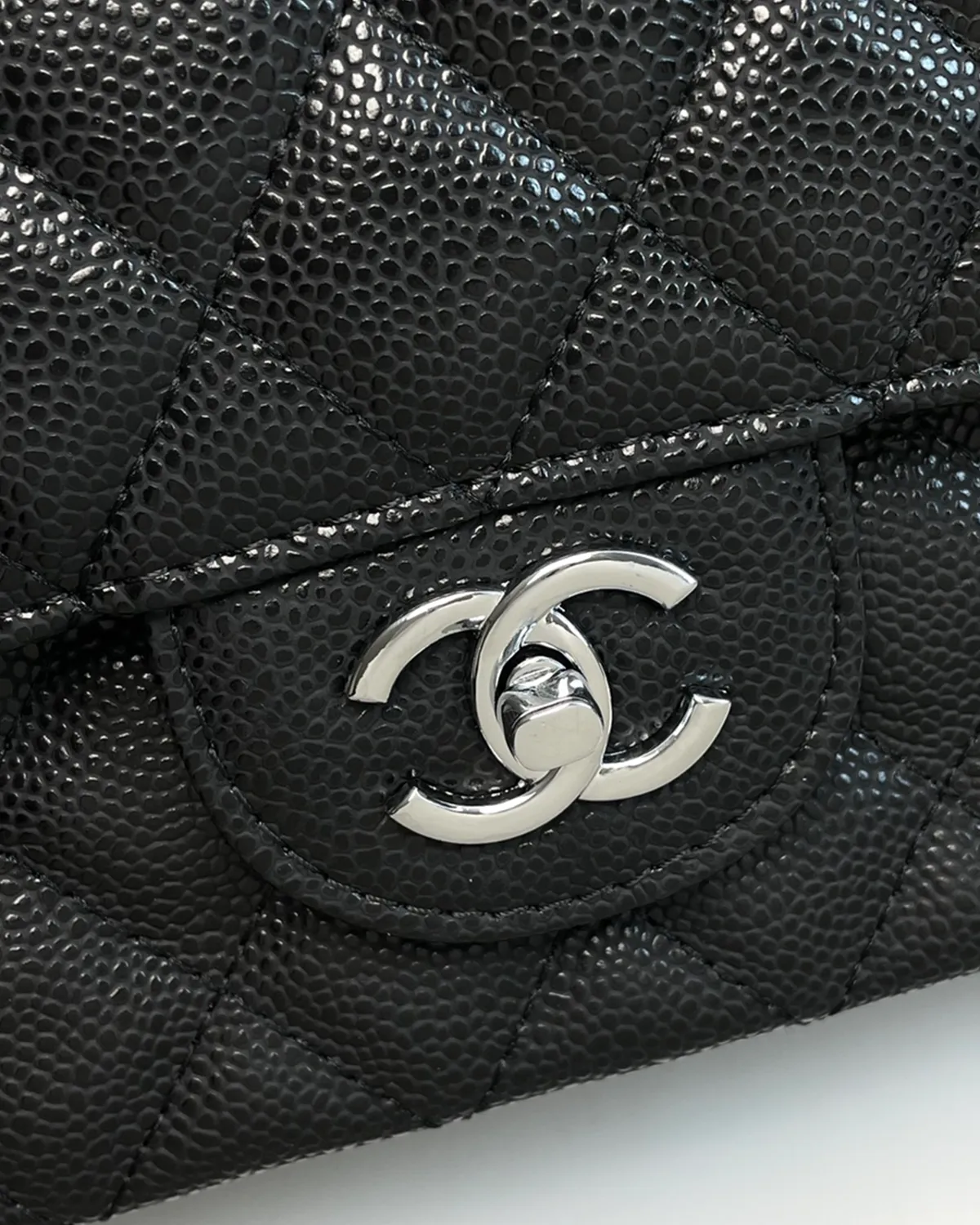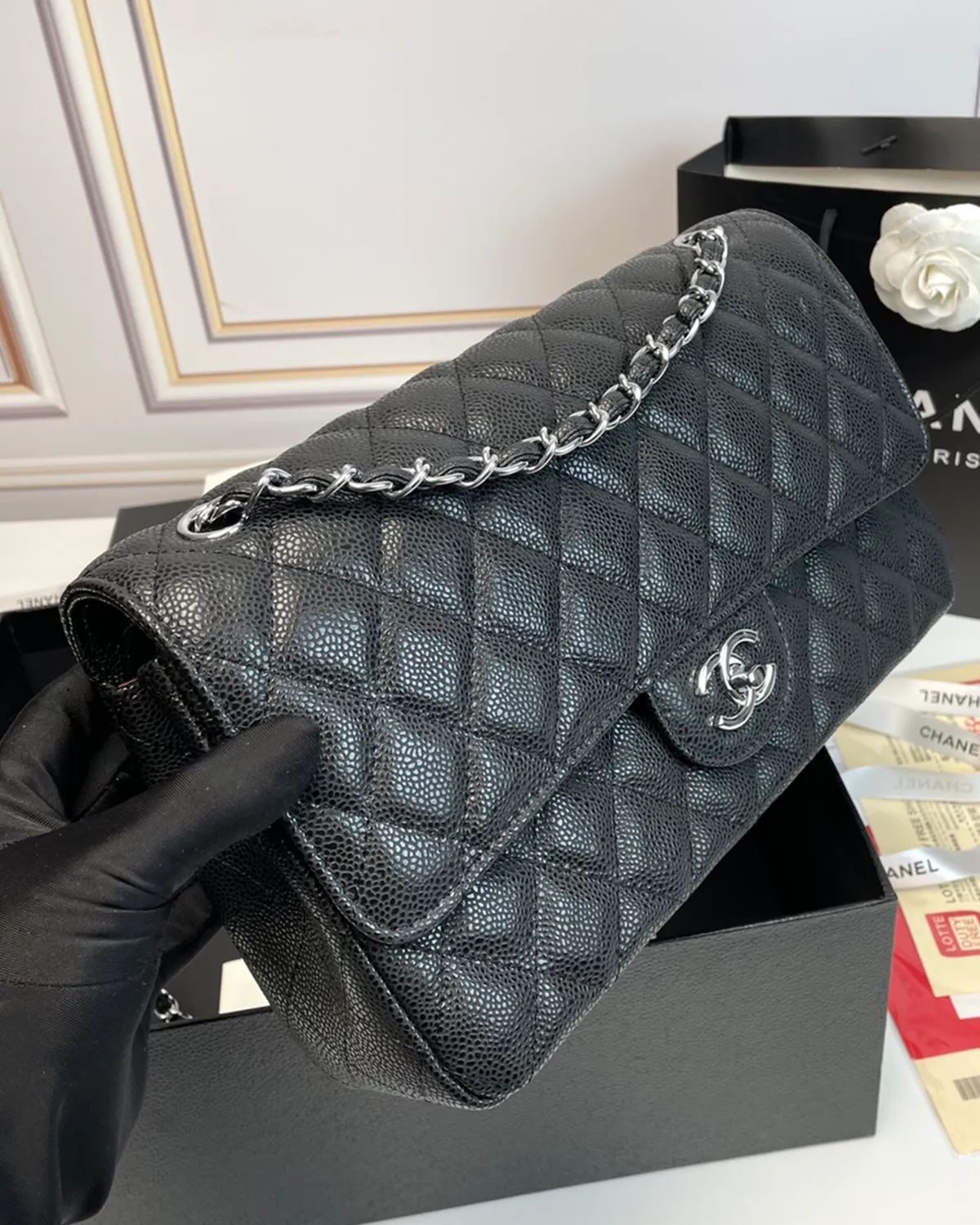 To match the larger proportions, the bag features an upsized version of the legendary interlocking metal turn-lock. Whether in gold or silver tone, this clasp serves as the bag’s jewelry, securing the double flap with a satisfying mechanical click. It is the hallmark of the “Classic” lineage, instantly recognizable across any room.