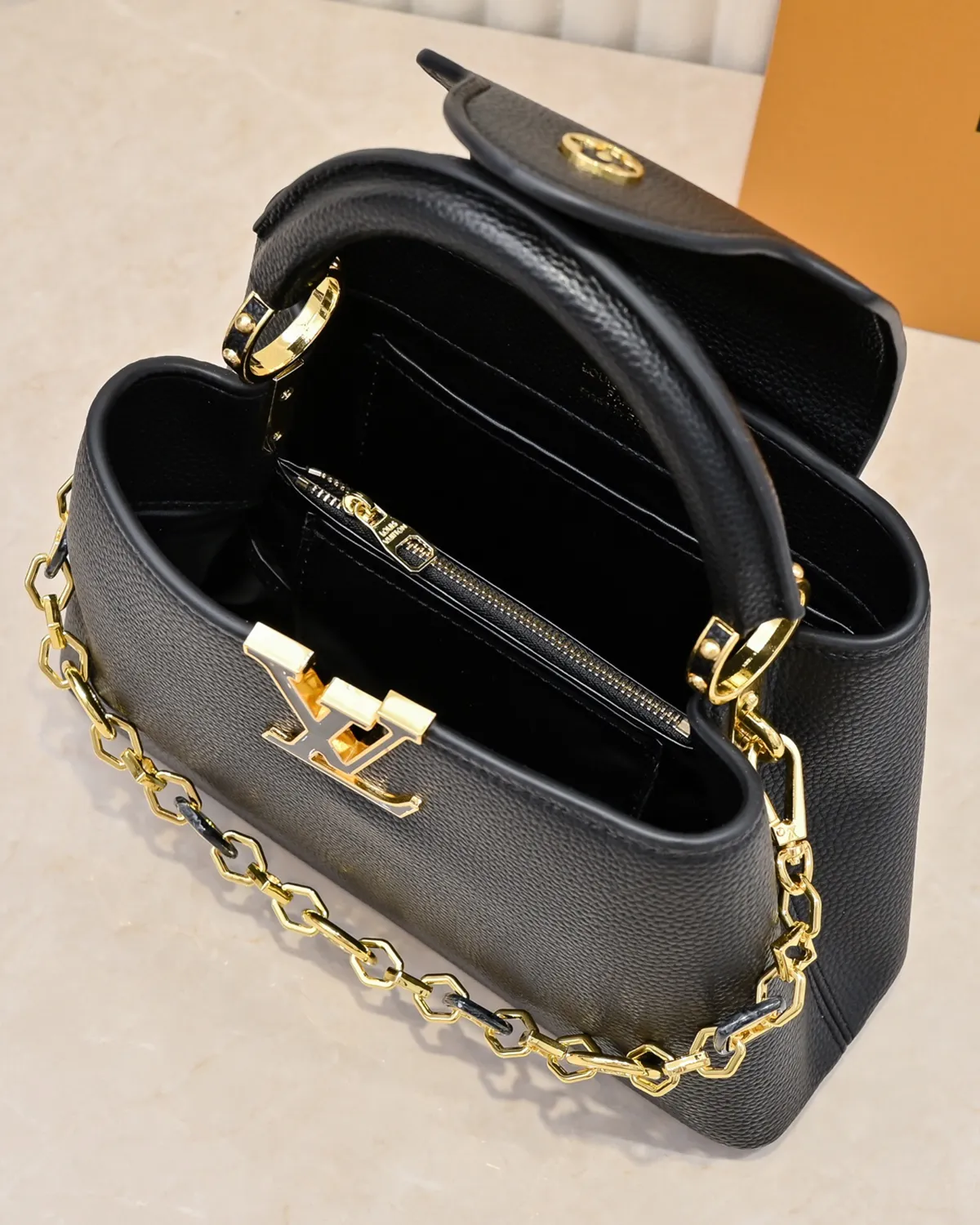 *Note: This item is a high-quality homage inspired by the Capucines BB design (Model M26814). It captures the premium Taurillon leather texture and jewelry chain details at an accessible price point.