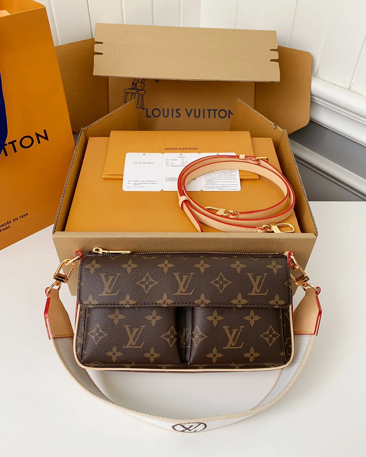 The Signature Top Handle Mini Bag (Miss Montaigne style) distills the essence of the historic 30 Avenue Montaigne address into a compact, carry-everywhere silhouette. It bridges the gap between a structured handbag and a casual crossbody, featuring the house’s most recognizable canvas pattern elevated by refined leather architecture.